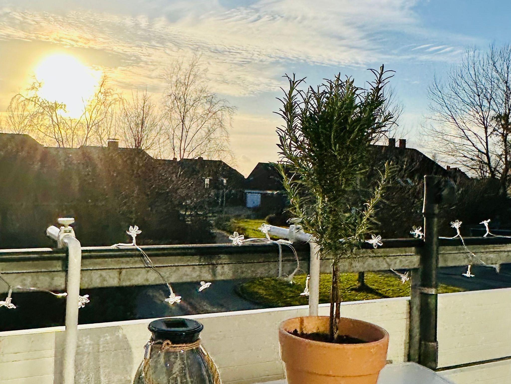 Der sonnige Balkon lädt den ganzen Tag zum entspannen ein.