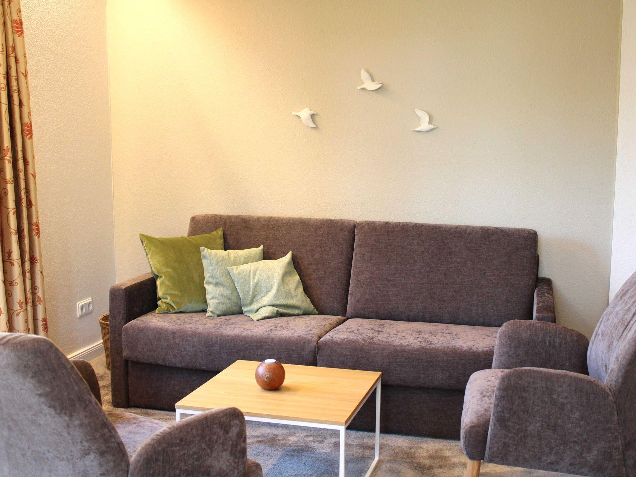 Appartement 7 verfügt über eine große Küche, ein geräumiges Wohnzimmer (mit der Möglichkeit zur Aufbettung), ein Schlafzimmer mit Doppelbett und ein separates Einzelzimmer, ein helles Badezimmer mit Badewanne, sowie ein Gäste-WC.