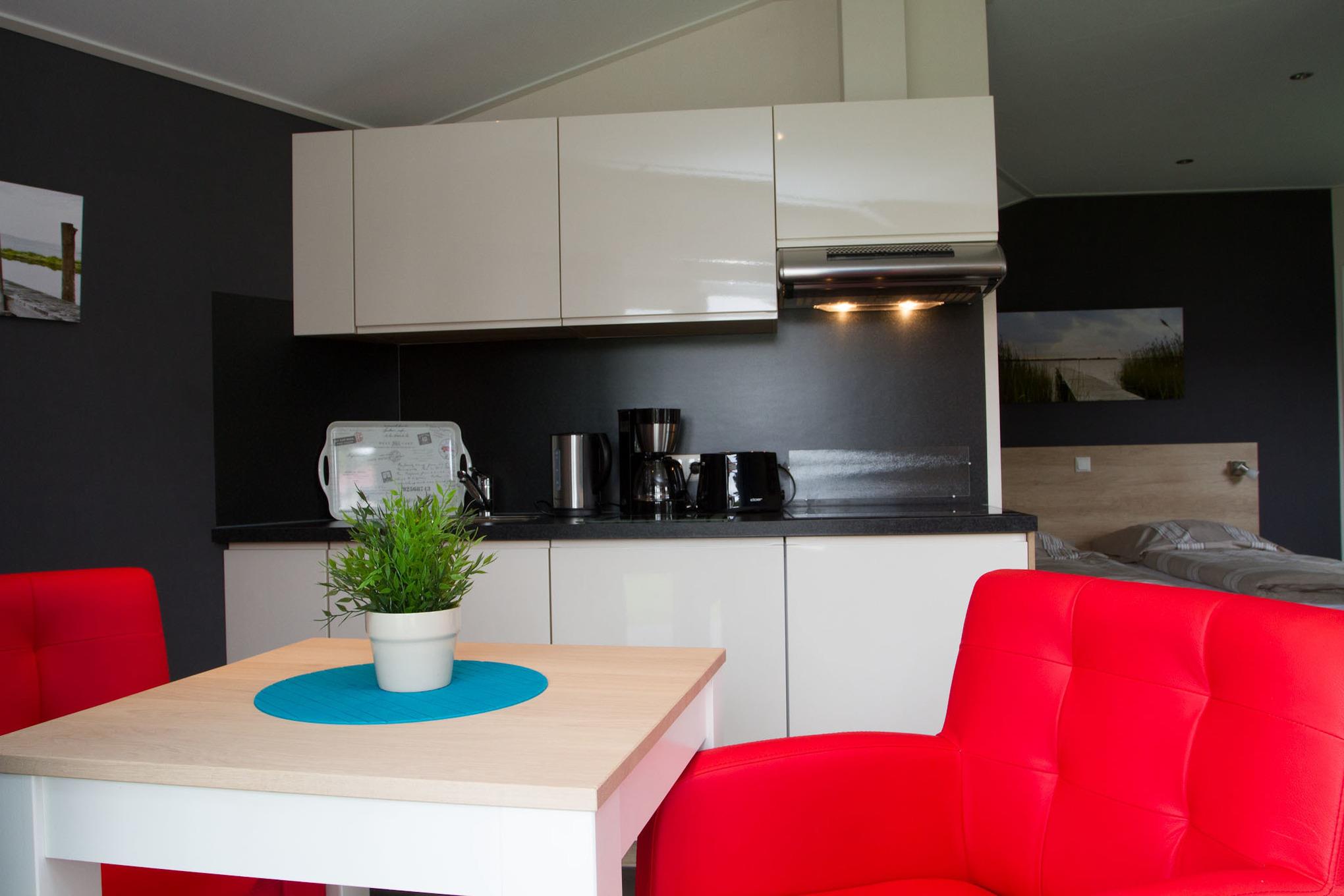 Sie sind rd. 37m² groß und bieten Platz für bis zu zwei Personen. Durch die große Terrassen-Schiebetür gelangen Sie in den Wohnraum mit Küche, Sitzgelegenheiten und Unterhaltungsmedien. In der Mitte ist ein Schlafzimmer mit Doppelbett und Unterhaltungsmedien. Hinter dem Schlafzimmer finden Sie ein großes Badezimmer inkl. Dusche, Badewanne mit Whirlpool-Funktion und Infrarot-Sauna. Im Außenbereich gibt es einen Stellplatz für Ihr Auto und die Terrasse lädt zum gemütlichen Verweilen ein.