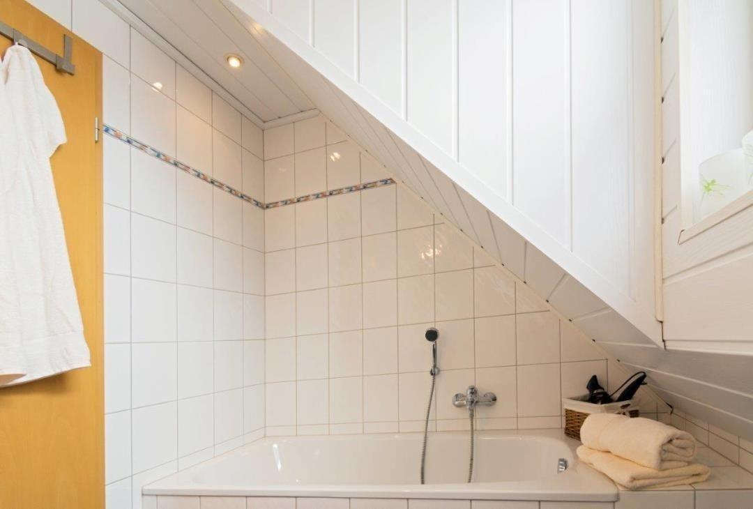 Gleich zwei Badezimmer sorgen für eine ansprechende Entzerrung am Morgen und Abend. Während das Bad im Untergeschoss mit einer Dusche ausgestattet wurde, verfügt das Badezimmer im Obergeschoss über eine Badewanne und Fußbodenheizung. Hänge-WCs, Waschkombinationen, Spiegel und ein vorhandener Föhn runden die Bäder stimmig ab.