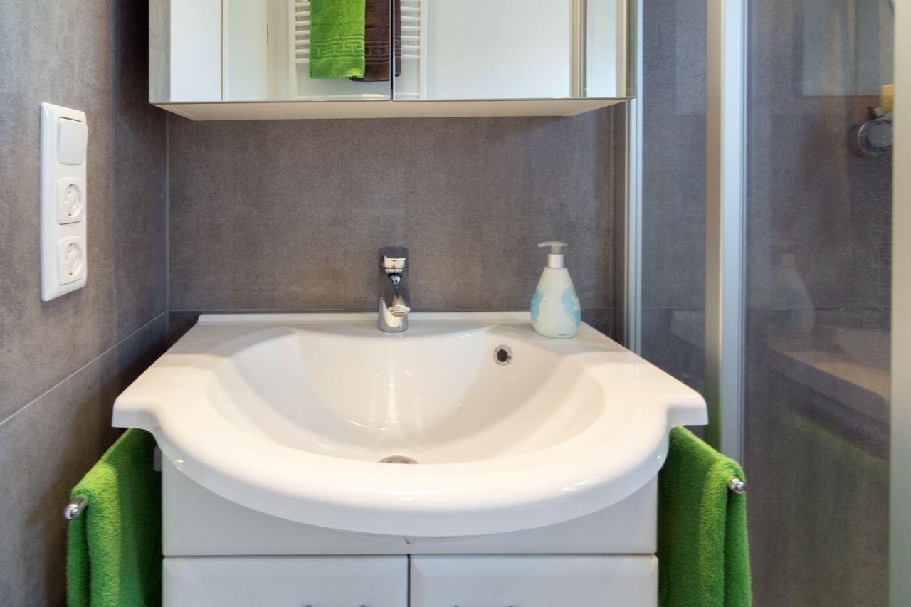 Da es sich um ein Bad mit Tageslichtfenster handelt, ist für eine gute Luftzirkulation und reichlich Lichteinfall ebenfalls gesorgt.