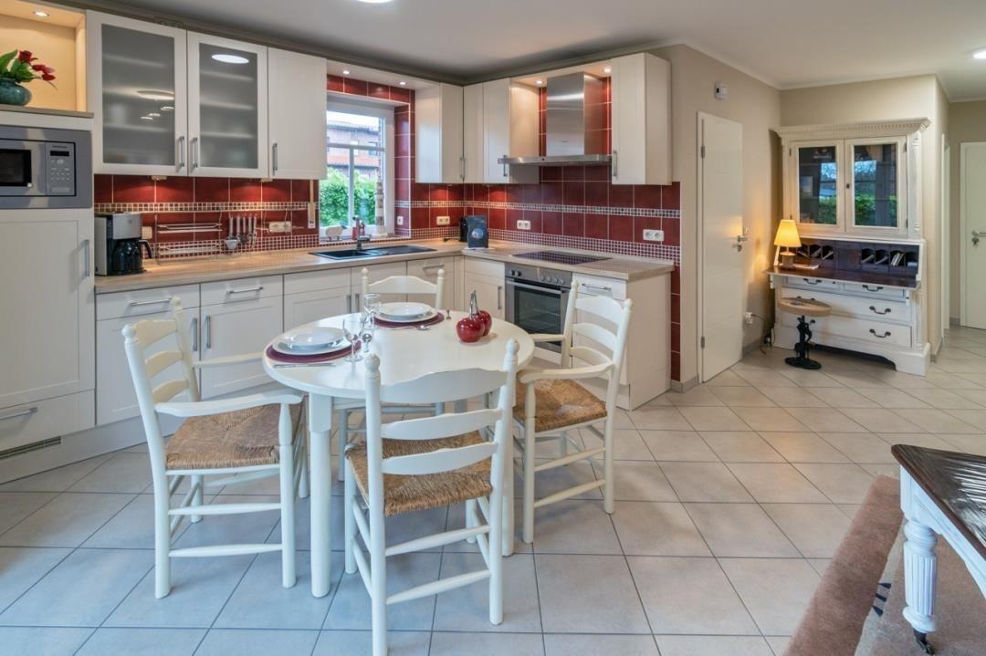 Die cremefarbene Einbauküche besticht durch ihre Großzügigkeit und Ausstattung. Neben den Elektrogeräten wie integrierte Mikrowelle, Kühlschrank mit Eisfach, Herd mit Cerankochfeld, Backofen, Edelstahlabzugshaube, Kaffeemaschine, Senseo, Wasserkocher, Toaster... läßt auch das umfangreiche Zubehör wie Geschirr, Töpfe und Besteck keine Wünsche offen. Eine wunderschöne Wohn-Küche.