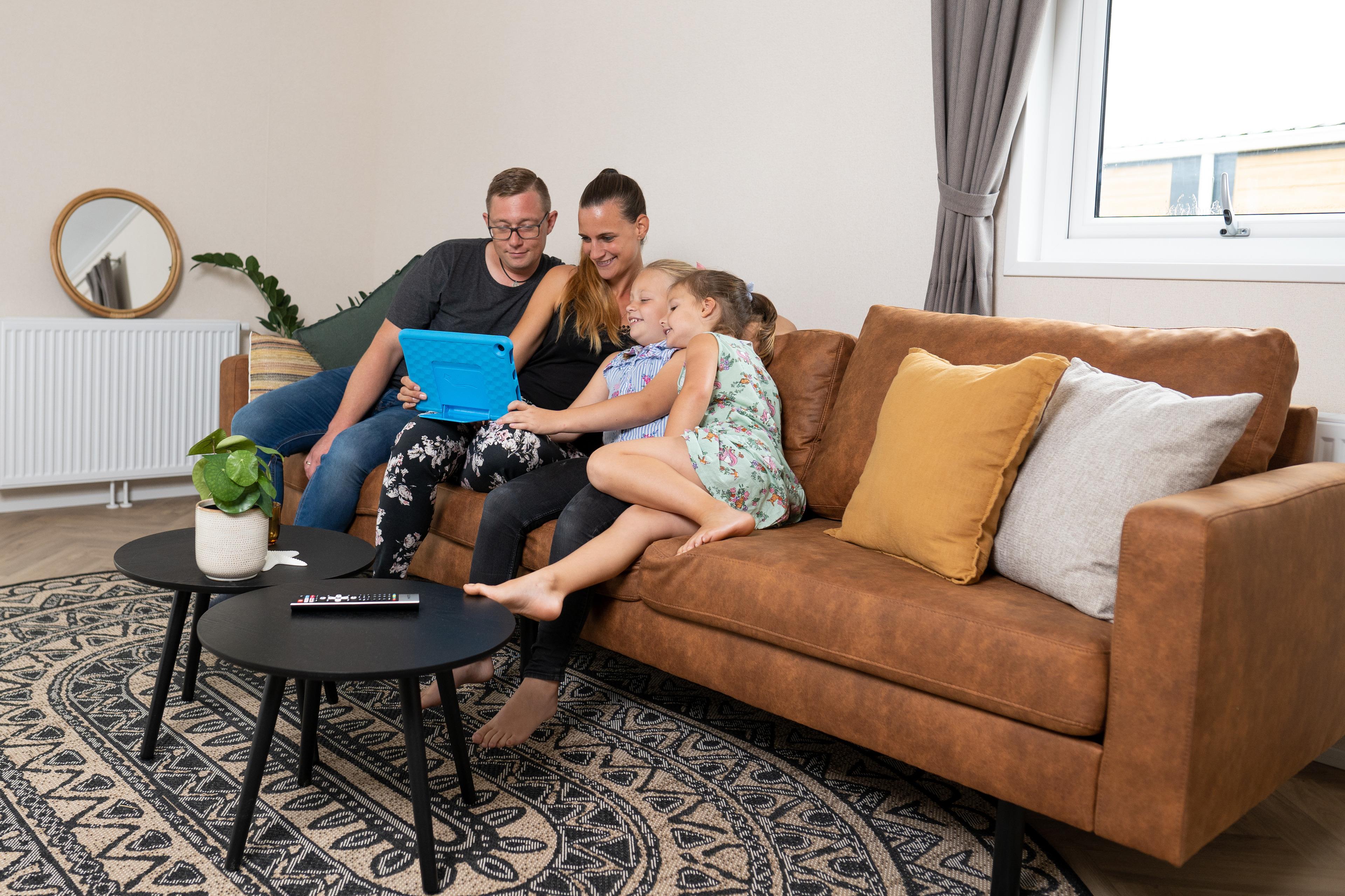 Ferienhaus mit rd. 52m² und Platz für bis zu sechs Personen. Drei Schlafzimmer (eins mit Doppelbett, eins mit zwei Einzelbetten und eins mit Etagenbett), ein Badezimmer, großer Wohnraum mit Küche, Sitzgelegenheiten und Unterhaltungsmedien (TV). Im Außenbereich gibt es einen Stellplatz für Ihr Auto und die Terrasse lädt zum gemütlichen Verweilen ein. Die Chalets befinden sich in einem eigenen Parkareal unseres Platzes mit eigener Zufahrt.