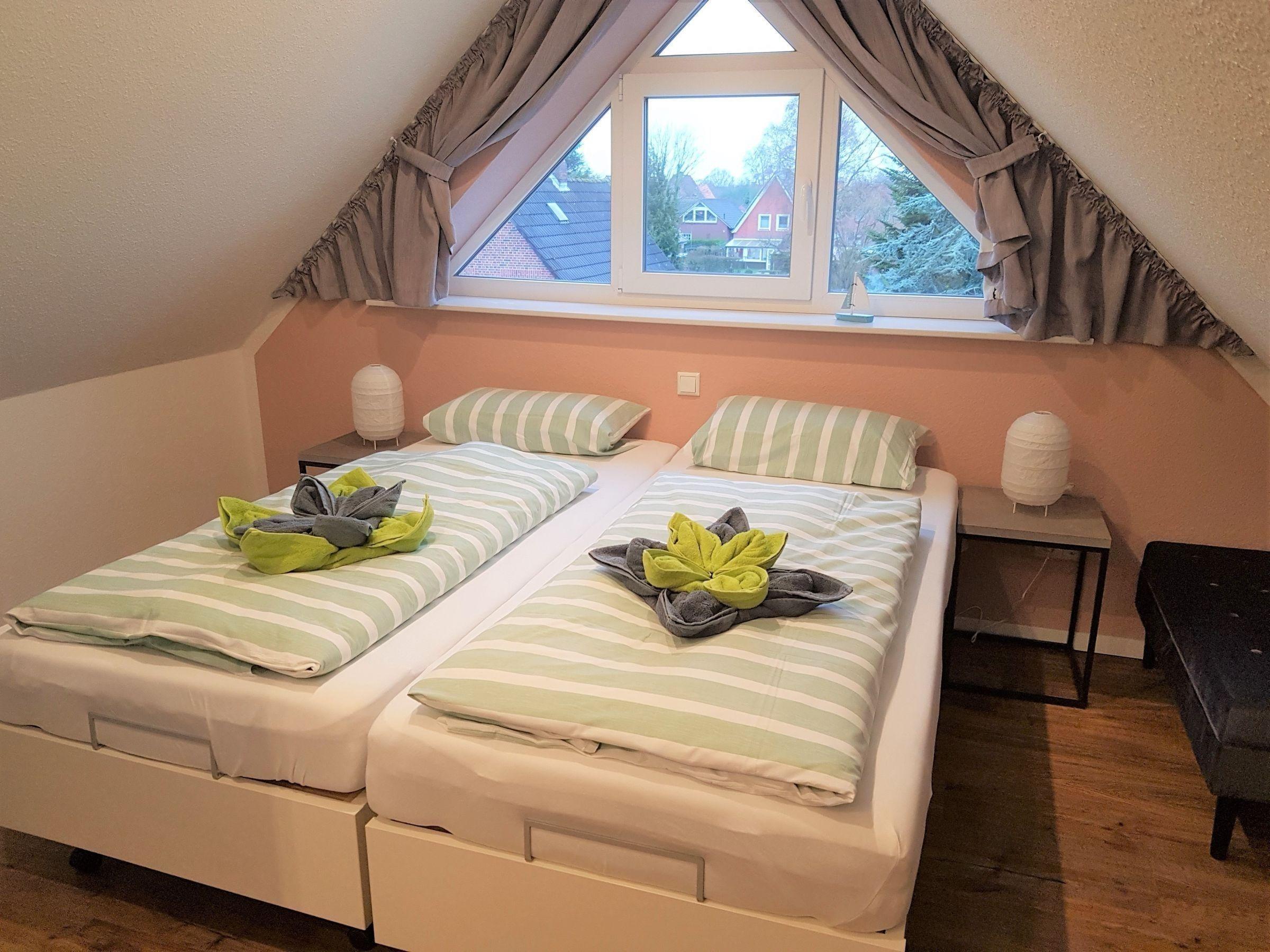 Das zweite Schlafzimmer befindet sich im 2. OG und kann Kindern und Jugendlichen als "eigenes Reich" dienen. Die Betten können hier bei Bedarf getrennt werden - ein zusätzliches, separates WC ist ebenfalls