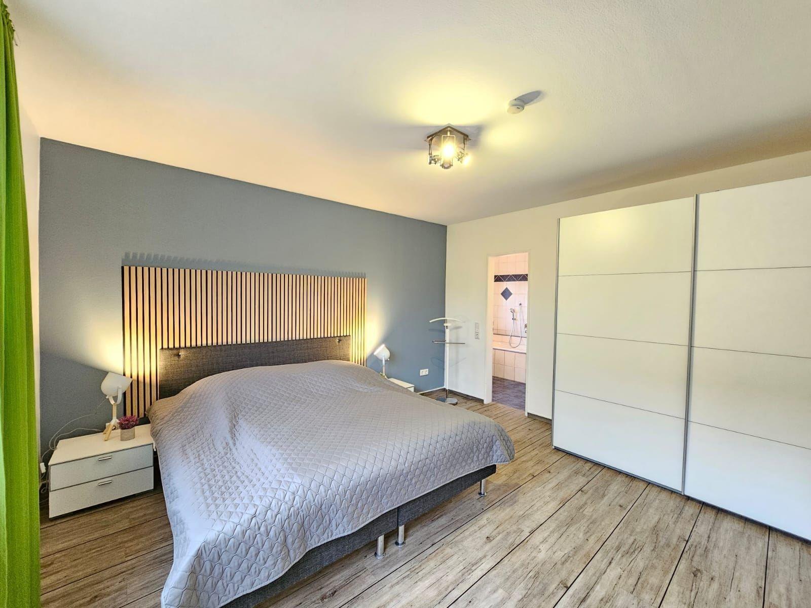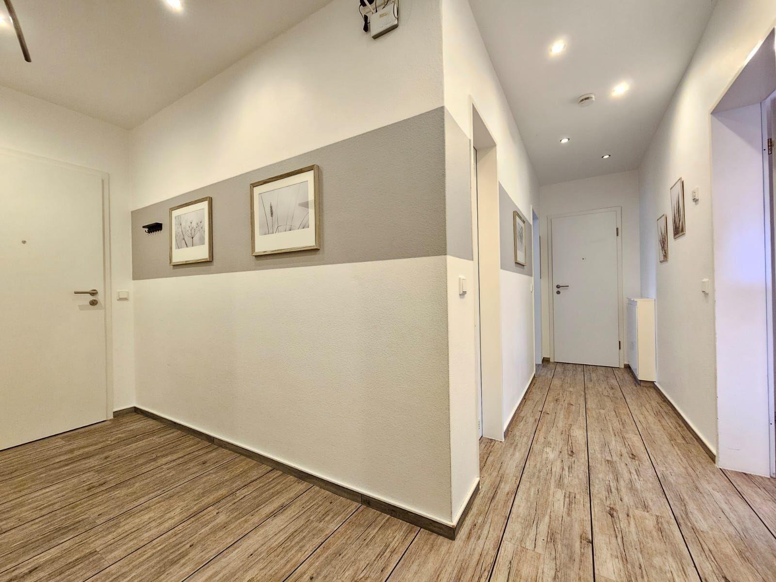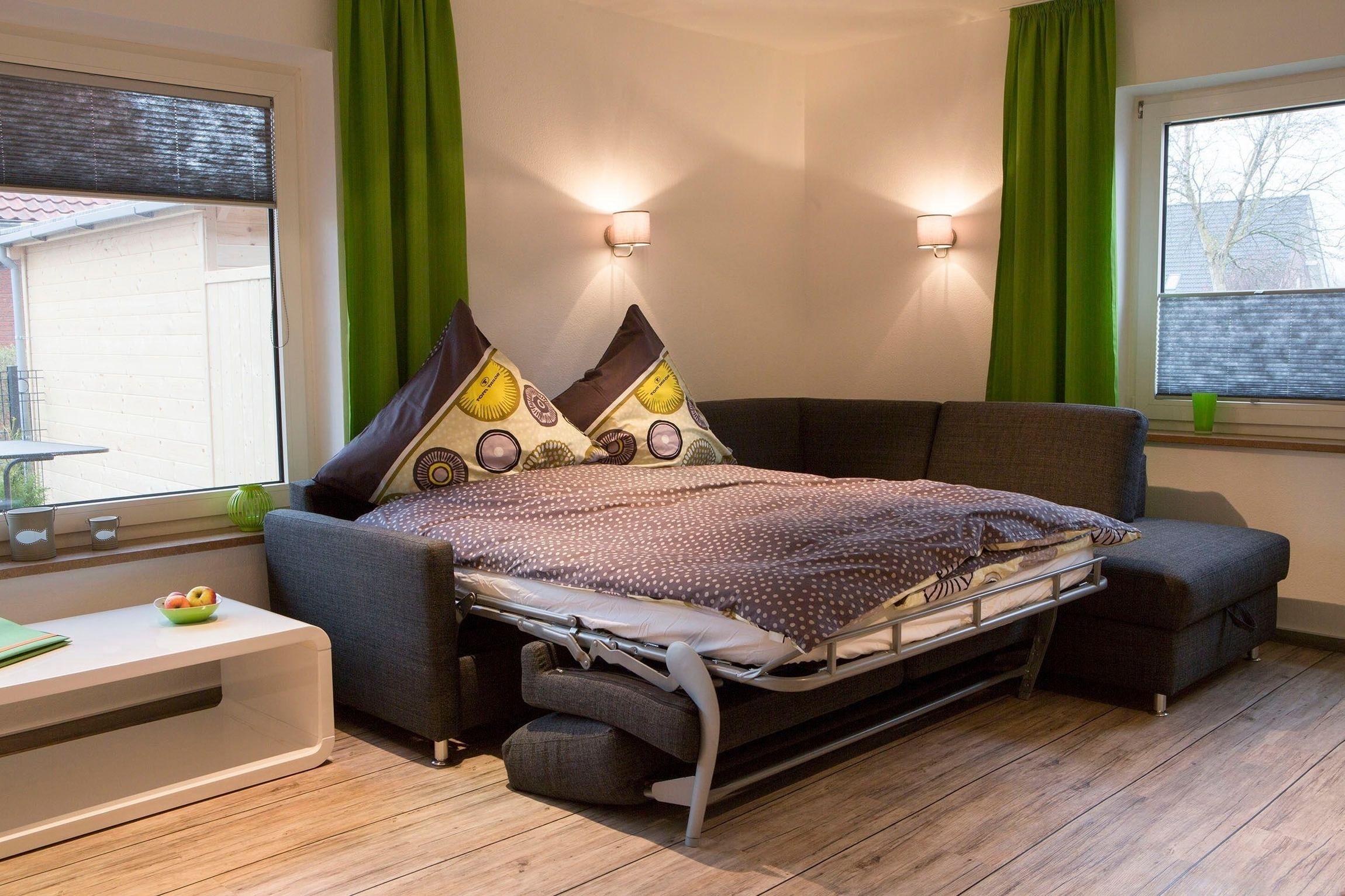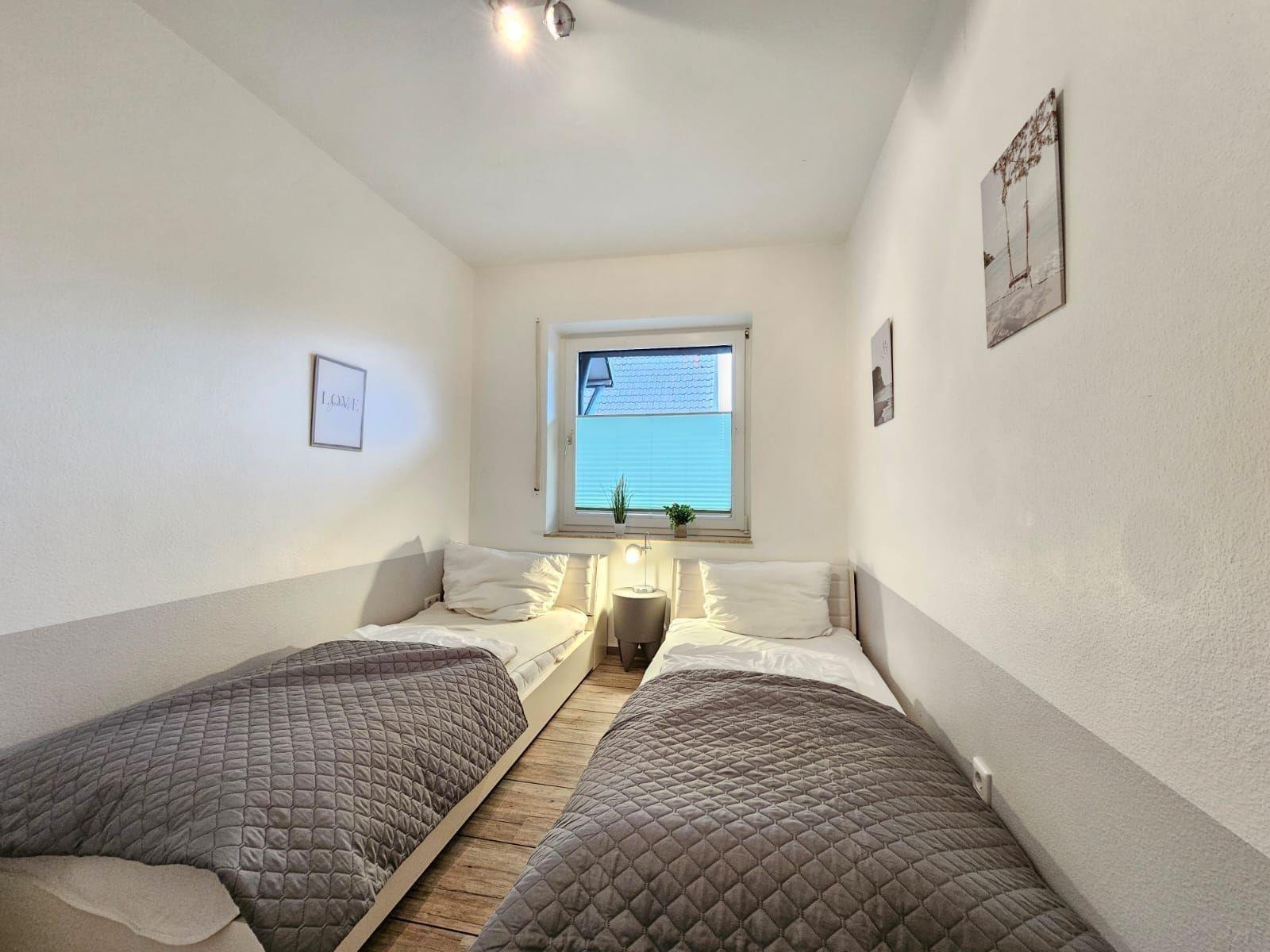 Die Ferienwohnung bietet eine großzügige und moderne Ausstattung, ideal für einen erholsamen Aufenthalt. Sie umfasst zwei Schlafzimmer, eines mit einem Doppelbett und eines mit zwei Einzelbetten. Des Weiteren steht ein Wohnschlafzimmer mit einer Schlafcouch zur Verfügung.