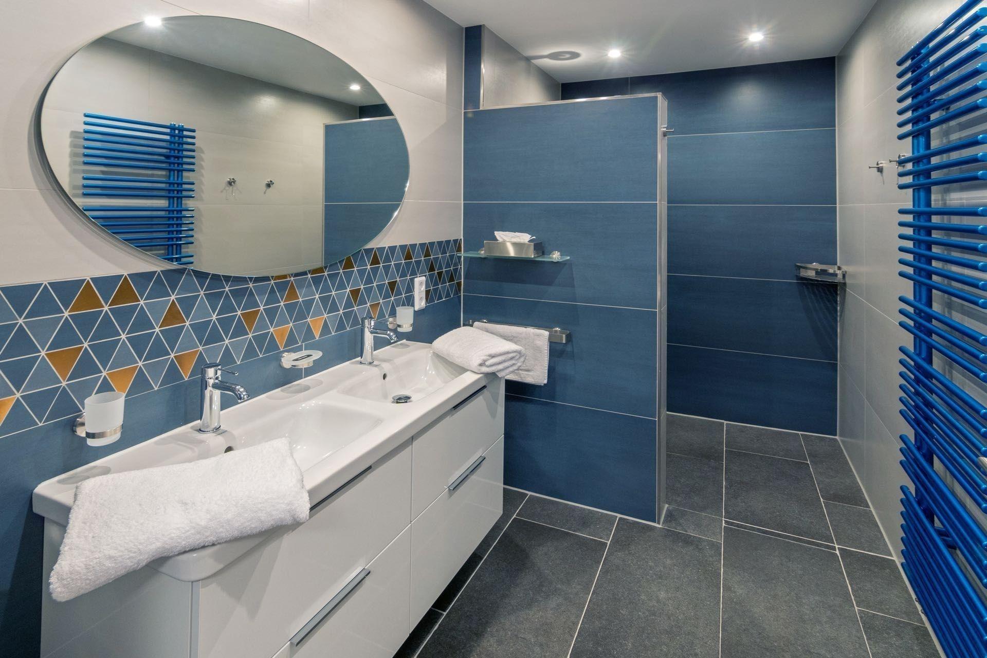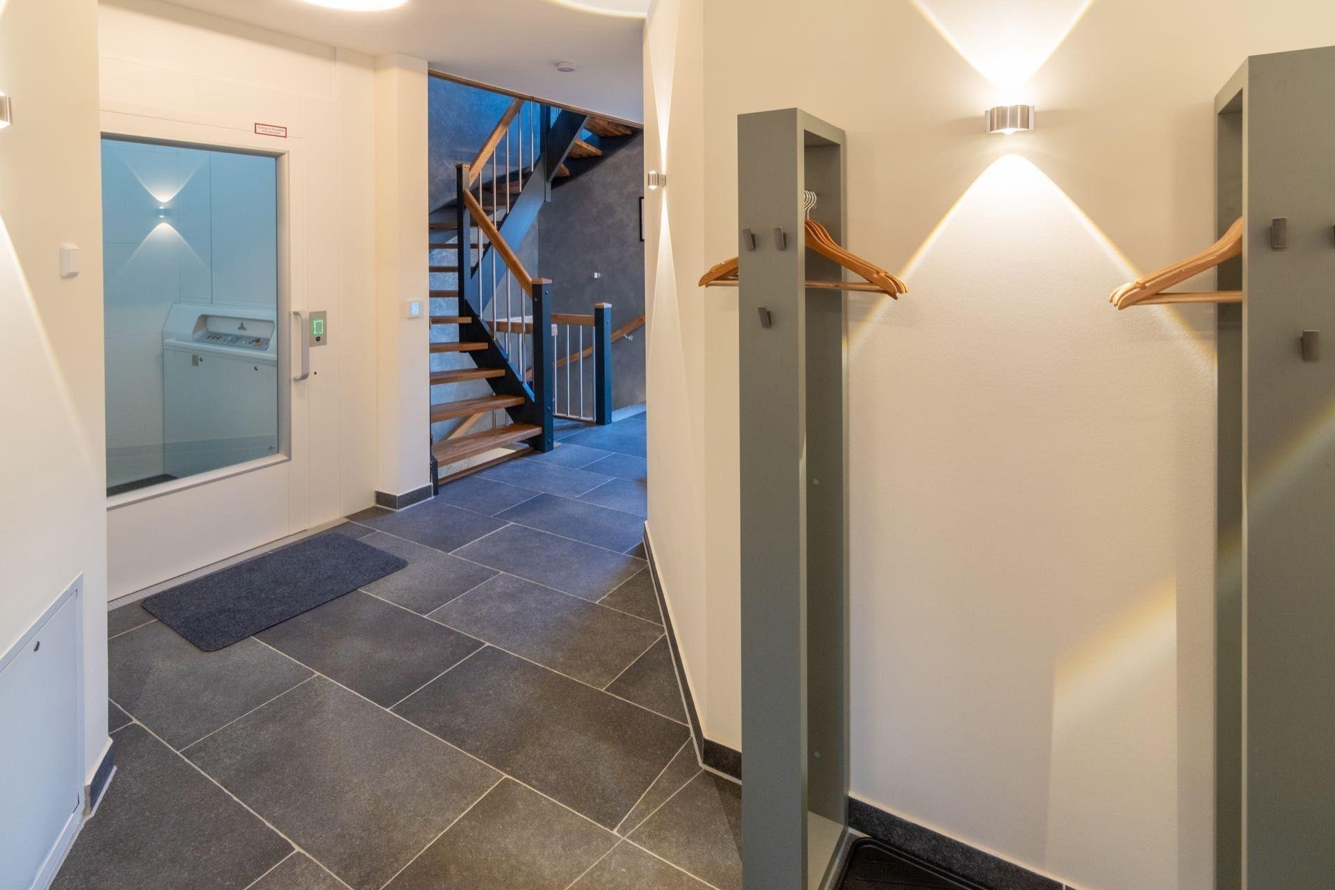 Die Ferienwohnung bietet eine komfortable und stilvolle Unterkunft, die perfekt für Familien und Senioren geeignet ist. Sie besteht aus drei Schlafzimmern, in denen sich insgesamt drei Doppelbetten befinden. Die beiden modernen Badezimmer sind mit einem Duschbad und weiteren Annehmlichkeiten ausgestattet, darunter ein Kosmetikspiegel und ein Bidet. Die offene Küche ist komplett ausgestattet mit Geschirrspüler, Elektro- und Gasherd, Backofen, Kühlschrank, Mikrowelle sowie einer hochwertigen Kaffee Siebträgermaschine. Verschiedene Geräte, wie ein Wäschetrockner und eine Waschmaschine, garantieren zusätzlichen Komfort. WLAN sorgt für eine permanente Internetverbindung. Die barrierefreien Zugänge und ein Fahrstuhl ermöglichen einen gerätelosen Aufenthalt für alle Gäste. Ein Fitnessraum steht ebenfalls zur Verfügung. Der gemütliche Wohnbereich mit Sofa und Esstisch lädt zum Entspannen ein. Ein Parkplatz ist ebenfalls vorhanden, um den Aufenthalt so angenehm wie möglich zu gestalten.