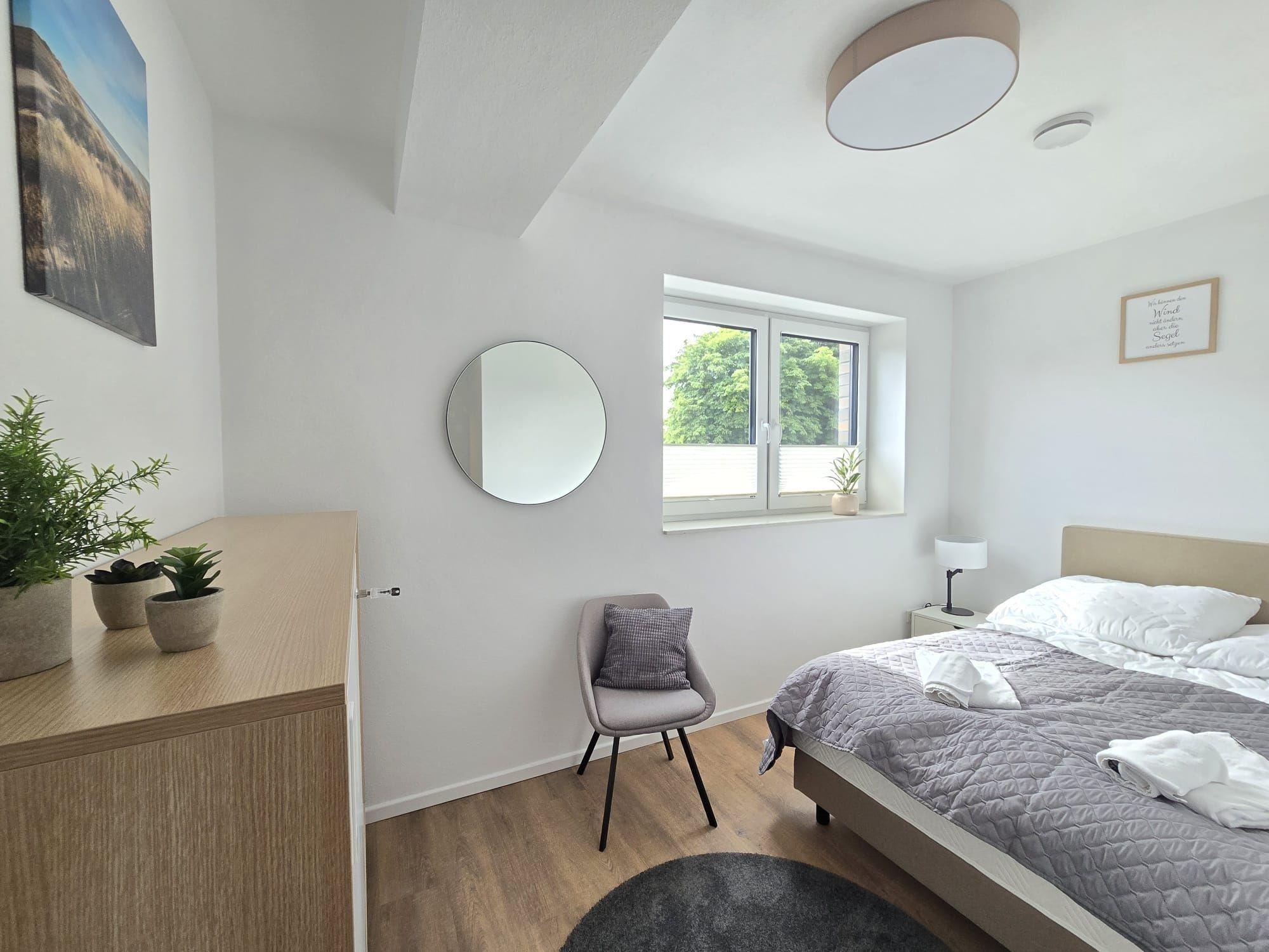 Die Ferienwohnung präsentiert sich als idealer Rückzugsort mit einer großzügigen Raumaufteilung. Sie bietet zwei Schlafzimmer mit komfortablen Doppelbetten, die für eine erholsame Nachtruhe sorgen. Die offene Küche ist bestens ausgestattet mit einem Elektro-/Gasherd, Geschirrspüler, Kühlschrank und Backofen sowie einer Mikrowelle und Kaffeemaschine, ideal für die Zubereitung von Mahlzeiten. Das moderne Badezimmer verfügt über ein Fenster, ein Duschbad und einen Haartrockner. Zur weiteren Ausstattung gehören ein komfortables Sofa, ein Esstisch, TV und WLAN-Internet, das für Unterhaltung sorgt. Für Familien stehen ein Kinderhochstuhl und eine Waschmaschine bereit. Die Wohnung ist allergikergeeignet und bietet Annehmlichkeiten wie einen Parkplatz und einen Fahrstuhl. Ein Starterset mit Reinigungsmitteln, Toilettenpapier und Pflegeprodukten sorgt für einen stressfreien Aufenthalt.