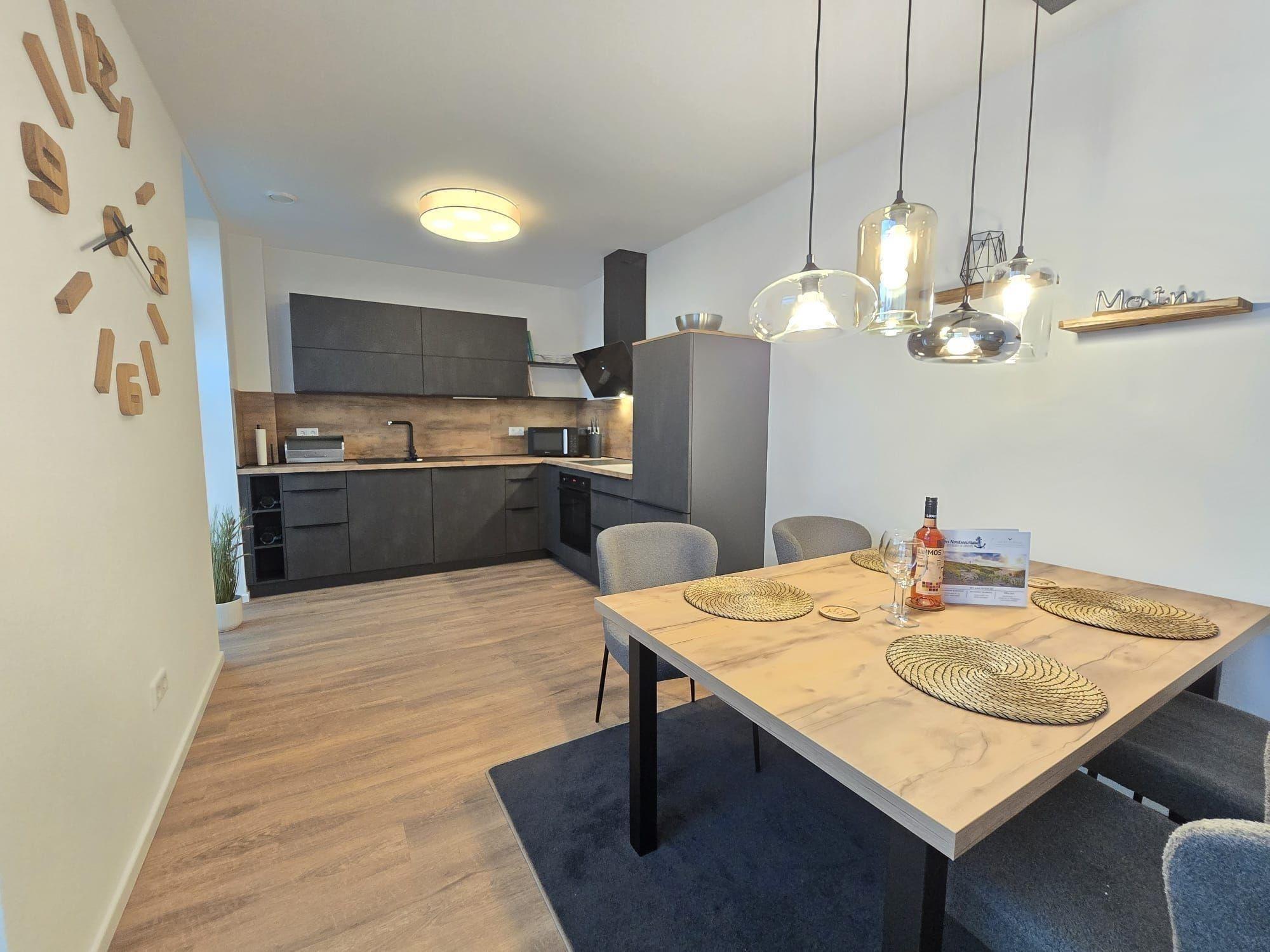 Die Ferienwohnung begeistert durch ihre großzügige und durchdachte Raumaufteilung. Sie bietet zwei komfortable Schlafzimmer, darunter ein Doppelbett und eine Schlafcouch, sowie ein modernes Badezimmer mit Fenster und Duschbad. Die offene Küche ist bestens ausgestattet mit einem Elektro-/Gasherd, Backofen, Geschirrspüler, Kühlschrank, Mikrowelle und Kaffeemaschine. Geschmackvolle Details wie ein Esstisch und ein gemütliches Sofa im Wohnschlafzimmer laden zum Verweilen ein. Die barrierefreie und seniorengerechte Ausstattung umfasst Wäschetrockner, Waschmaschine, Fahrstuhl sowie zahlreiche Annehmlichkeiten für Allergiker. WLAN ist ebenfalls verfügbar. Ein Parkplatz gehört zur Wohnung, ebenso wie ein Starterset mit Seifen und Reinigungsmitteln. Die Kombination aus Funktionalität und Komfort sorgt für erholsame Tage. Die Wohnräume sind hell und freundlich gestaltet, um eine angenehme Atmosphäre zu schaffen.