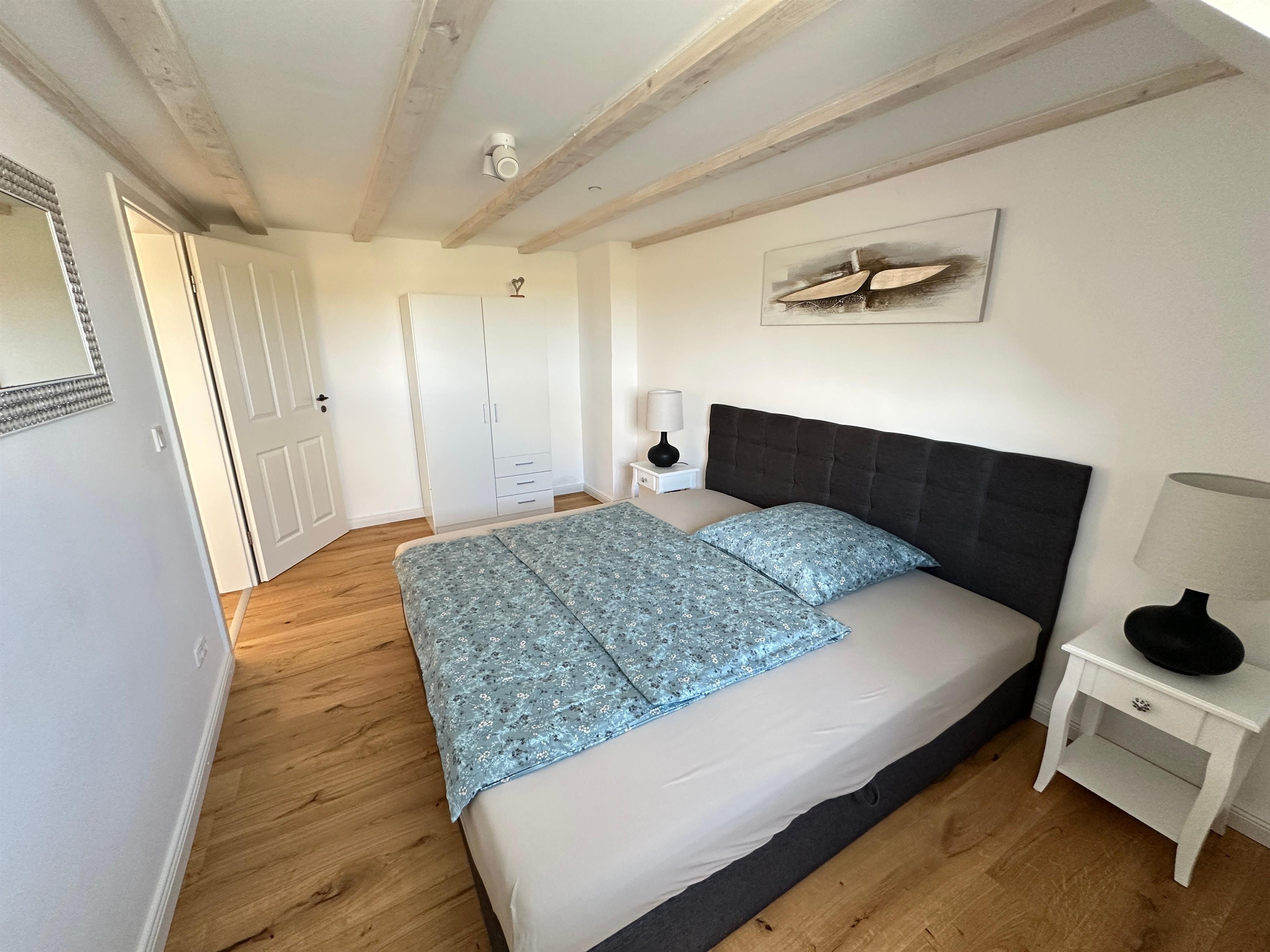 Frisch erstellte Ferienwohnung im Erdgeschoss mit zwei Schlafzimmern, Wohnzimmer, Bad mit Dusche und WC, Küche mit Einbauküche.