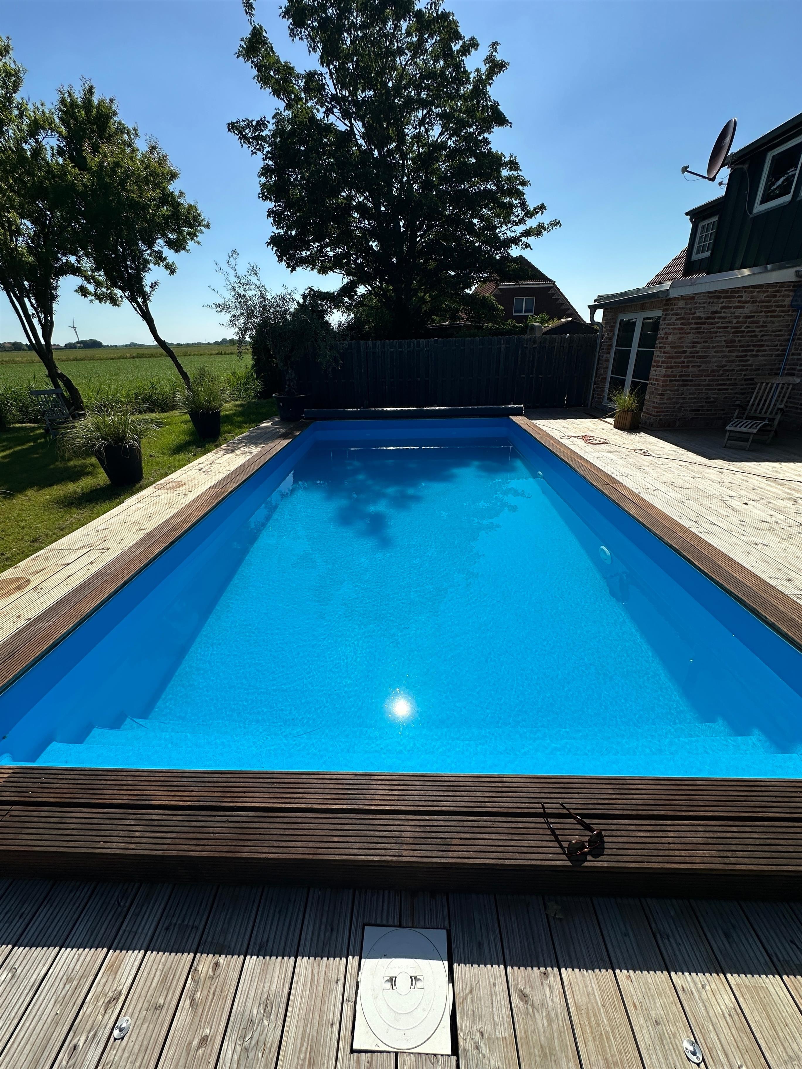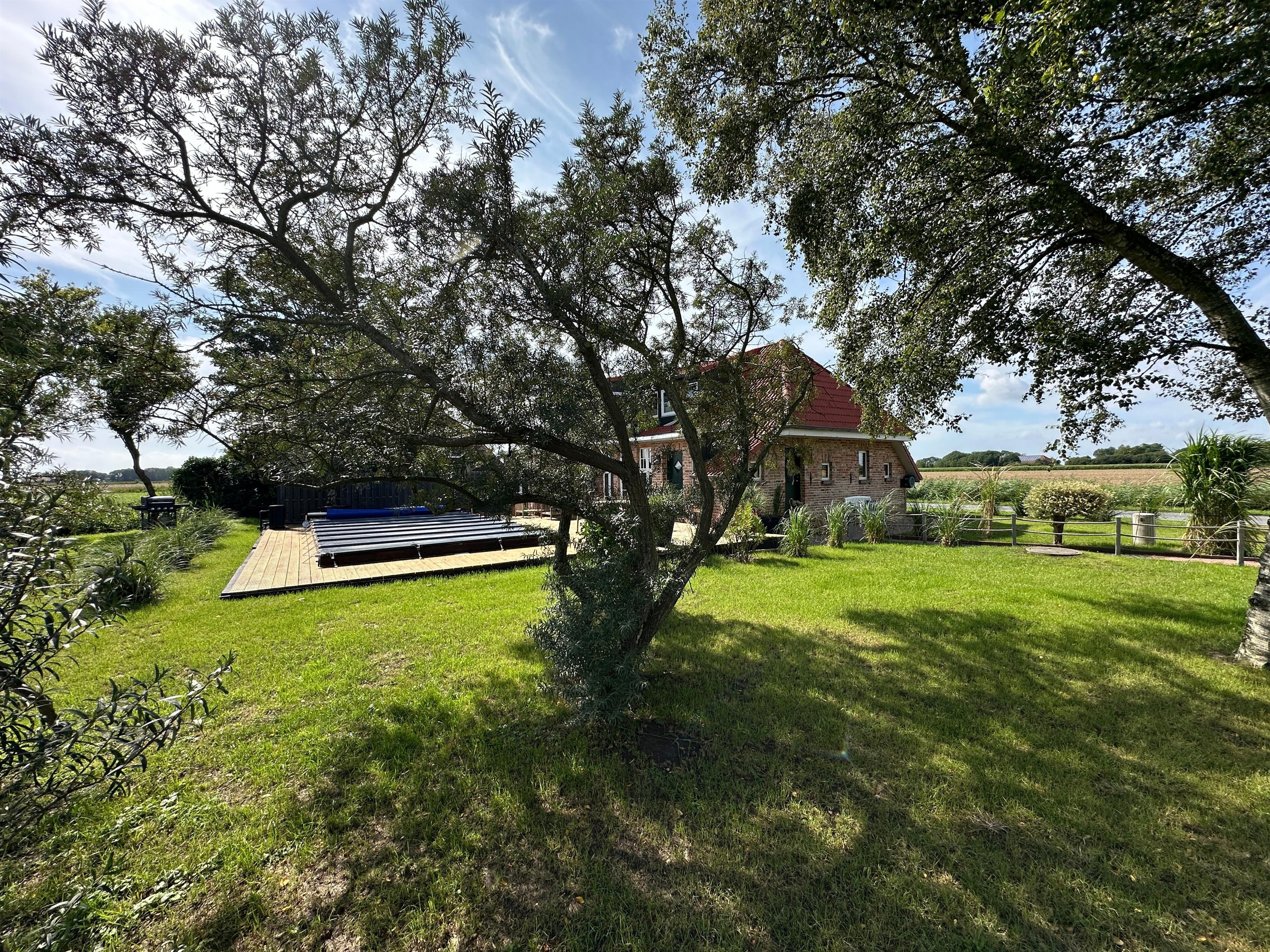 Der Außenbereich lädt mit seiner großzügigen Holzterrasse, die den ganzen Tag über Sonne bietet, zum Entspannen ein. Eine komfortable Lounge-Garnitur, eine Holztischgruppe mit vier Stühlen, zwei Sonnenliegen, ein Strandkorb, eine Hängematte sowie eine Hängebank lassen keinen Wunsch für Ihre Erholung offen. Highlight ist der große, beheizte Pool, der Ihnen von Mai bis Oktober zur Verfügung steht und für erfrischende Momente sorgt. Der etwa 2000 qm große Garten bietet zudem einen befreienden Blick über Felder und Wiesen, während Ihnen drei kostenlose KFZ-Parkplätze direkt am Haus den nötigen Komfort für Ihre Mobilität bieten.