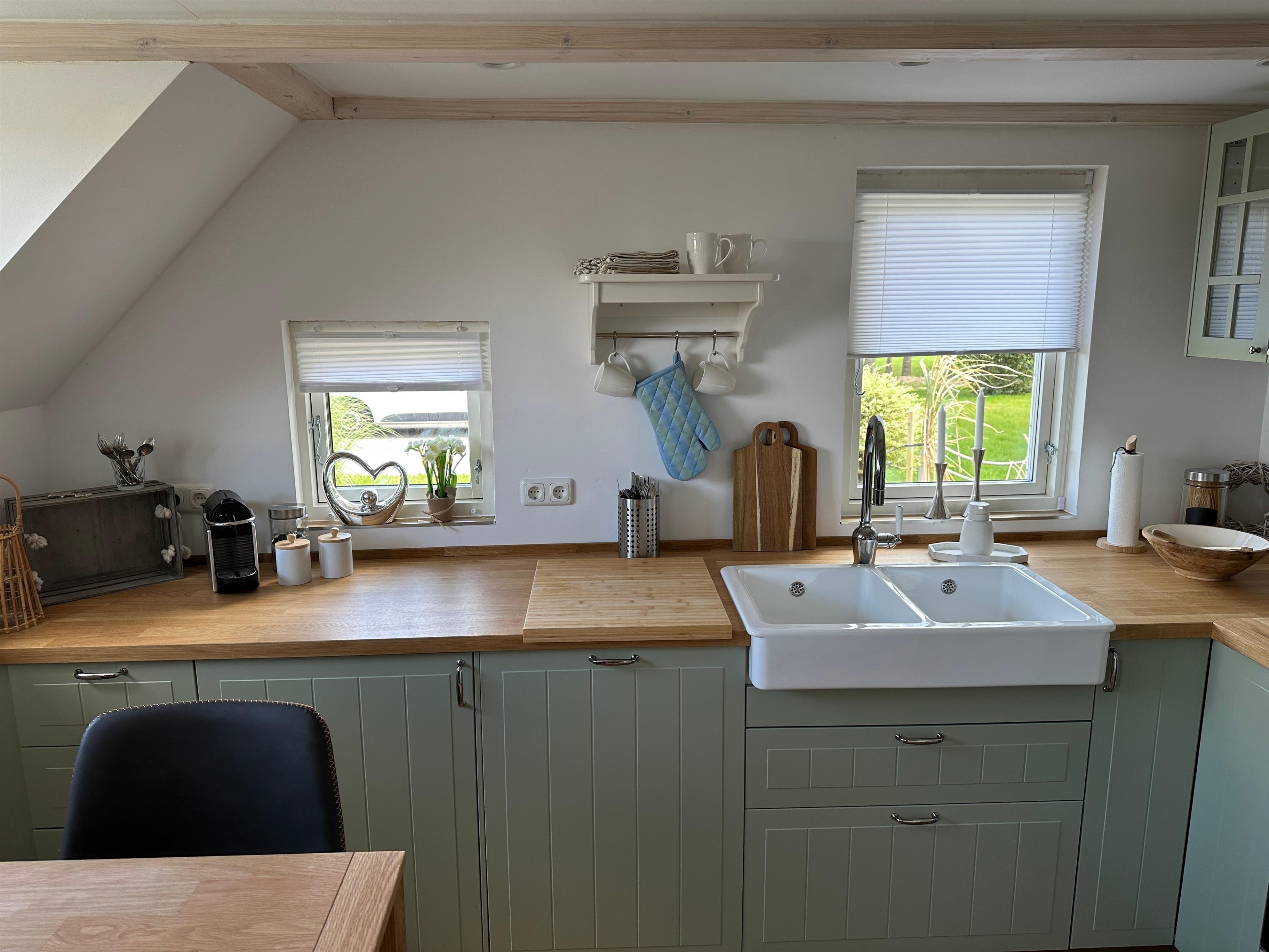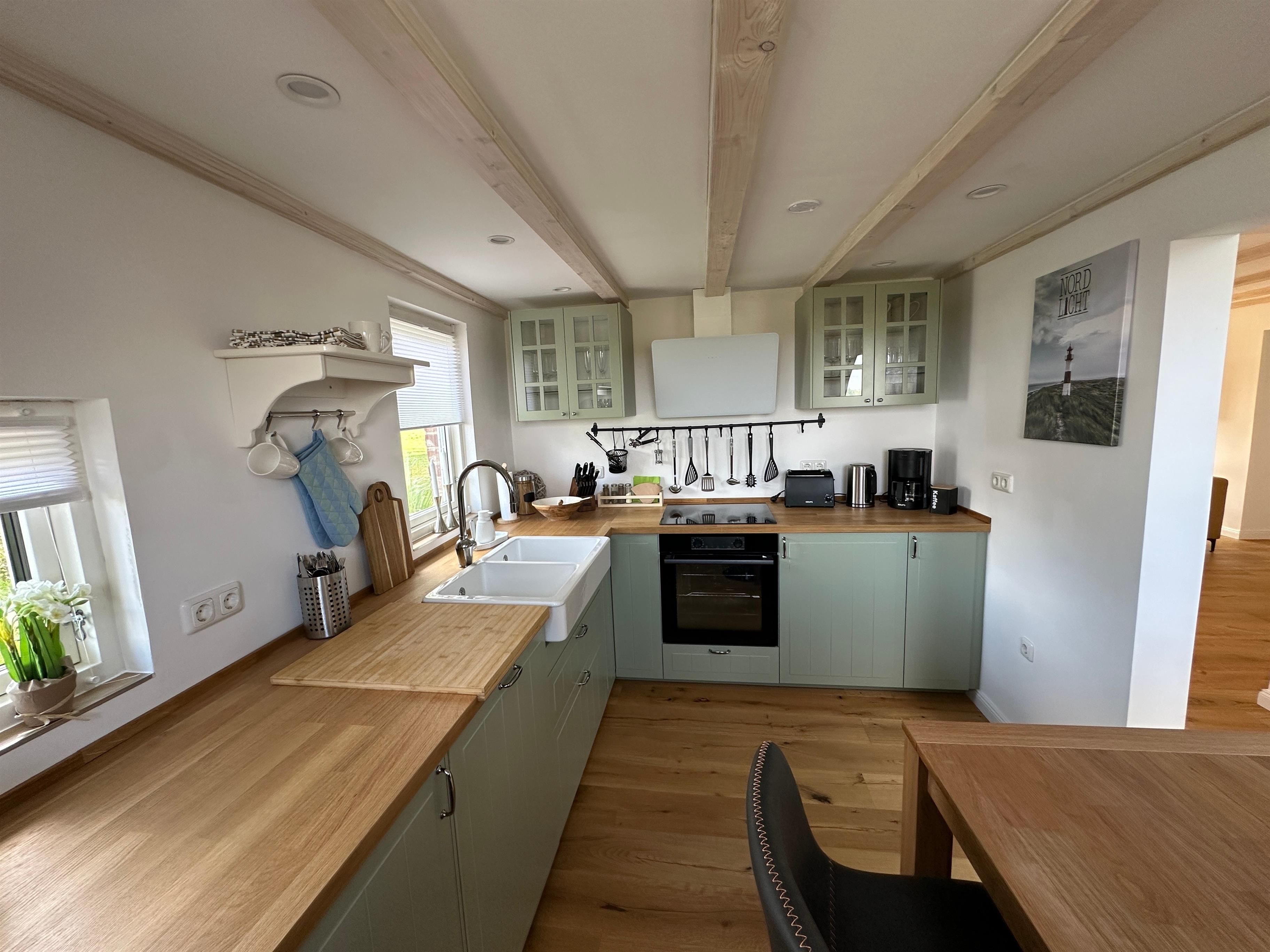 Im Inneren der Wohnung erwartet Sie eine helle, moderne und hochwertige Einrichtung, die über die letzten zwei Jahre hinweg komplett saniert wurde. Jeder Raum wurde liebevoll gestaltet und mit neuen Böden, Wänden, Bädern, Decken, Fenstern, Türen, der Elektrik und Möbeln ausgestattet, um Ihnen ein unvergleichliches Wohngefühl zu bieten. Die Küche beeindruckt mit einem Induktionskochfeld, großem Side-by-Side-Kühlschrank, Spülmaschine, Backofen und Waschmaschine. Für gemütliche Stunden sorgt der schöne Kaminofen, der vom 01.10. bis zum 30.04. eines jeden Jahres mit einem Korb Feuerholz bestückt wird, während Echtholz Eiche-Parkett Landhausdielen und ein smart TV im Wohnzimmer den Komfort abrunden.