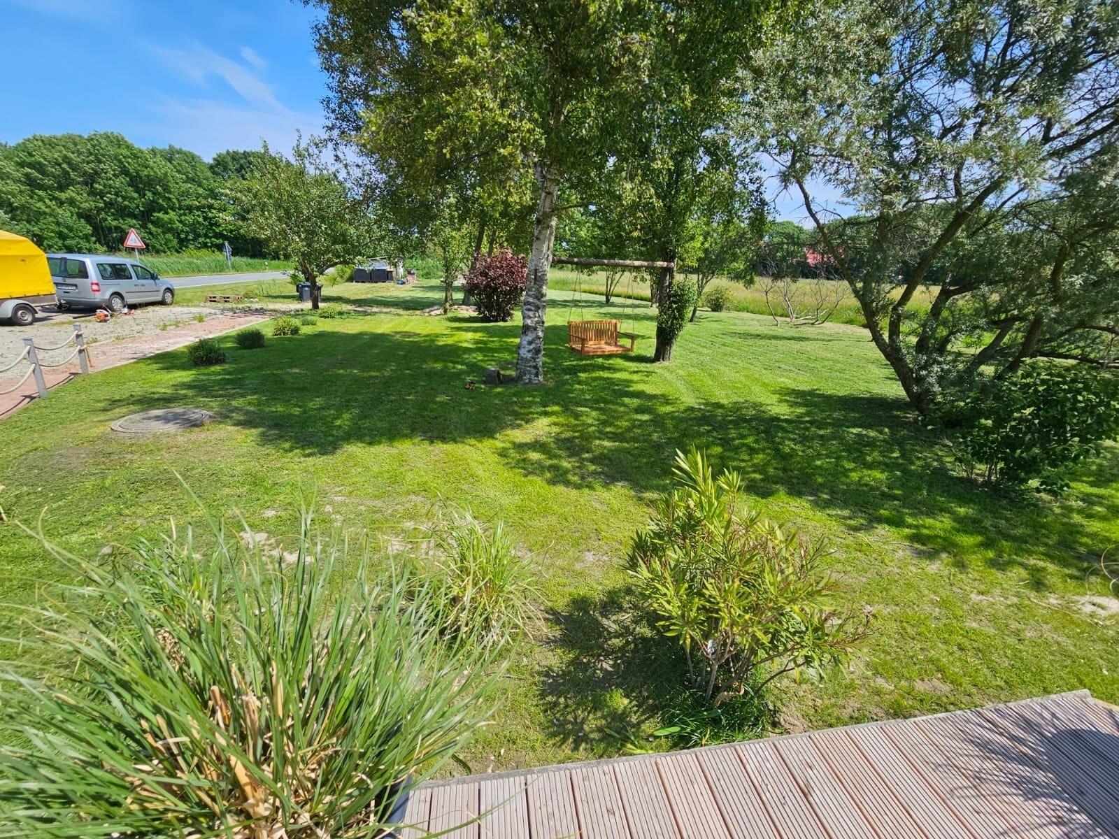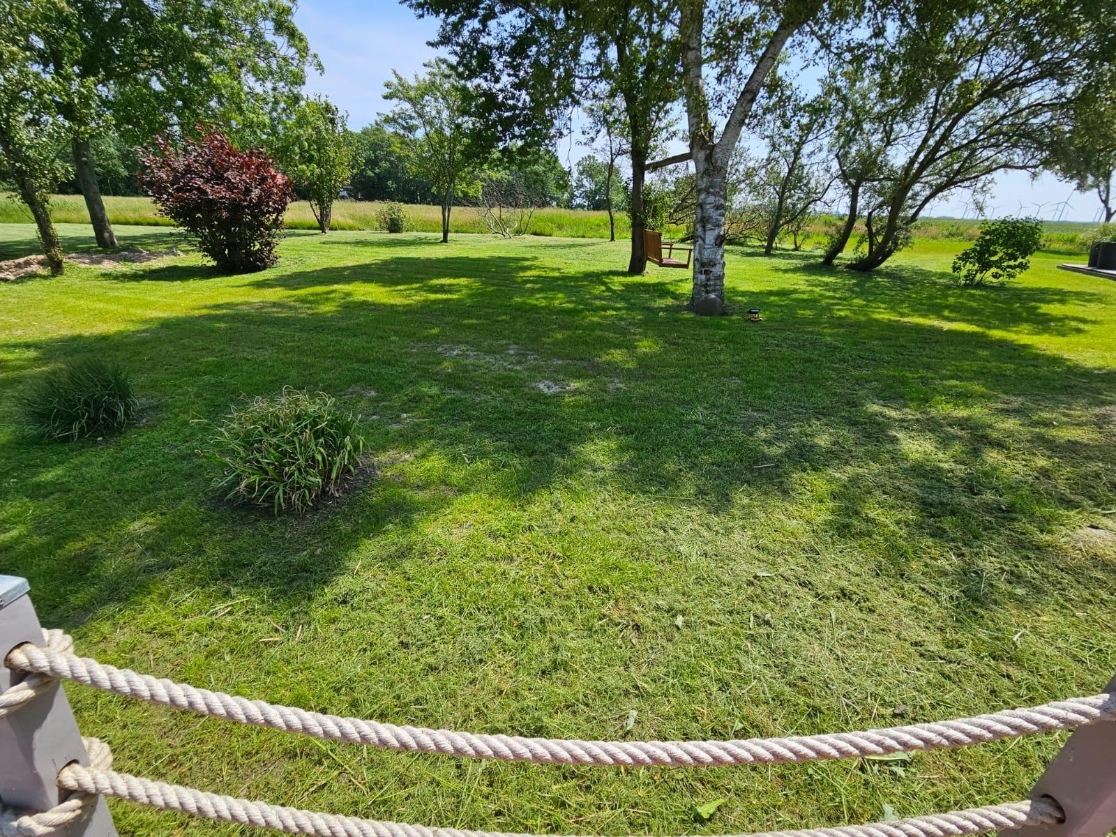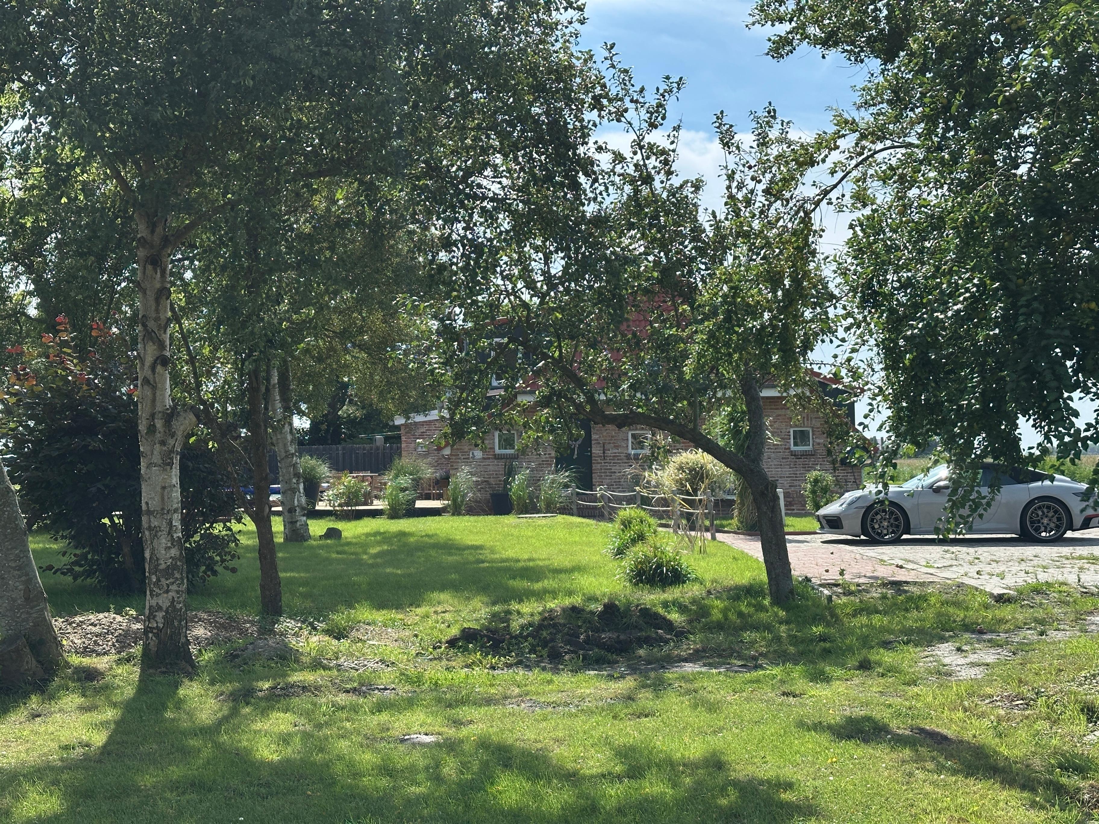 Der Garten ist ca. 2000 qm groß und man hat freien Blick über Felder und Wiesen.