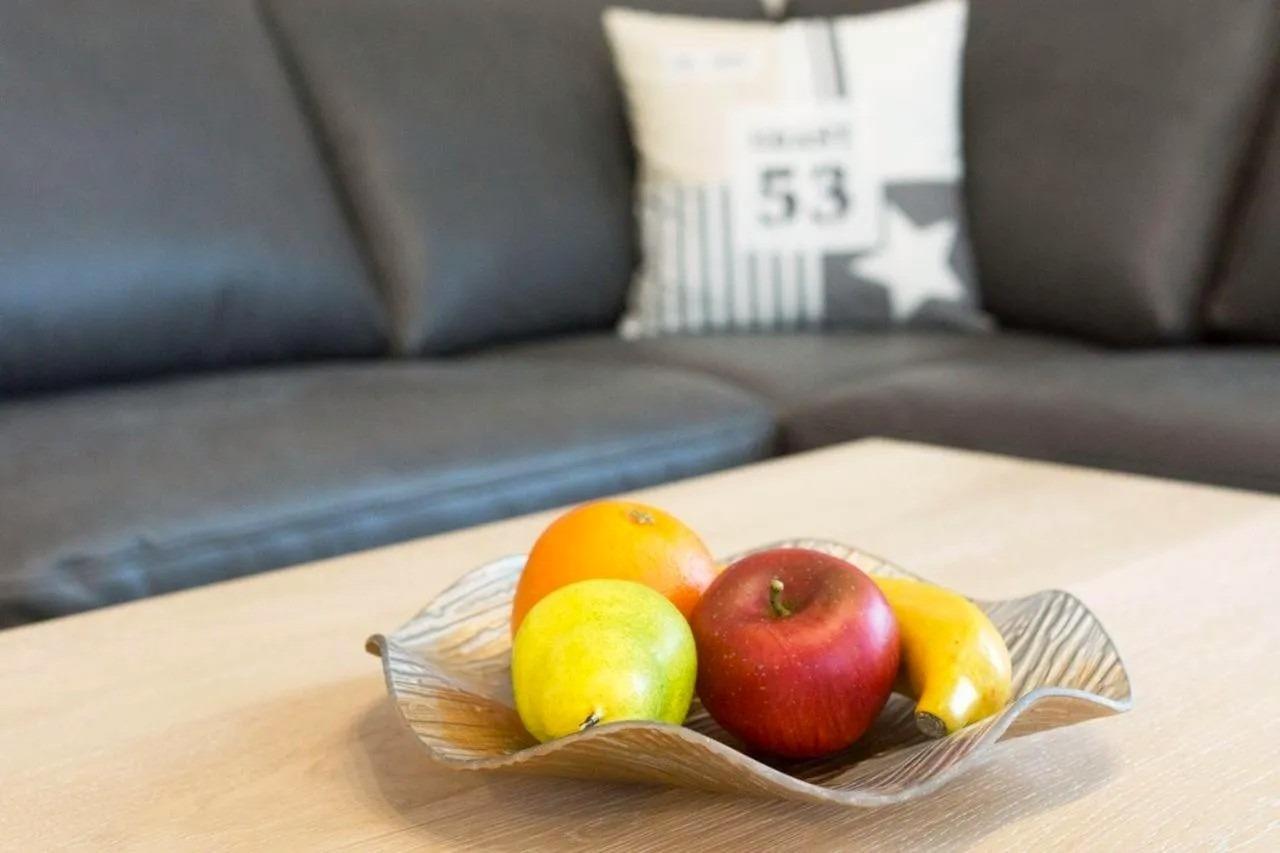 Das Herzstück der Ferienwohnung bildet der großzügige Wohn- und Essbereich mit offener, umfangreich ausgestatteter Küche. Ein großes, bequemes Ecksofa und ein zusätzlicher Sessel bieten reichlich Platz zum Entspannen – ob mit einem guten Buch, beim Fernsehen oder für gemütliche Abende zu zweit oder mit der Familie.