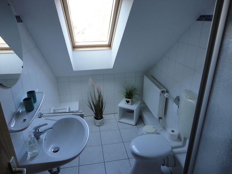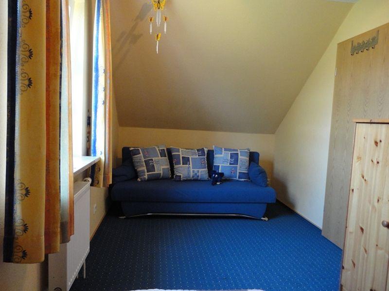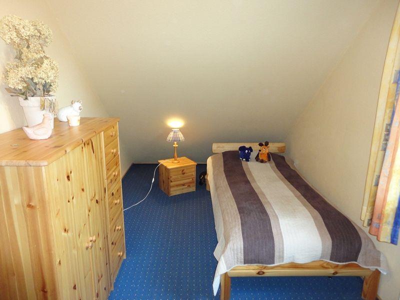 Im Obergeschoss befinden sich 2 weitere Schlafräume (1 *Doppelbett 1,40m breit, durchgehende Matratze, sowie 1*Einzelbett und 1*Schlafsofa und ein weiteres Duschbad mit WC. Die Schlafräume lassen sich nur durch Vorhänge abdunkeln.