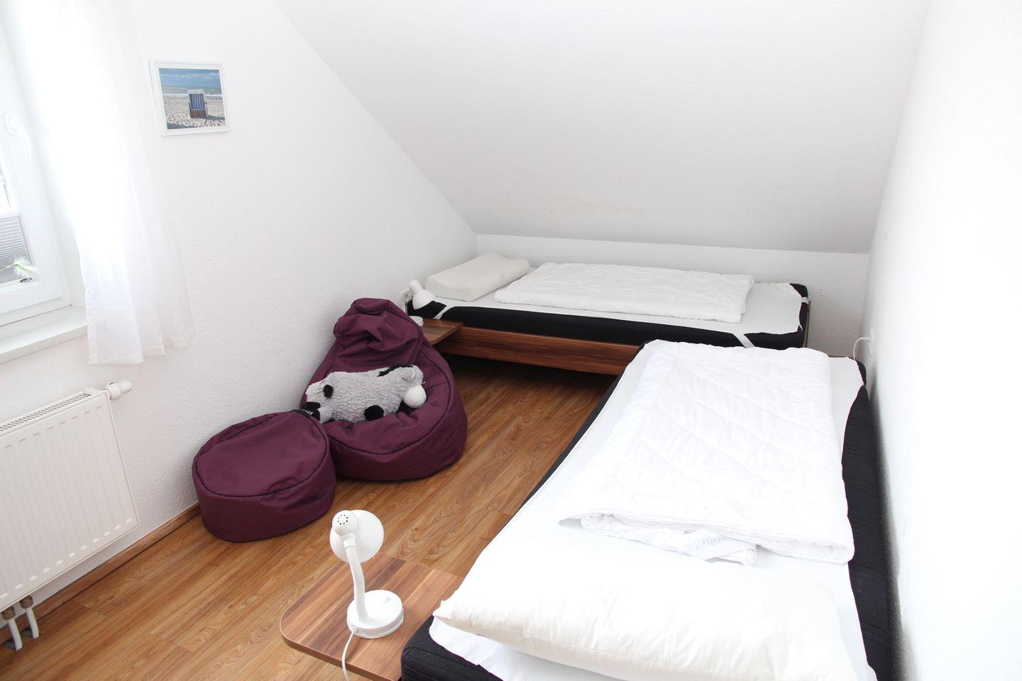 Ein Schlafzimmer (Doppelbett 2*0,80m) und ein großes Badezimmer befinden sich im EG. Zwei weitere Schlafzimmer (1x Doppelbett 2*0,90m und 2 Einzelbetten je 0,90m) und ein Dusch-Bad sind im OG untergebracht. Eines der Schlafzimmer im Obergeschoss ist mit einem Schreibtisch ausgestattet, sodass auch das Arbeiten möglich ist. Außer im Schlafzimmer sorgt eine Fußbodenerwärmung für angenehme Wärme im Erdgeschoss und im Bad im Obergeschoss. Das Haus verfügt über 2 x LCD-TV (Anschlüsse in allen Schlafräumen vorhanden), einen Blu-ray-Player und eine Musikanlage mit CD (iPad, iPhone und iPod kompatibel).