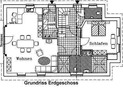 Alle Schlafzimmer haben einen eigenen Fernseher mit integriertem DVD-Player. Im Wohnzimmer steht ein großer Fernseher mit DVD Dolby-Surround-Anlage zur Verfügung. Im ganzen Haus (Niedrigenergiehaus) gibt es eine kontrollierte Wohnraumlüftung, die in allen Räumen für frische Luft sorgt, auch wenn die Fenster geschlossen sind. Die große Besonderheit für dieses Ferienhaus ist die Holz-Pellets-Zentralheizung, die zusammen mit der Solaranlage und dem wasserführenden Kaminofen im Wohnzimmer die Wärmeversorgung übernimmt. Im Außenbereich befindet sich ein großer Kinderspielplatz aus Holz.