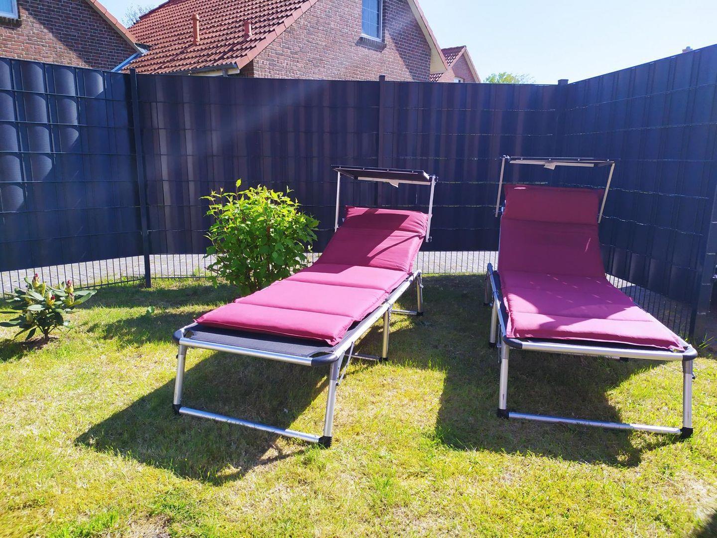 Die Terrasse ist möbliert und der Garten ist liebevoll angelegt worden.