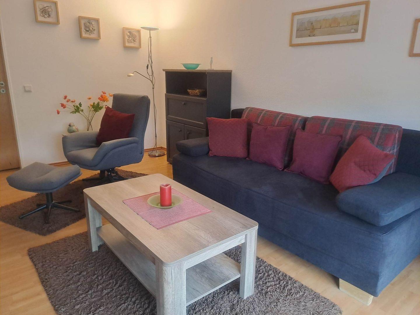 Das 2-Raum-Appartement im Erdgeschoss verfügt über ein separates Schlafzimmer mit Doppelbett, Wohn-Schlafraum (Schlafsofa) mit Kabel-TV, Terrasse, separate Küche und Dusche/WC.