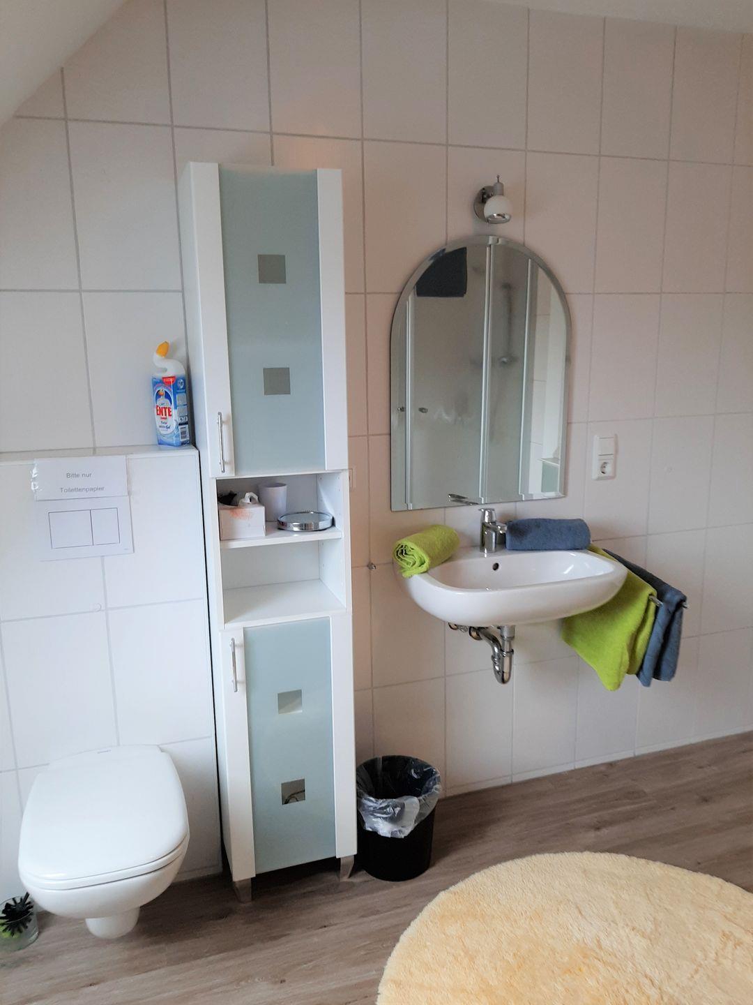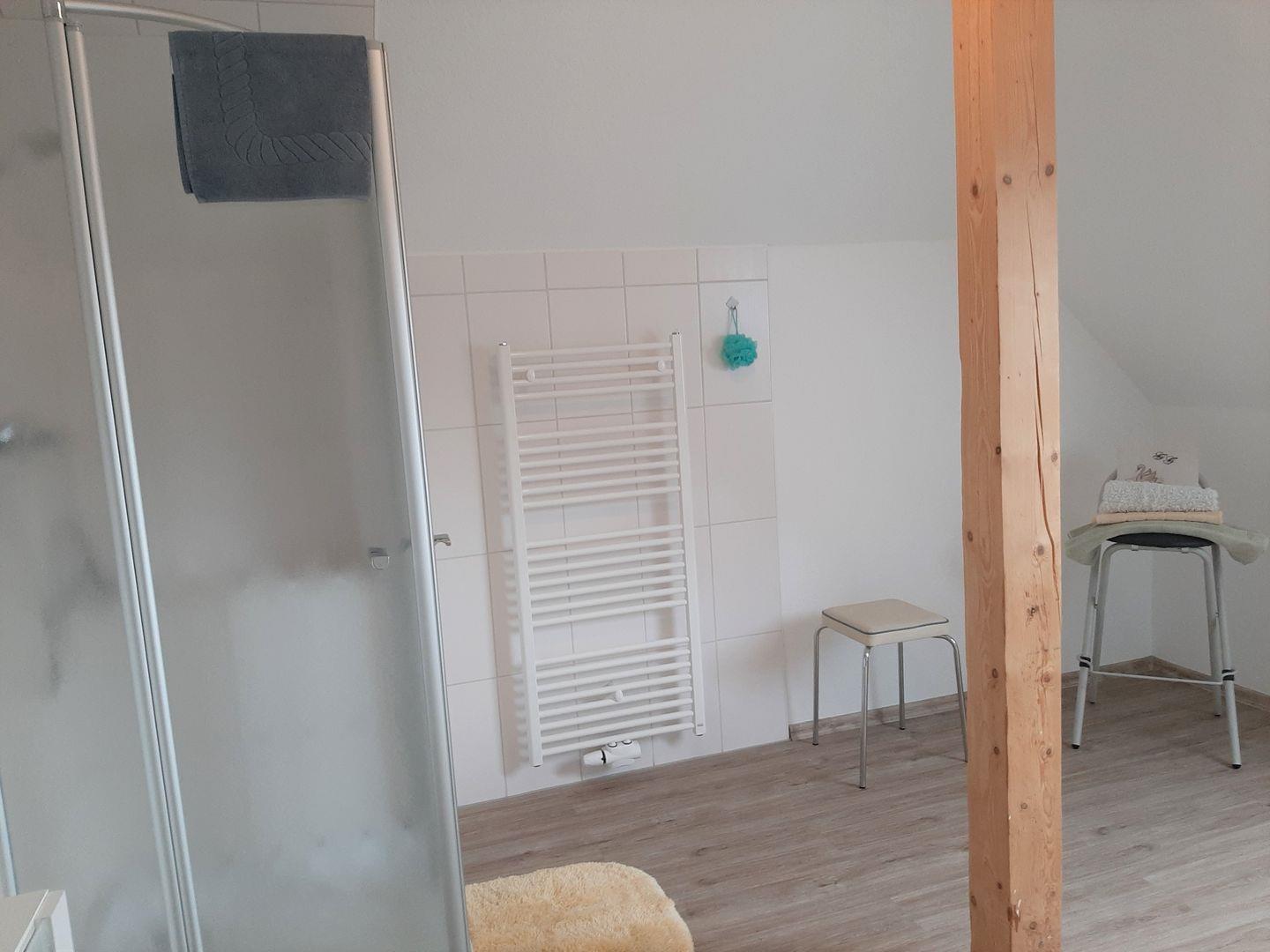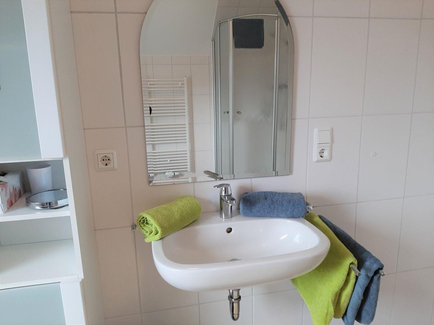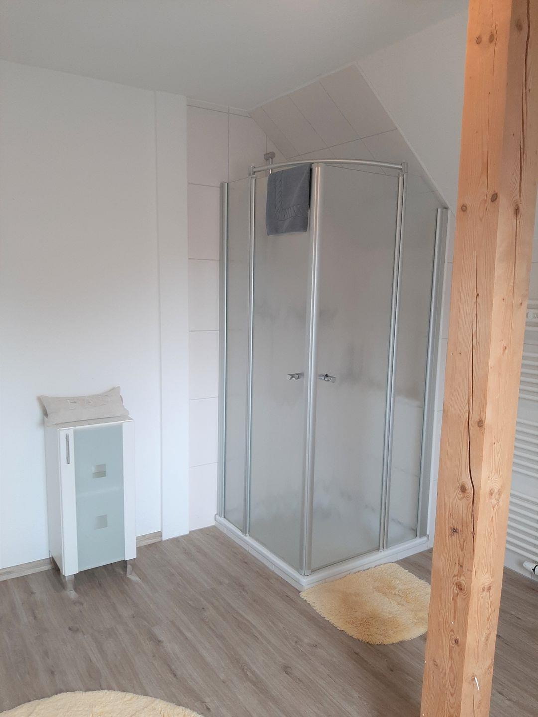 Diese Ferienwohnung punktet mit ihrem großzügigen Duschbad. Hier kann man den Tag entspannt beginnen.