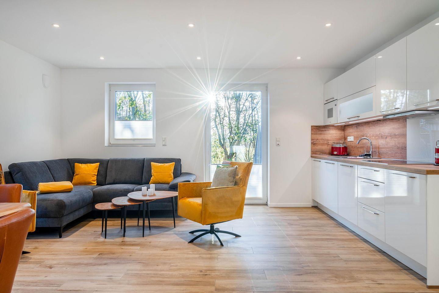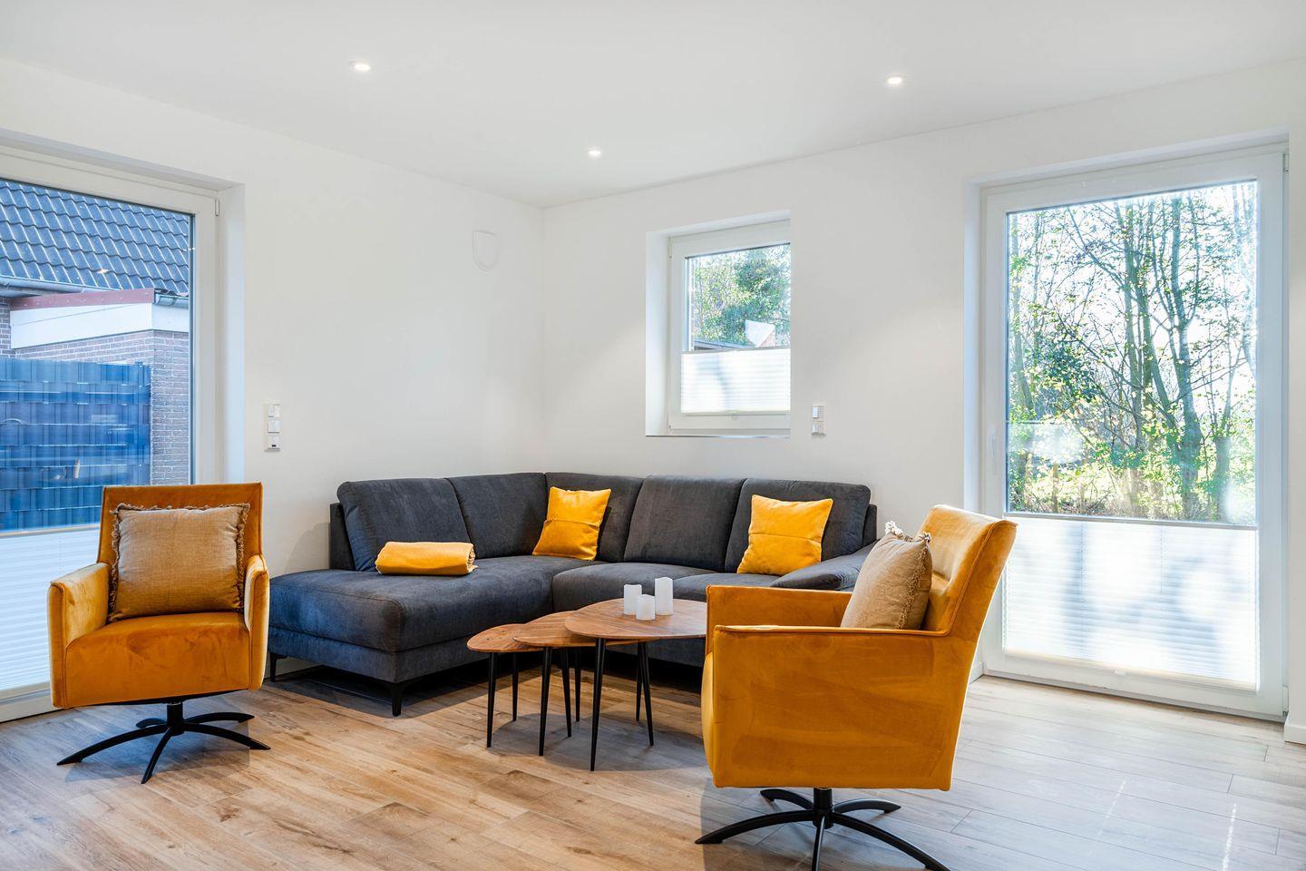 Borkum – zwei Schlafzimmer, ein Badezimmer, ein Abstellraum, inklusive Waschmaschine, ein Gäste-WC, großzügiger Wohn- und Essbereich, gemeinschaftliche Nutzung des Gartens und eine eigene Terrasse