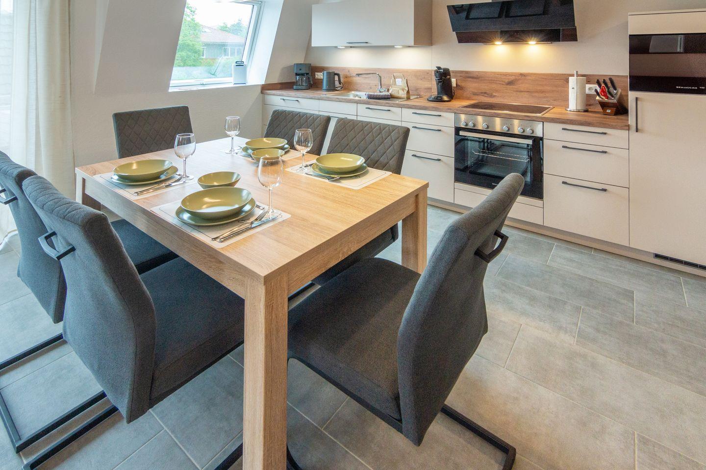 In der voll eingerichteten, offenen Küche finden Sie ein 4-Platten-Ceranfeld, Backofen und Spülmaschine, sowie einen Kühlschrank mit Gefrierfach, Senseo und Kaffeemaschine, Wasserkocher, Toaster und vieles Weitere für Ihr "perfektes Nordsee-Dinner".