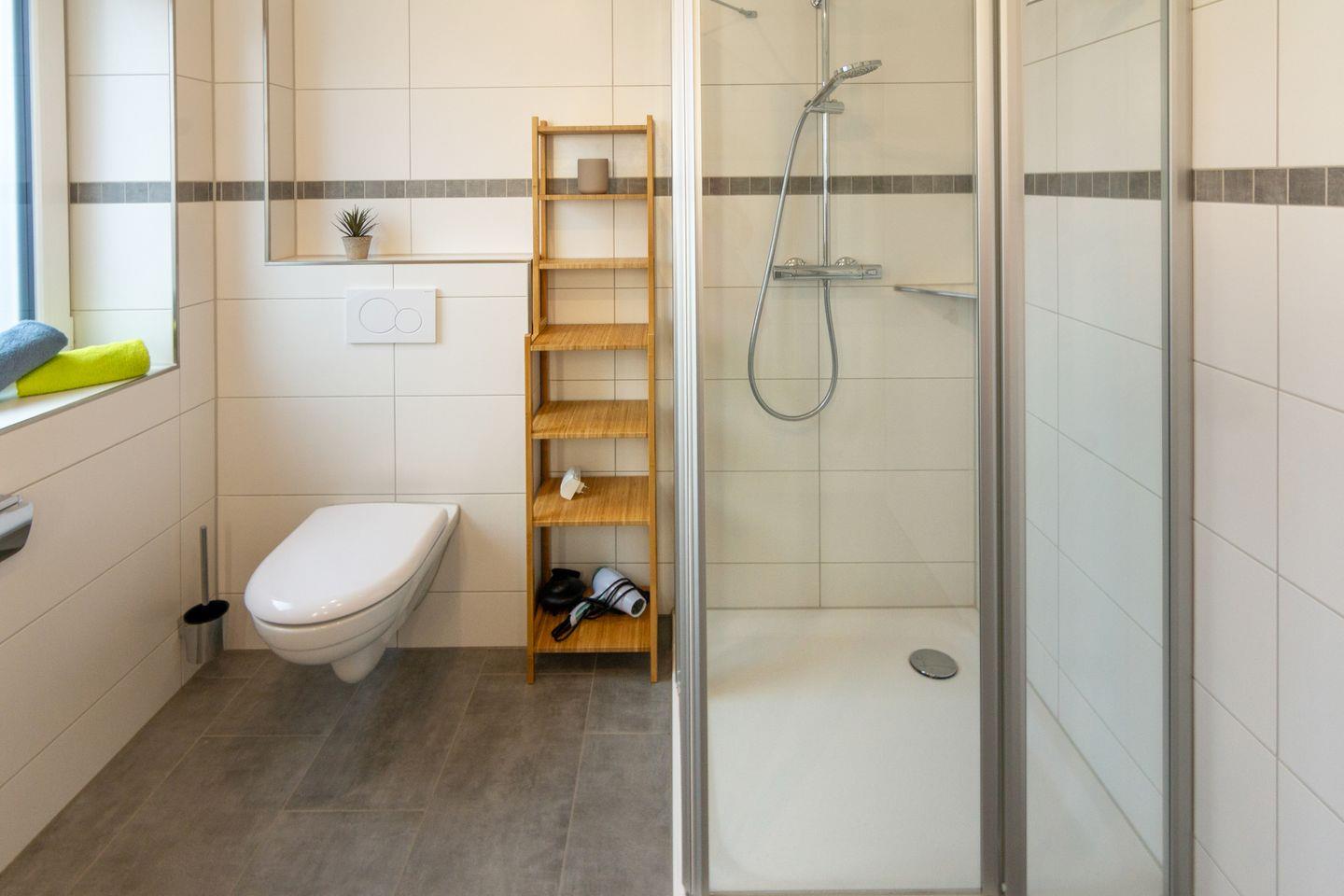 Das Duschbad mit ebenerdiger Dusche lässt keine Wünsche offen: