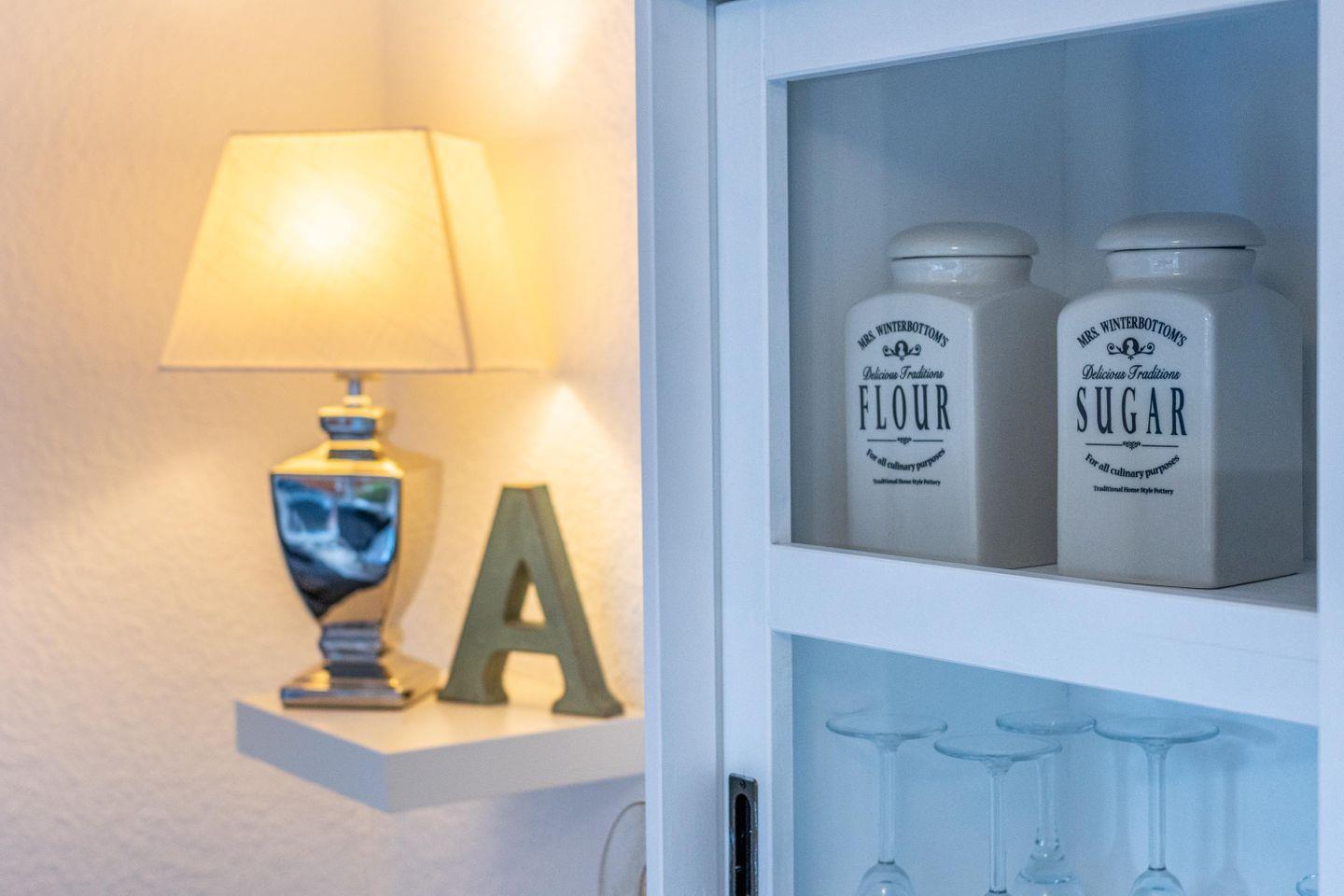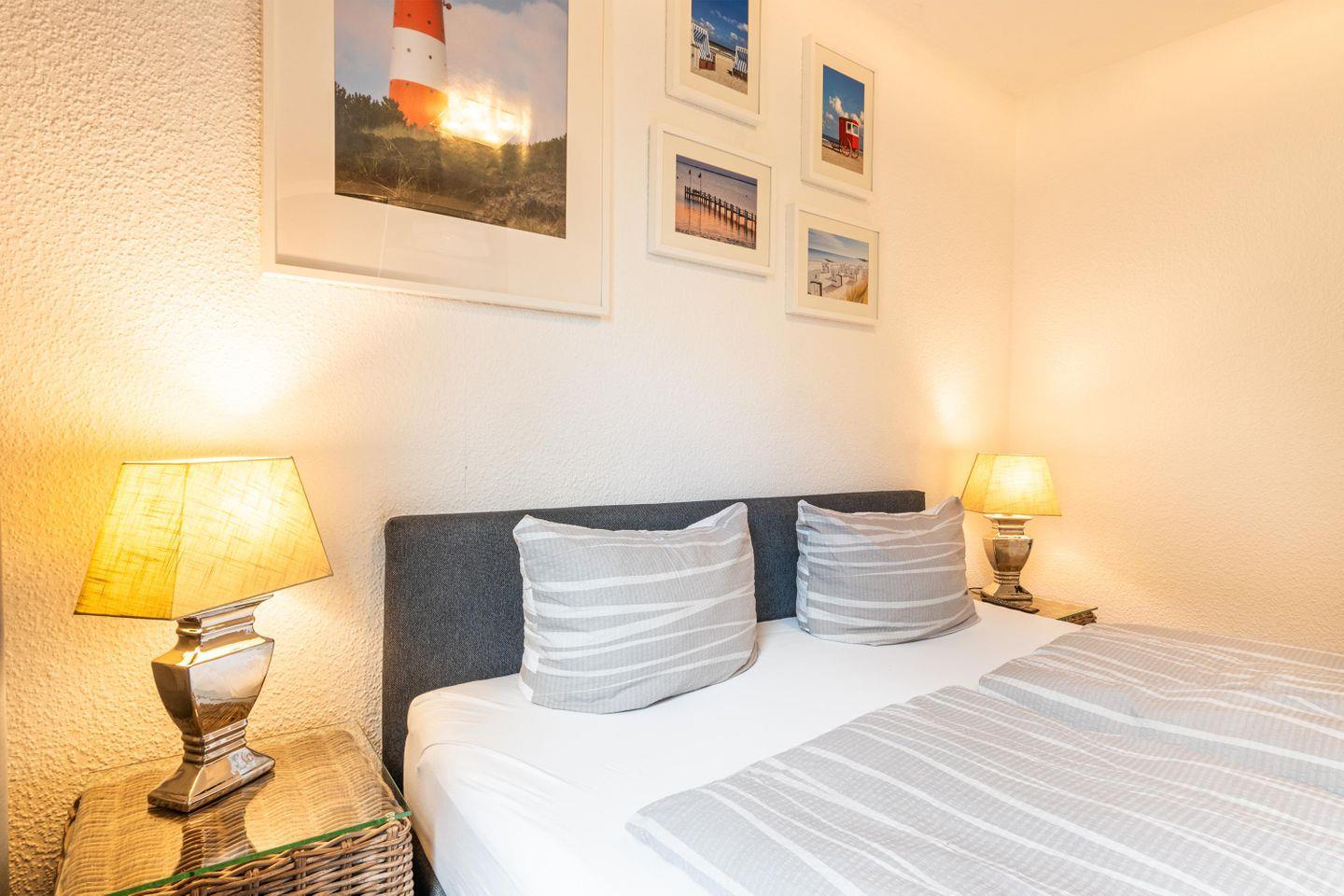 Zwei liebevoll eingerichtete Schlafzimmer sorgen für erholsame Nächte, während das einladende Wohnzimmer mit Sofaecke und TV perfekt für gemütliche Abende ist. Die geschlossene, voll ausgestattete Küche mit Herd, Backofen, Geschirrspüler und Kühlschrank lässt keine Wünsche offen.