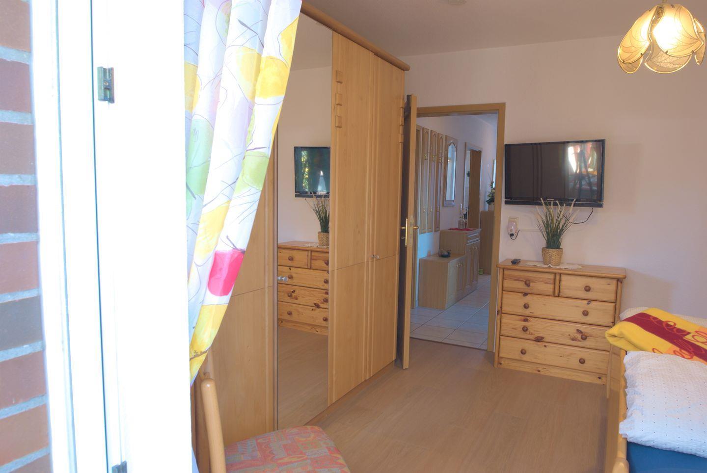 Diese Ferienwohnung ist ideal für eine dreiköpfige Familie oder Eltern mit Baby/Kleinkind. Sie bietet eine wohnliche Atmosphäre mit gemütlichem Wohnraum, Sitzgruppe, Vitrine und TV. Die Wohnküche verfügt über Spülmaschine, Backofen und Mikrowelle. Zwei Schlafzimmer: Doppelbett im Elternzimmer, Einzelbett im zweiten Raum, optional Reisebett. Bad mit Waschmaschine und Trockner. Die große Terrasse mit eigenem Strandkorb lädt zum Entspannen ein. Hunde sind Willkommen.