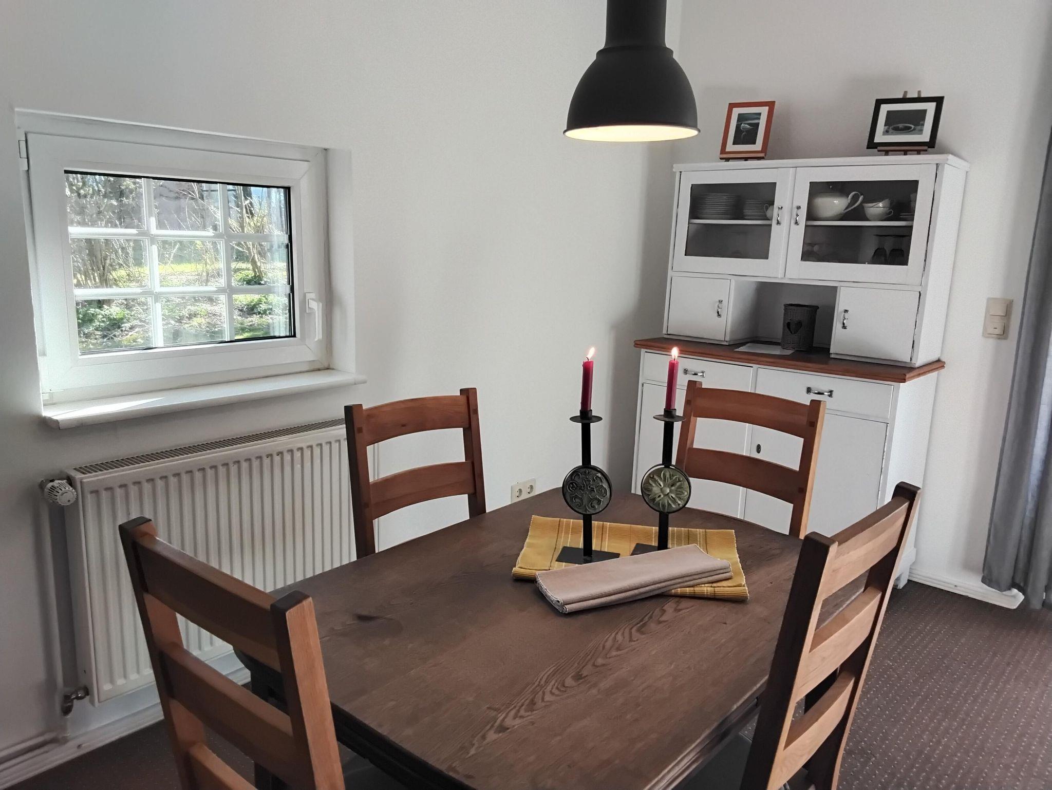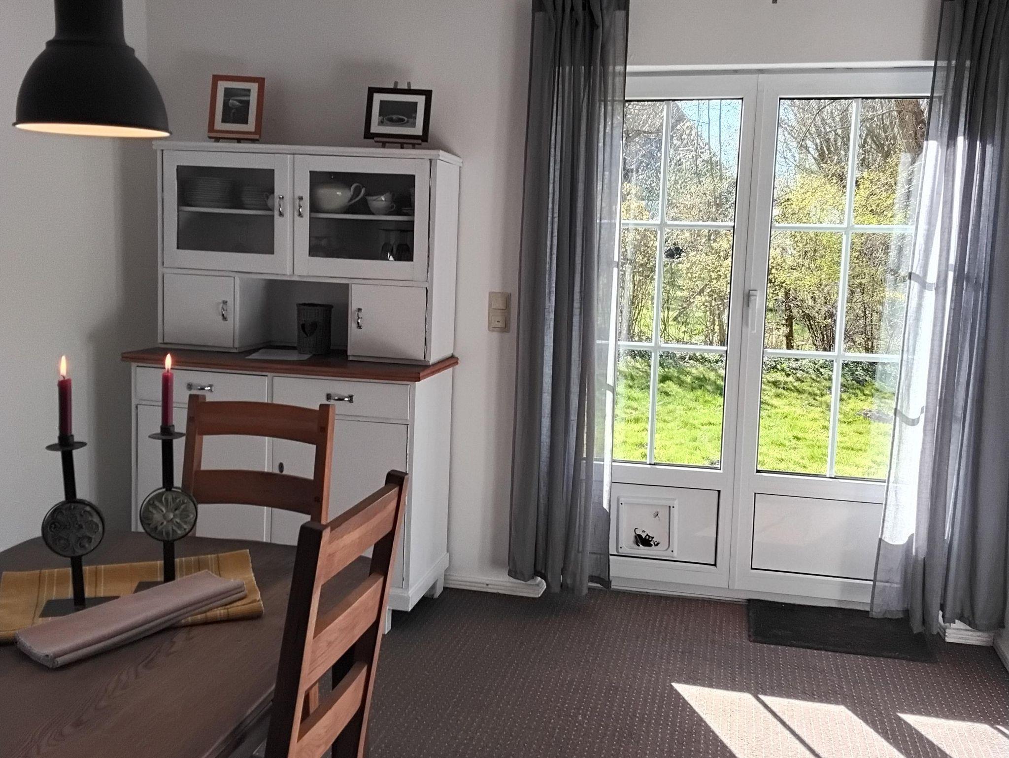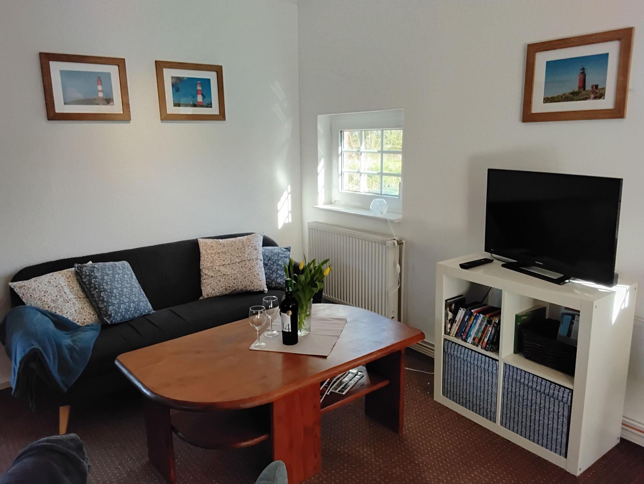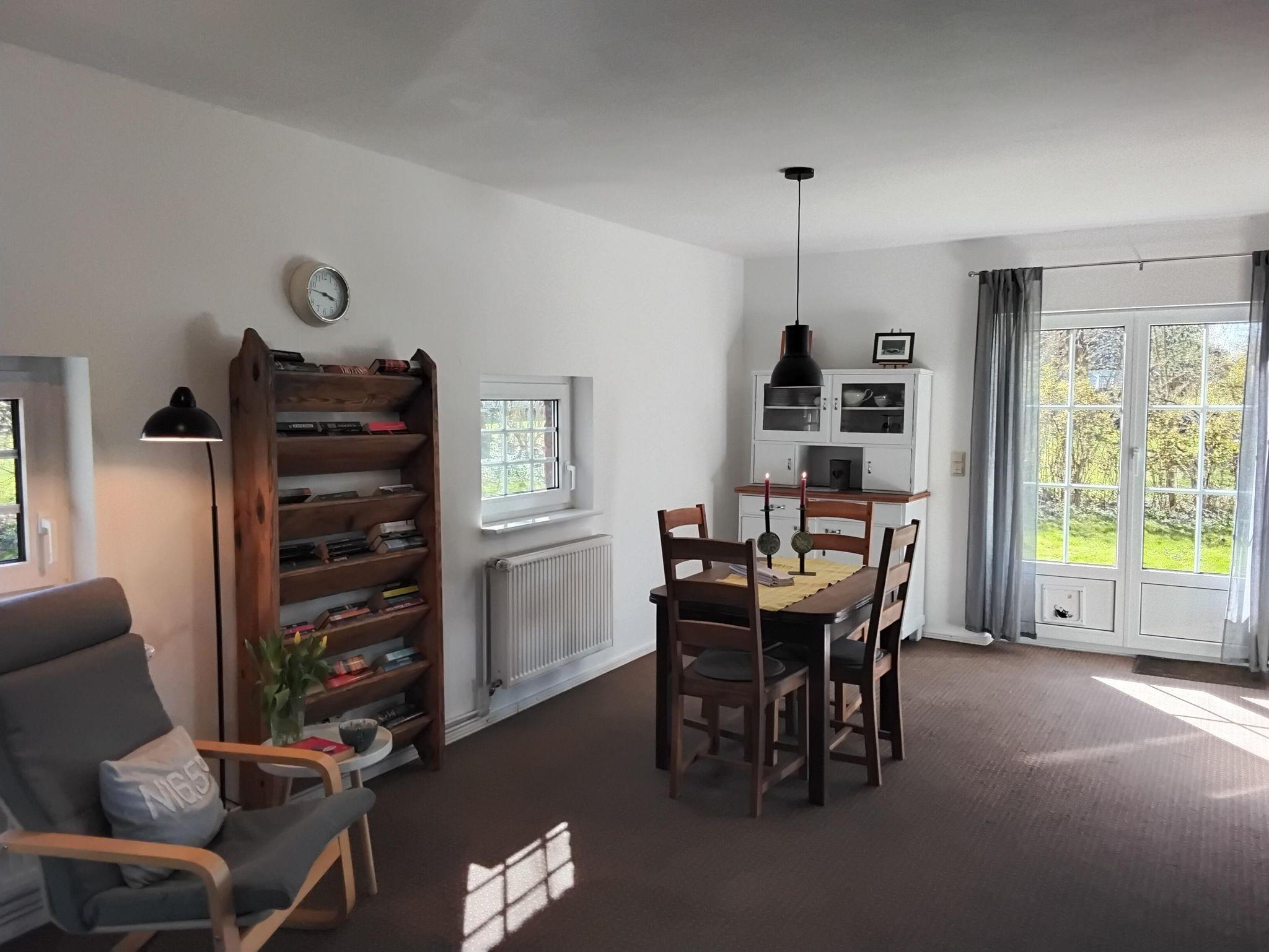 Das Lütte Hus bietet auf einer Fläche von ca. 75 qm Platz für 4 Personen. Im Erdgeschoss befinden sich der Wohn-/Essbereich mit Sofa-Ecke, Essgruppe, SAT-TV,DVD-Player, sowie die in in den Wohnraum integrierte, komplett ausgstattete Küche mit Elektro-Herd, Backofen, Geschirrspüler, Kühl-Gefrierkombination und allem, was man für die Urlaubsküche braucht. Das Badezimmer ist mit einer Dusche und WC ausgestattet und befindet sich ebenfalls im Erdgeschoss. Über eine steile Treppe gelangt man in das Obergeschoß mit den zwei Schlafräumen. Der erste Schlafraum verfügt über ein französisches Bett (1,40 x 2,00 m, mit Fußende) und einer Kommode, der zweite Schlafraum ist mit einem Doppelbett (1,80 x 2,00 m, mit Fußende) einer Kommode und Kleiderschrank eingerichtet. Einen Kinderhochstuhl und ein Kinderbett stellen wir Ihnen kostenlos zur Verfügung.