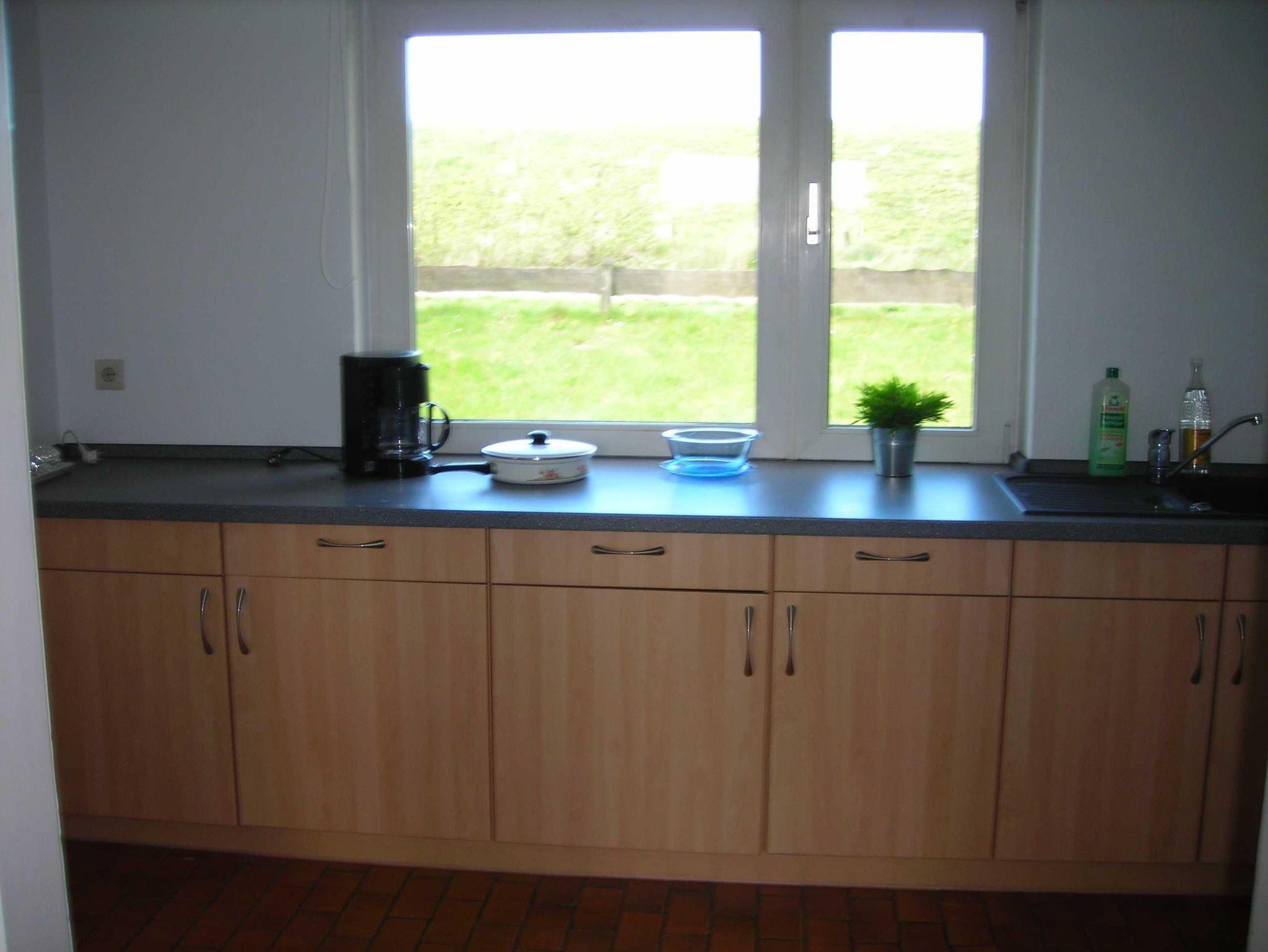 Küche: Einbauküche, 4-Plattenherd mit Backofen, Kühlschrank mit Gefrierfach, Geschirrspülmaschine, Toaster, Kaffeemaschine, Wasserkocher