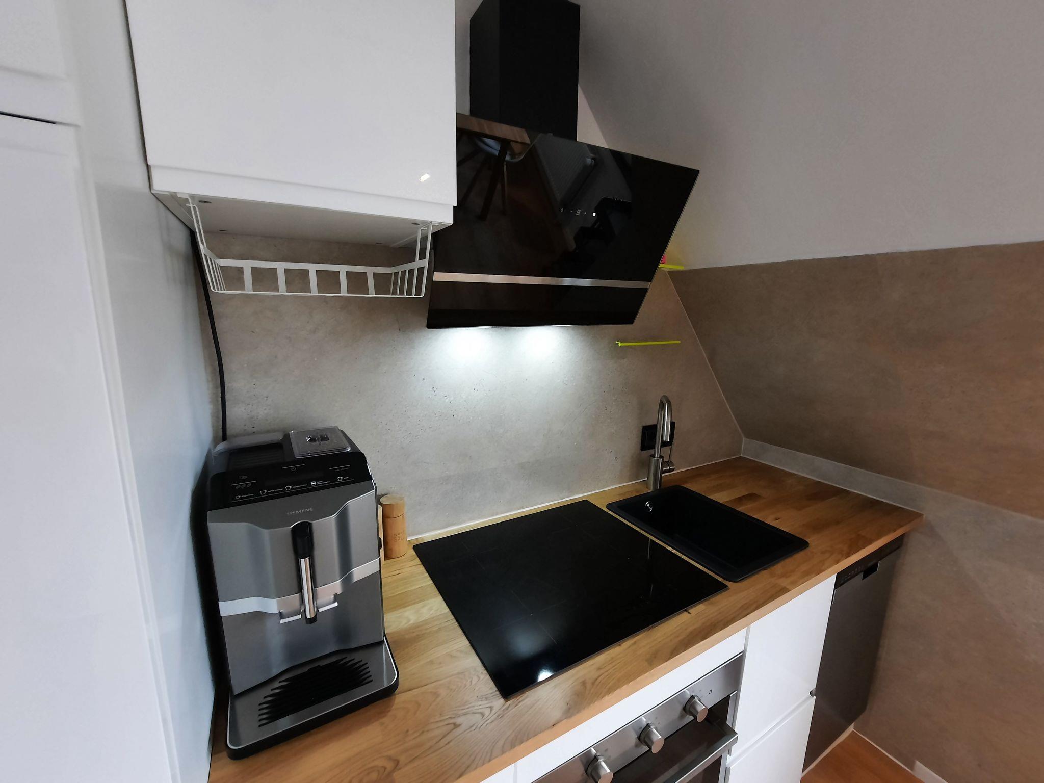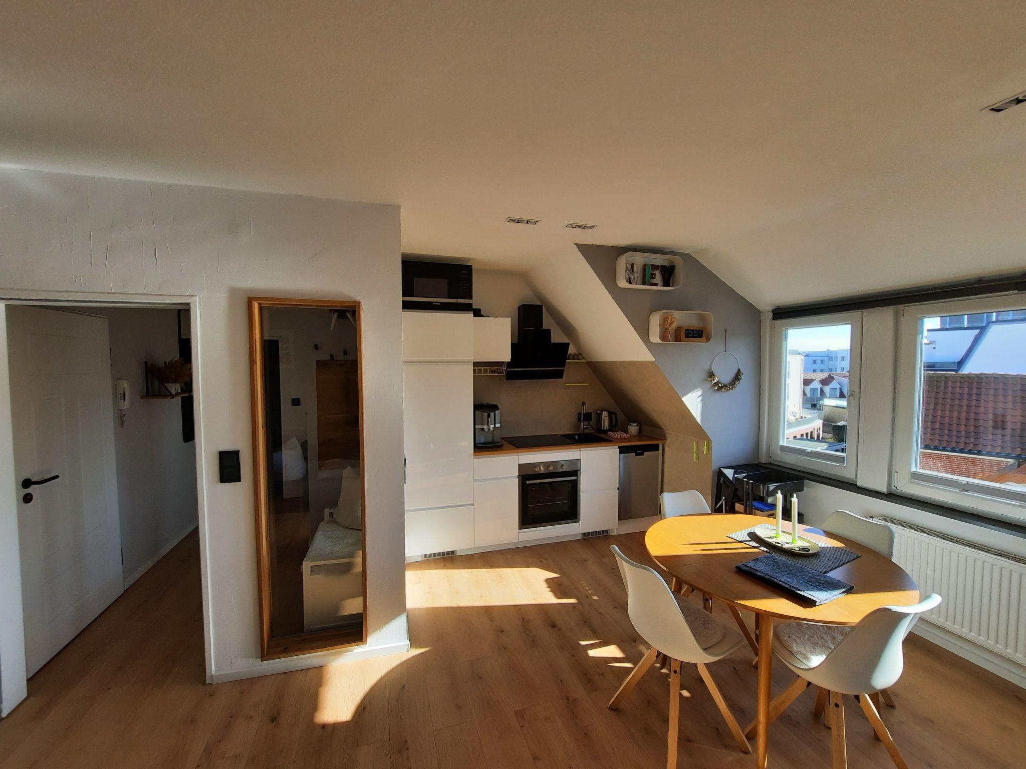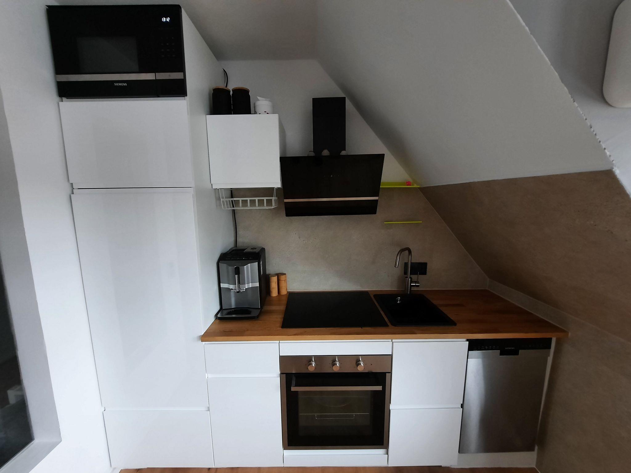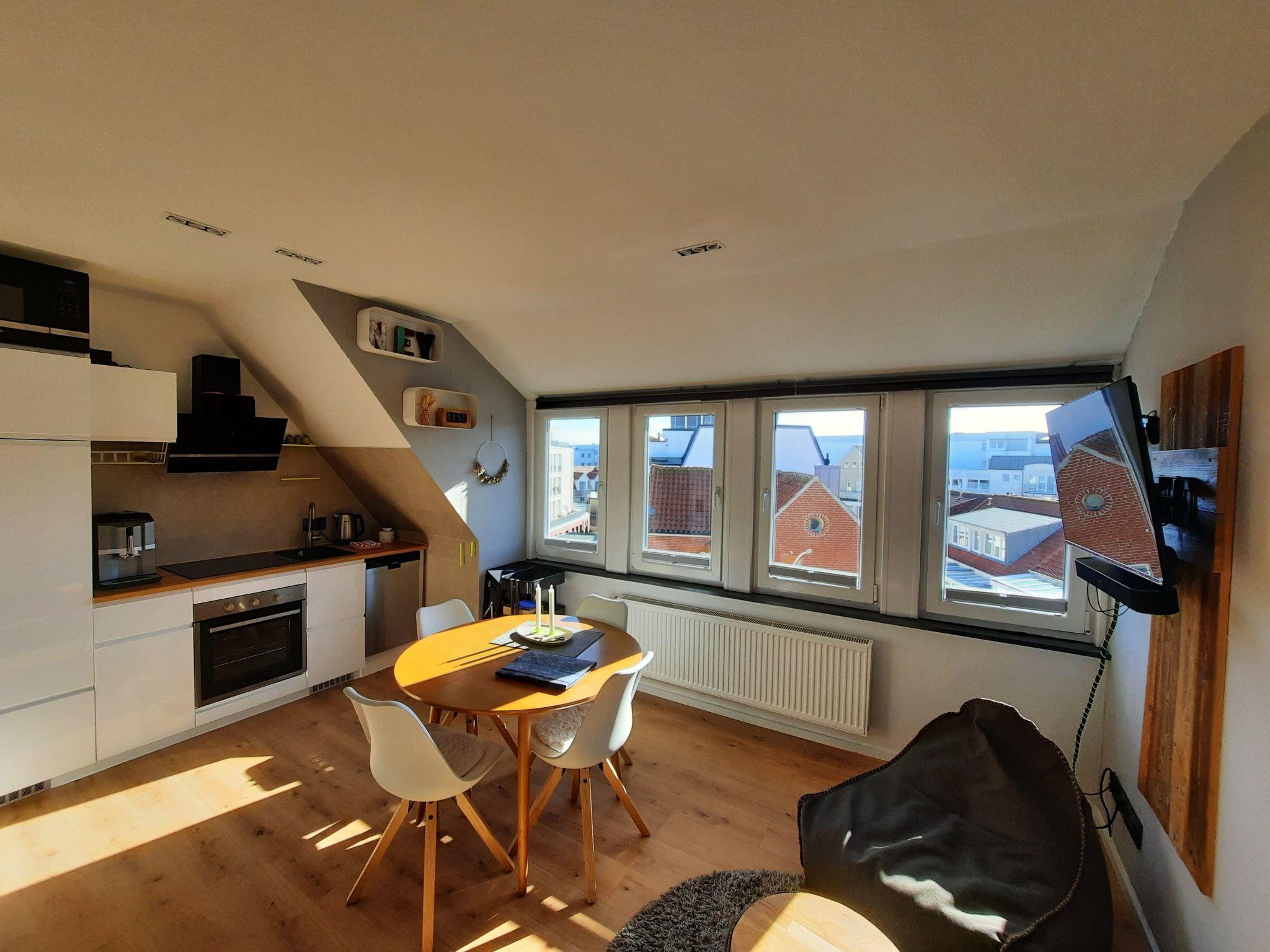 The kitchen is equipped with all necessary utensils such as refrigerator incl. freezer compartment, kettle, microwave with grill function, electric hand blender, toaster, fully automatic coffee machine, oven, induction hob, dishwasher etc.. Appliances mainly from Siemens. From the adjoining dining area you have a beautiful view over the rooftops of Norderney. Enjoy your prepared meals here.