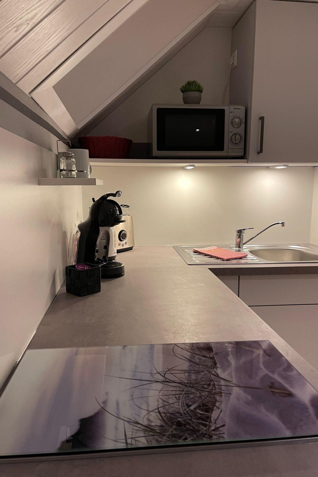 Inside the flat, guests will find a harmonious combination of comfort and functionality. Amenities include a capsule coffee machine, ideal for cosy mornings, and an electric car charging station, which eco-conscious travellers are sure to appreciate. Equipped with a thoughtfully designed living area that is supported by renewable energy and solar power, the flat provides an eco-friendly living experience. A kettle completes the extensive equipment list, so guests can feel right at home.