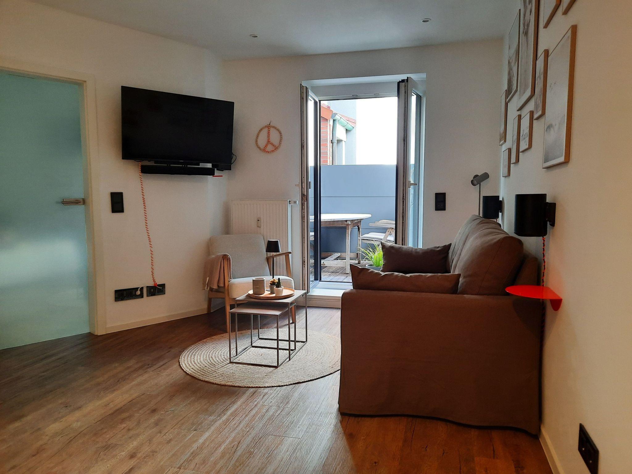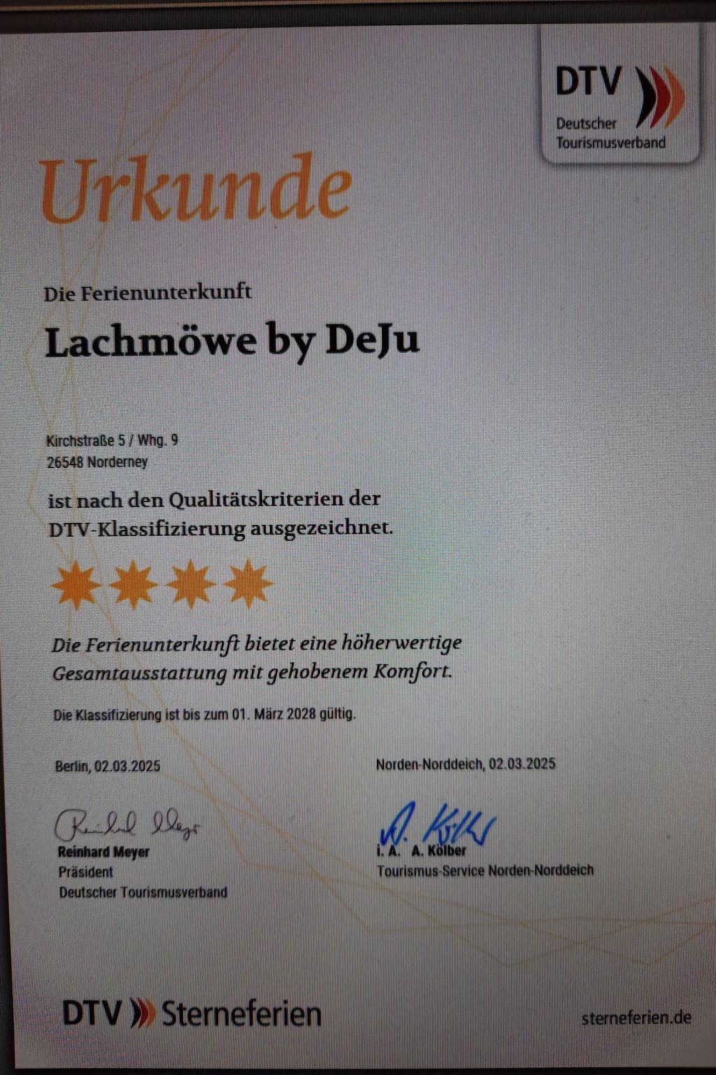 The holiday flat Lachmöwe by DeJu is a cosy 2-room flat on the ground floor with a terrace in Haus Meeresloft. The flat was extensively renovated at the beginning of 2025.
