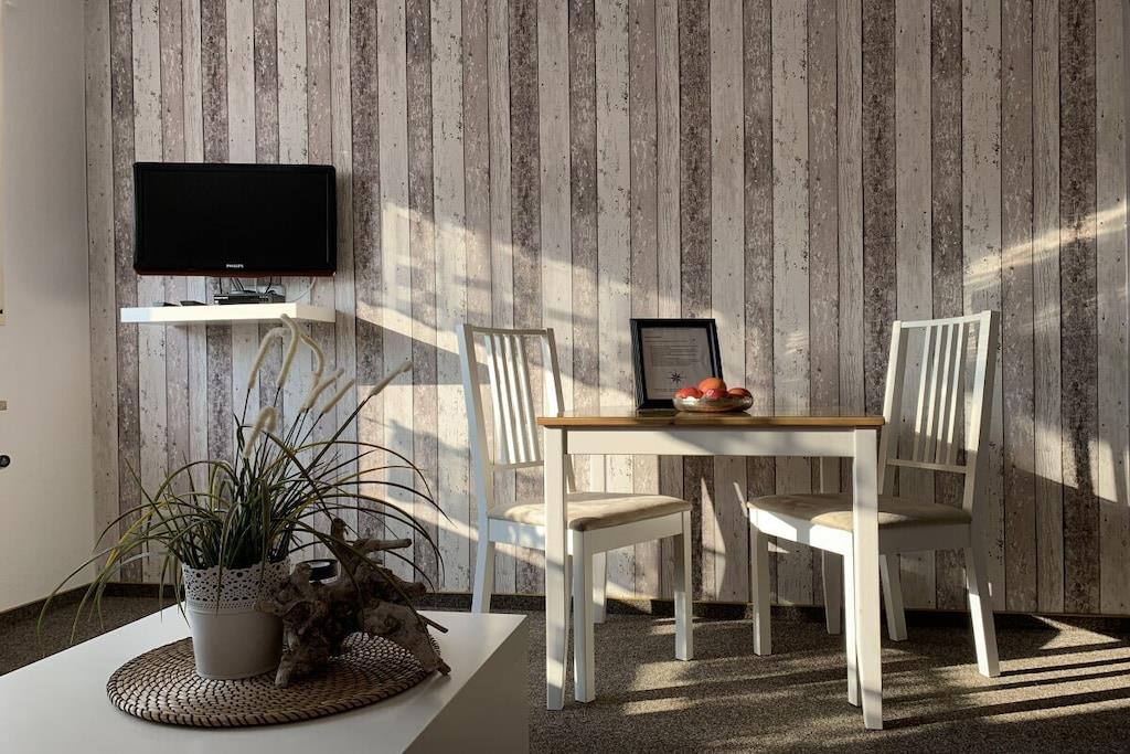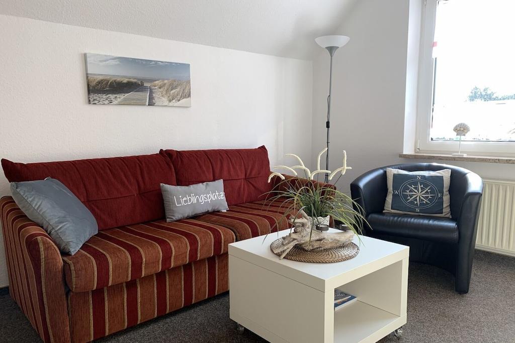 A comfortable holiday apartment awaits you with one bedroom, a living room with a kitchenette, and one bathroom (sleeps up to three guests). Bed linens, towels, and Wi-Fi are included. For more information about our holiday apartments, please visit our website: www.Haus-Romantik-Norderney.de Minimum stay: 7 nights