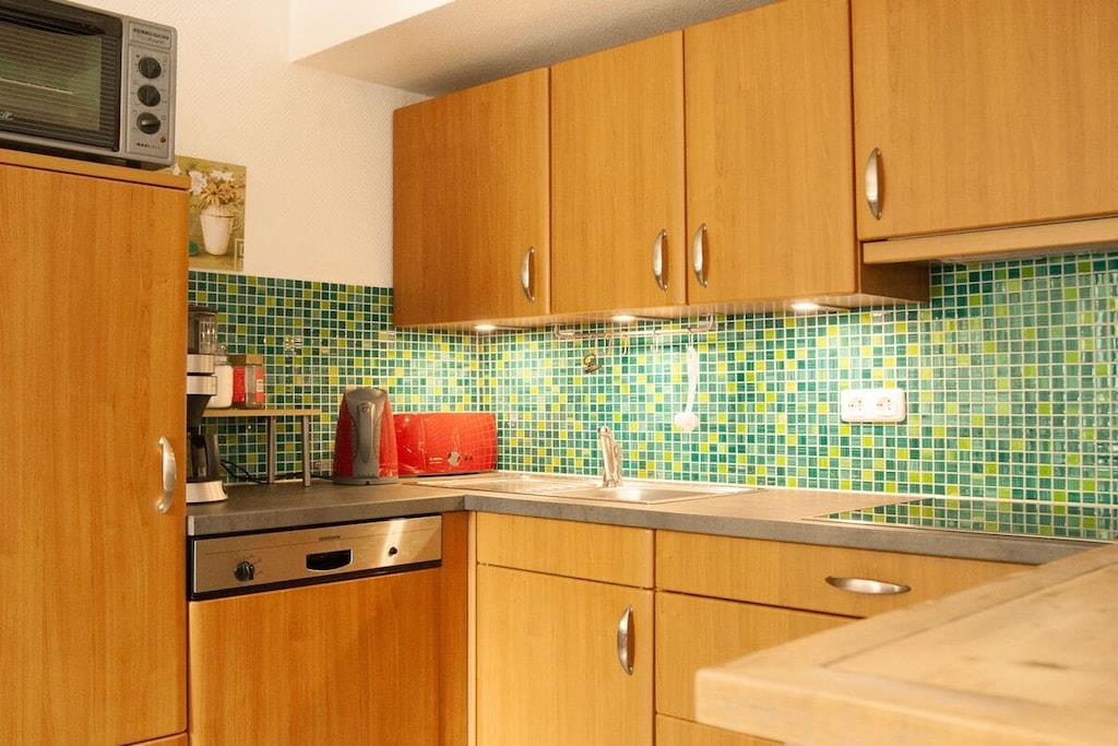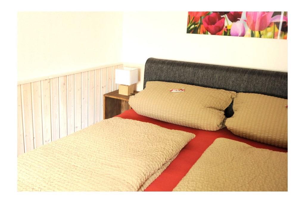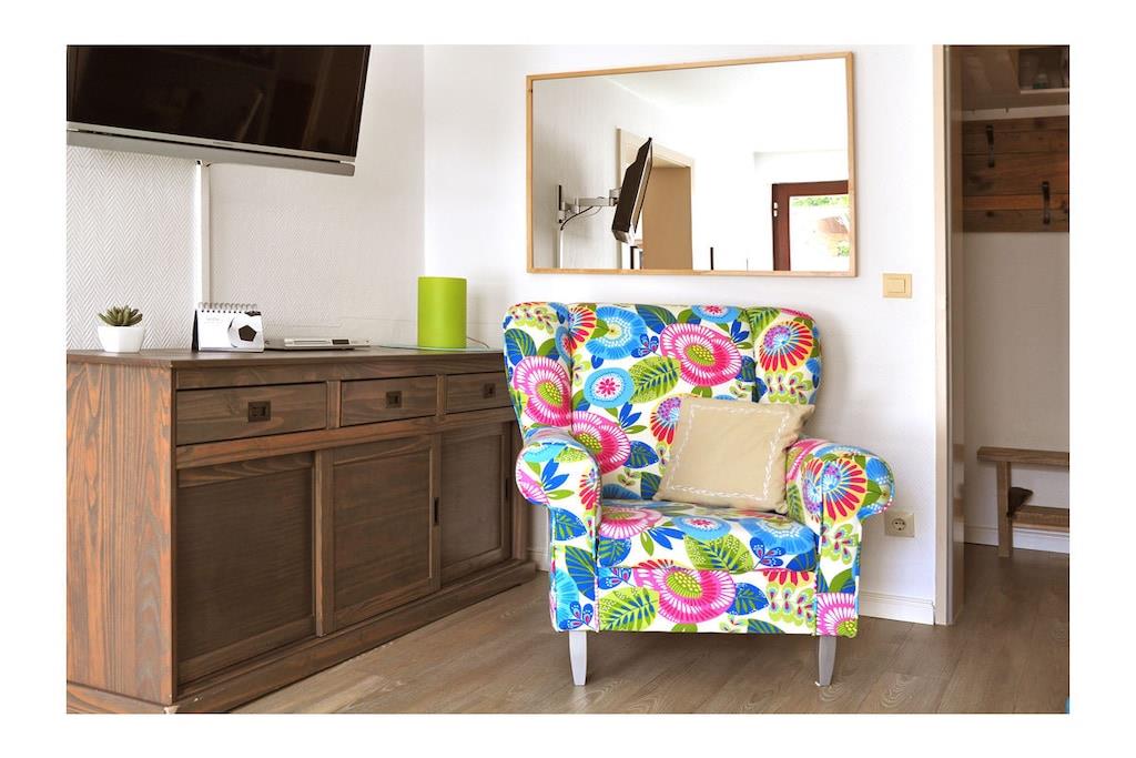 The apartment is on the ground floor and has a spacious terrace. There you can enjoy your breakfast in the morning sun. The apartment was completely renovated in 2010 and has been continuously updated and modernized since then. It features a modern bathroom. Relax in a comfortable box-spring bed. In the living room, a high-quality sofa bed with a slatted frame provides two additional full-size sleeping spaces. The furnishings consist of high-quality basics with charming and individual touches. The apartment has one bedroom, a fully equipped kitchen with a dining area for four people, and a living room with a sofa bed. A television and radio are also provided, as well as free Wi-Fi. A travel cot and a highchair are available for small children upon request. It is suitable for two to four people.