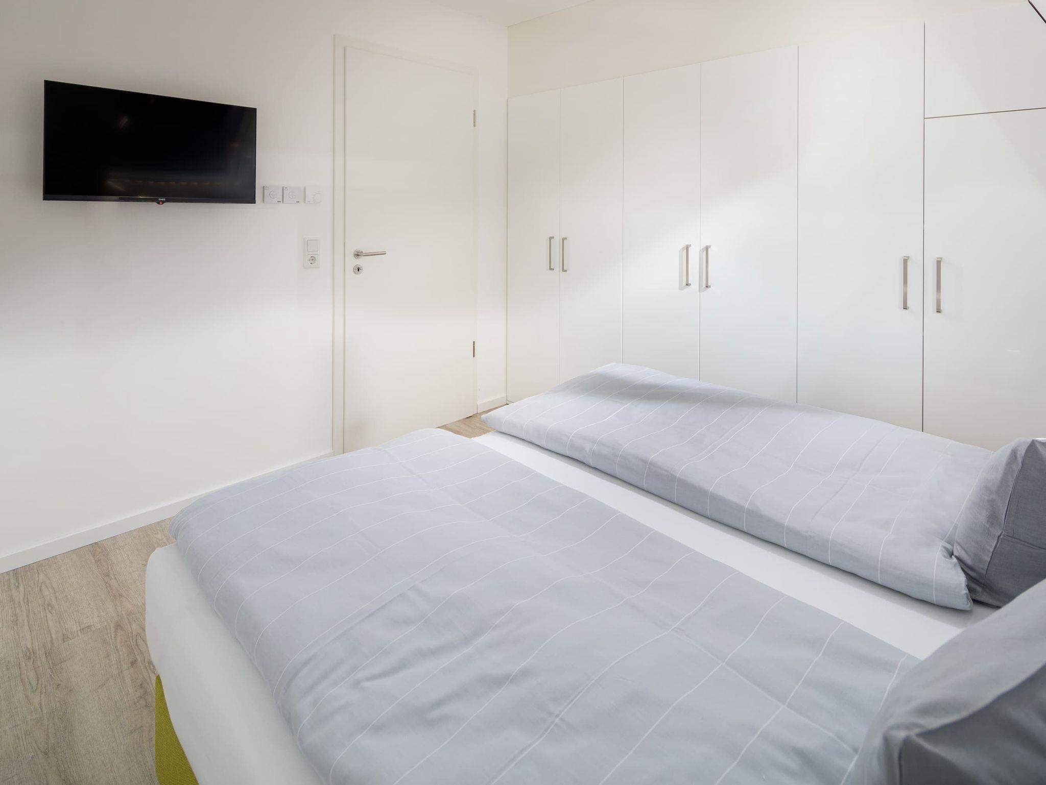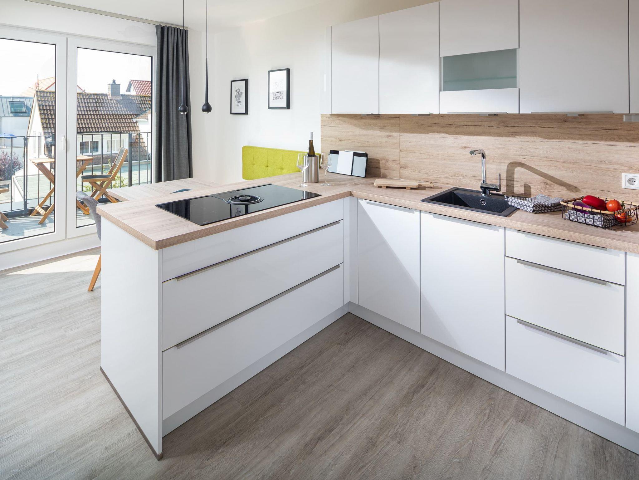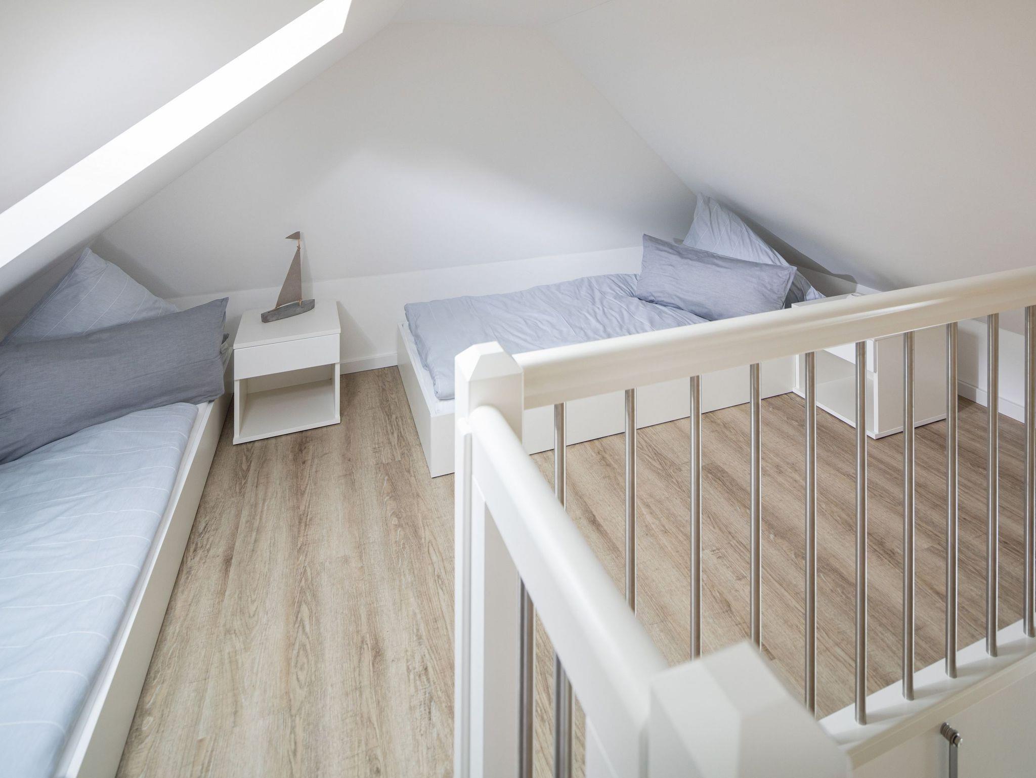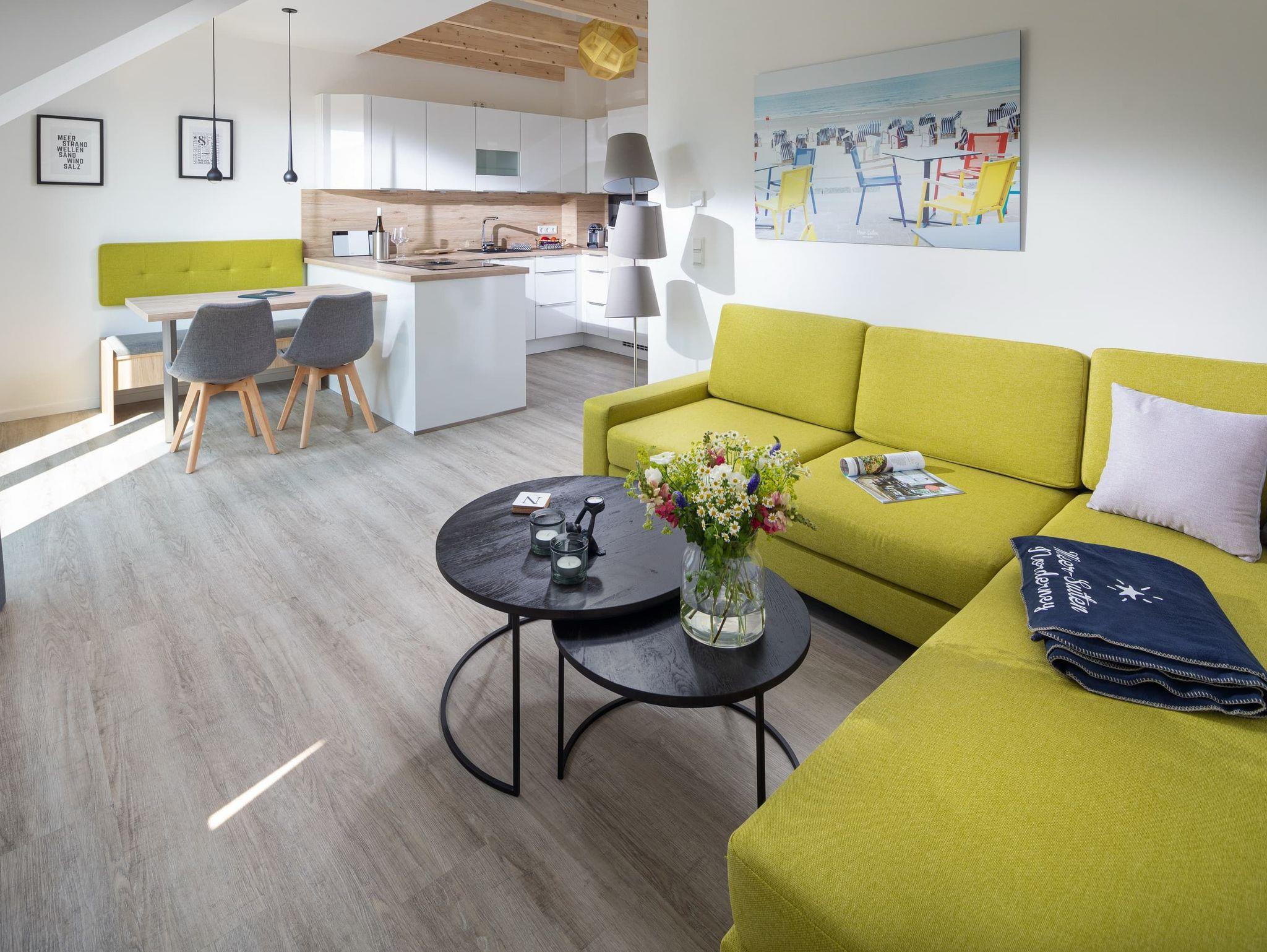 Im Haus gibt es insgesamt 7 Wohneinheiten. Die Meersuite N°6 liegt im 02. OG (Fahrstuhl) und verfügt über ein Schlafzimmer mit Boxspringbett, ein Badezimmer (ebenerdige Dusche) und einen gemütlichen Wohnraum mit Eckcouch, Esstisch, offener Küche und Zugang zum Balkon. Im Wohnraum steht Ihnen der Schlafgiebel mit zwei Einzelbetten als alternative bzw. zweite Schlafgelegenheit zur Verfügung. In dieser Wohnung sind Hunde herzlich willkommen!