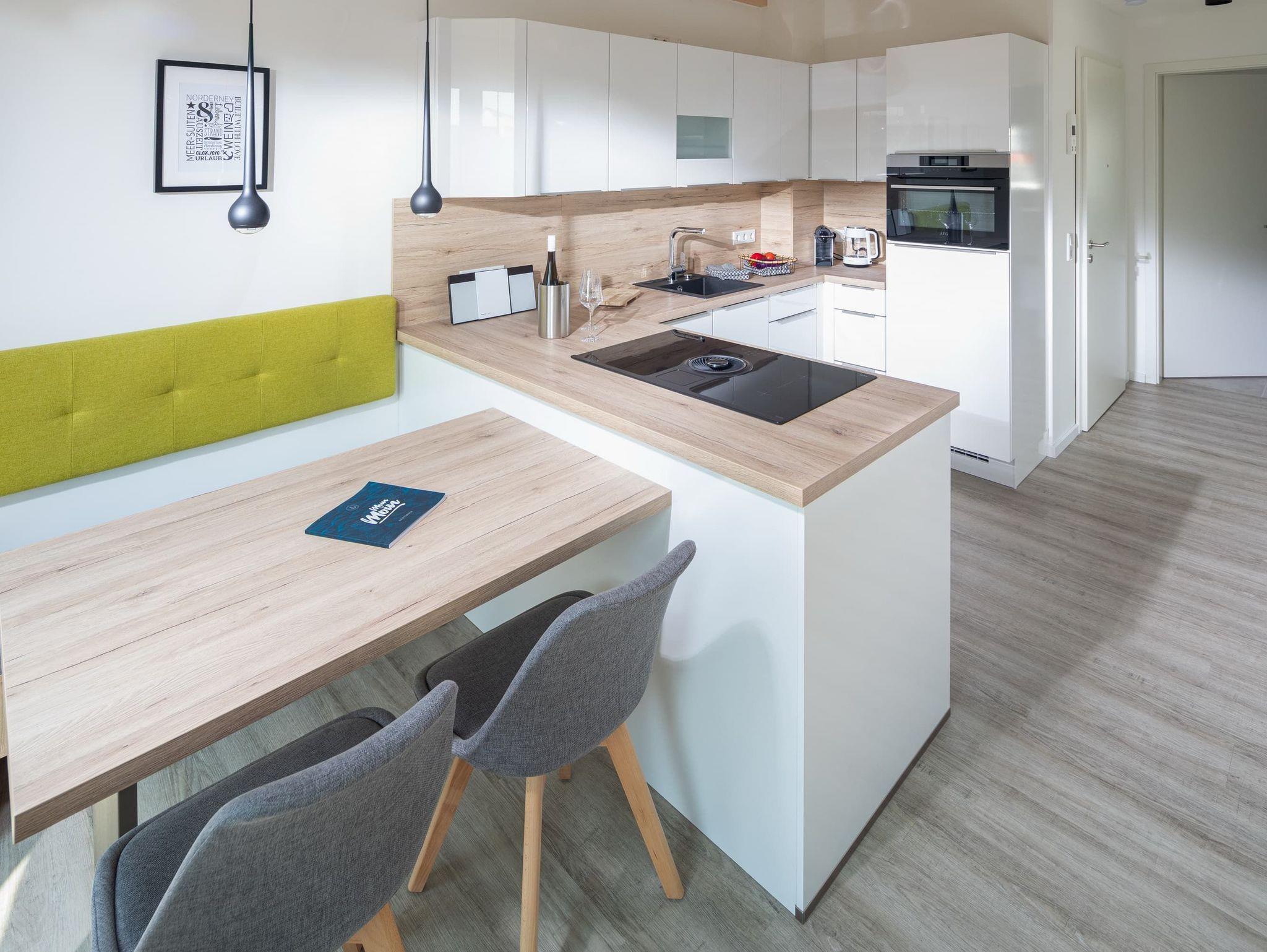 Die Meersuiten sind ein Neubau von 2020, gelegen am Rande der Norderneyer Innenstadt in einer ruhigen Seitenstraße, etwa 400m vom Nordstrand entfernt.