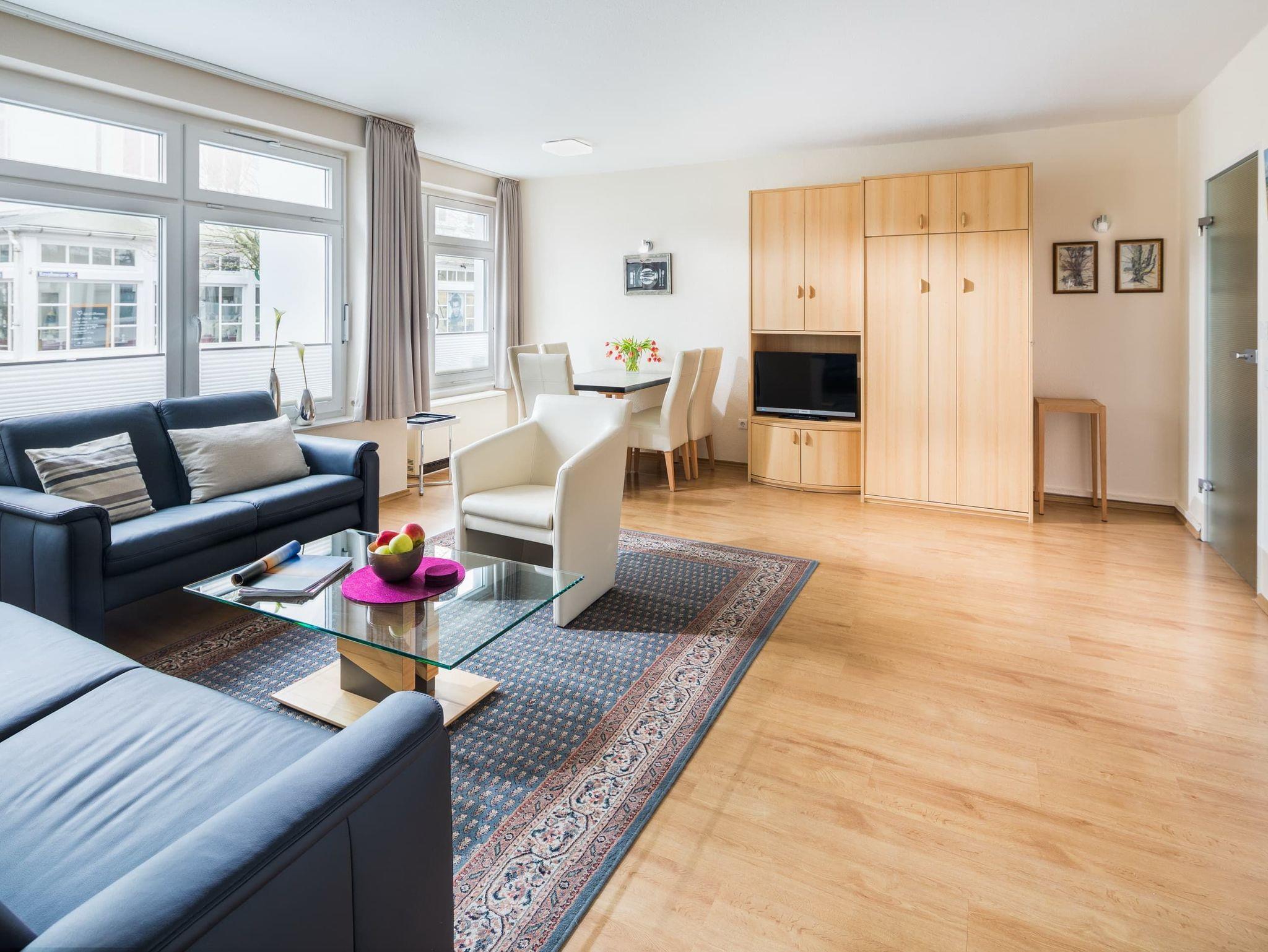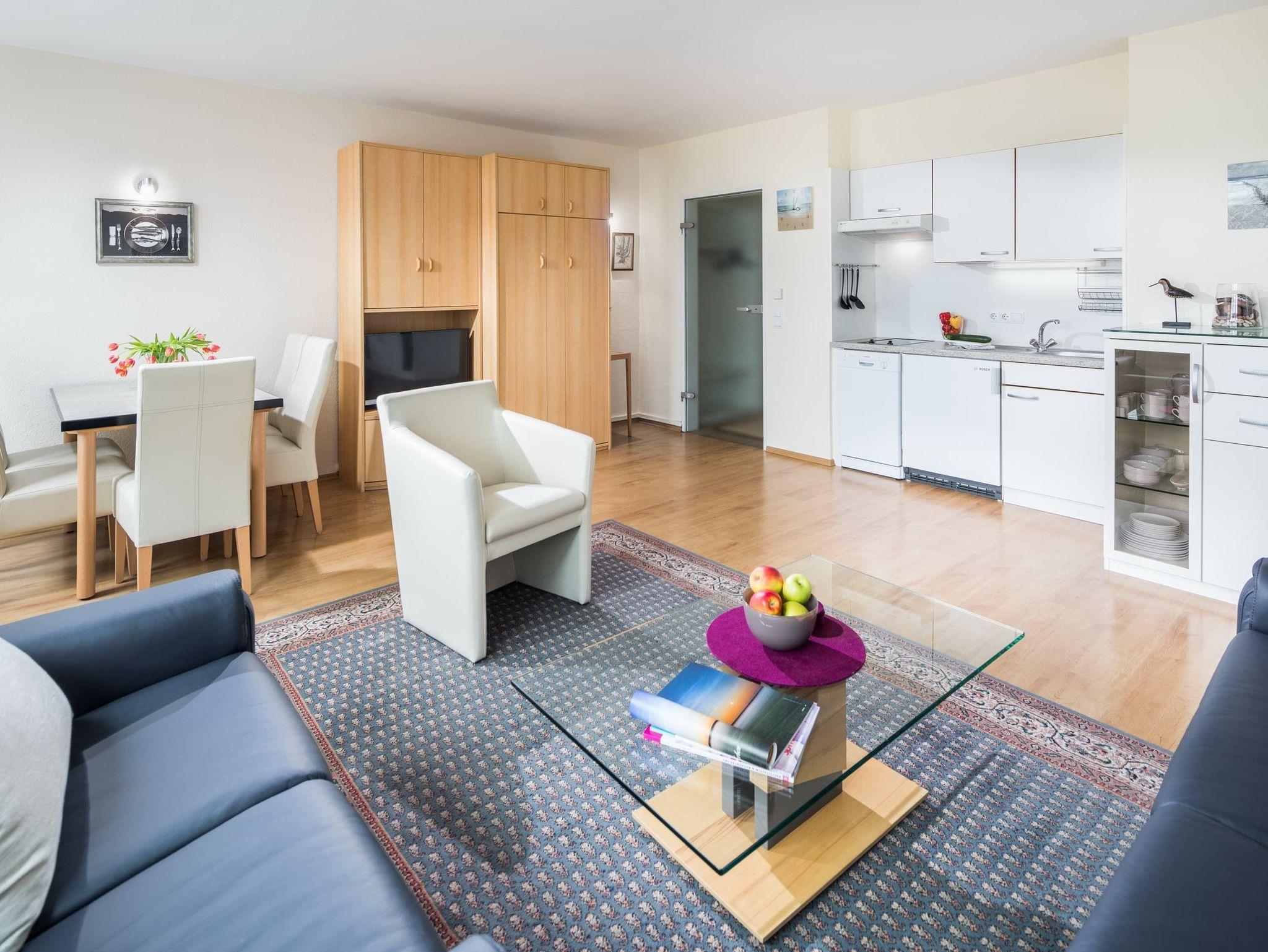 Die Wohnung „Freesenpark“ hat eine Größe von 50qm. Sie liegt nur wenige Minuten Fußweg vom Strand entfernt. Ebenso nah ist der Weg in die Innenstadt mit zahlreichen Restaurants, Geschäften und Einkaufsmöglichkeiten. Das großzügige Wohnzimmer bietet eine Pantry-Küche, einen gemütlichen Essbereich und eine Sitzgruppe für entspannte Abende. Ein Flachbildschirm-Fernseher inkl. Radio sowie kostenfreies WLAN sorgen für die Unterhaltung. Im Wohnraum befindet sich eine alternative Schlafmöglichkeit für eine Einzelperson ? als praktisches und raumsparendes Schrankbett.
