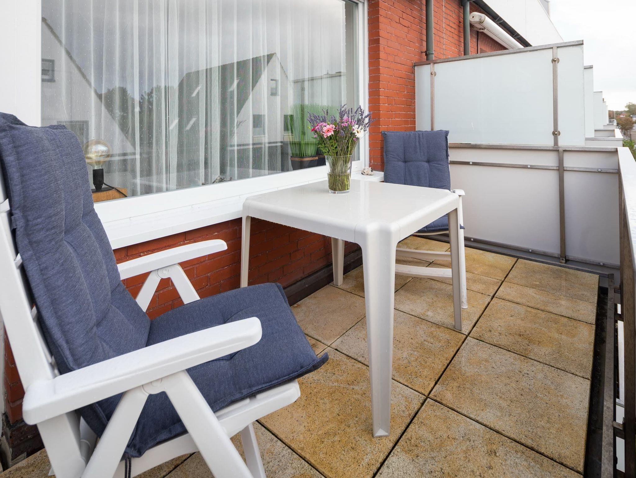 Die Ferienwohnung wurde 2019 komplett saniert. Der helle Wohn- und Schlafraum bietet ein hochwertiges Schrankbett mit integriertem Sofa. Am Esstisch können Sie gemeinsam frühstücken oder im gemütlichen Sessel etwas lesen. Die schöne Fototapete sorgt auch bei Nieselregen für Urlaubsgefühl! Die Küche bietet alle gängigen Elektrogeräte und wird auch Kochliebhabern gerecht. Vom Wohn- und Schlafraum aus gelangen Sie auf den geräumigen Balkon, von dem aus Sie die Dünen des Nordstrandes sehen können. Nur 50m sind es bis zum beliebten Januskopf mit Surfcafé und Cornelius.