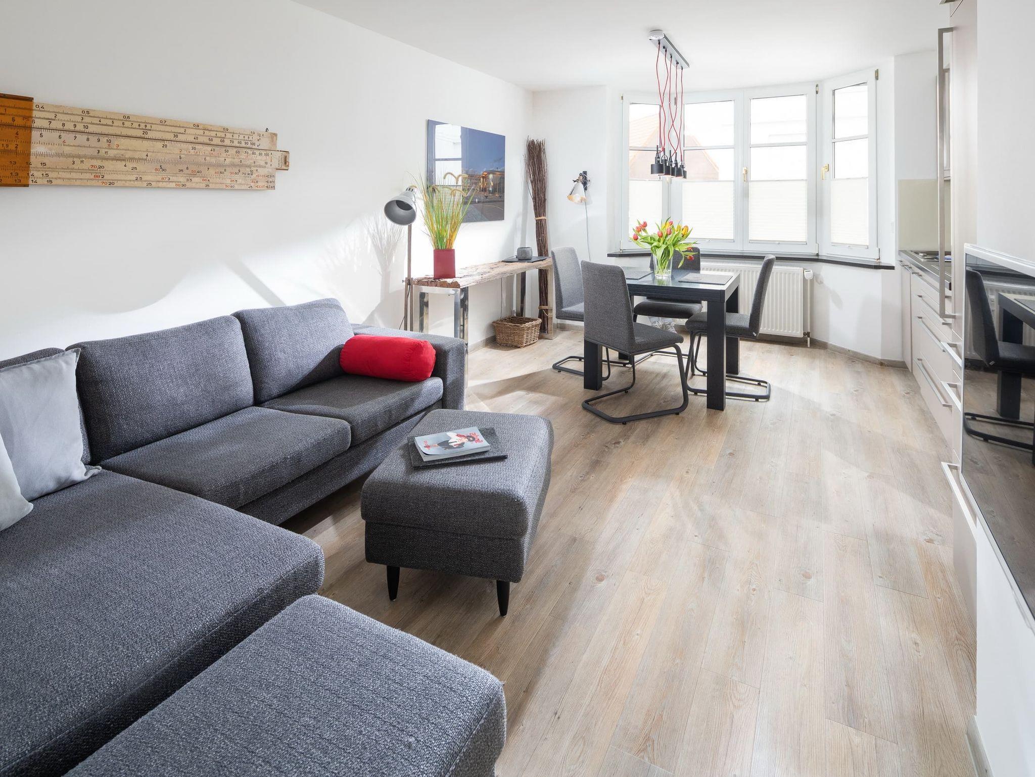 Das Jugendstil-Haus ?Haus Nordsee? wurde 1990 nach alten Bildern aufwendig, liebevoll und detailgetreu kernsaniert. Durch die antike Doppelflügeltür öffnet sich der Blick auf das Treppenhaus mit Marmorboden und Marmortreppe und einem Treppengeländer mit kunstvollem Schmiedegitter. Die 50qm große Wohnung bietet einen gemütlichen Wohn- und Essbereich mit großem Erkerfenster und zwei Schlafzimmern (1x 1,60 | 1x 1,80) sowie ein hochwertiges Bad ? passend zum Jugendstil-Ambiente. Die Wohnung ist modern und elegant eingerichtet und bietet 4 Personen ausreichend Platz und eine gemütliche Umgebung. Im Keller befindet sich eine Waschmaschine und ein Trockner, die über Münzautomaten betrieben werden.