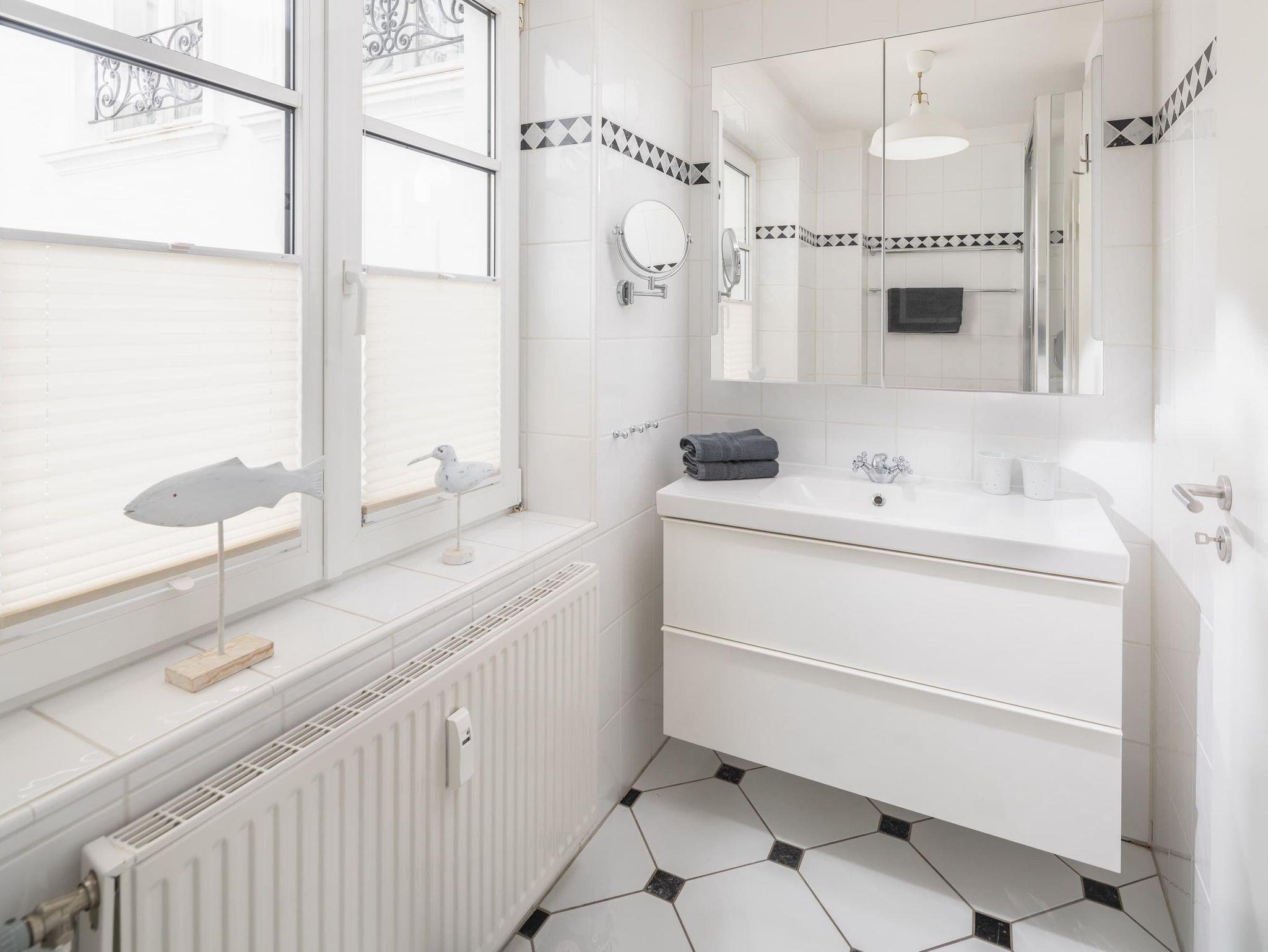 Das Jugendstil-Haus „Haus Nordsee“ wurde 1990 nach alten Bildern aufwendig, liebevoll und detailgetreu kernsaniert. Durch die antike Doppelflügeltür öffnet sich der Blick auf das Treppenhaus mit Marmorboden und Marmortreppe und einem Treppengeländer mit kunstvollem Schmiedegitter. Die 50qm große Wohnung bietet einen gemütlichen Wohn- und Essbereich mit großem Erkerfenster und zwei Schlafzimmern (1x 1,60 | 1x 1,80) sowie ein hochwertiges Bad ? passend zum Jugendstil-Ambiente. Die Wohnung ist modern und elegant eingerichtet und bietet 4 Personen ausreichend Platz und eine gemütliche Umgebung. Im Keller befindet sich eine Waschmaschine und ein Trockner, die über Münzautomaten betrieben werden.