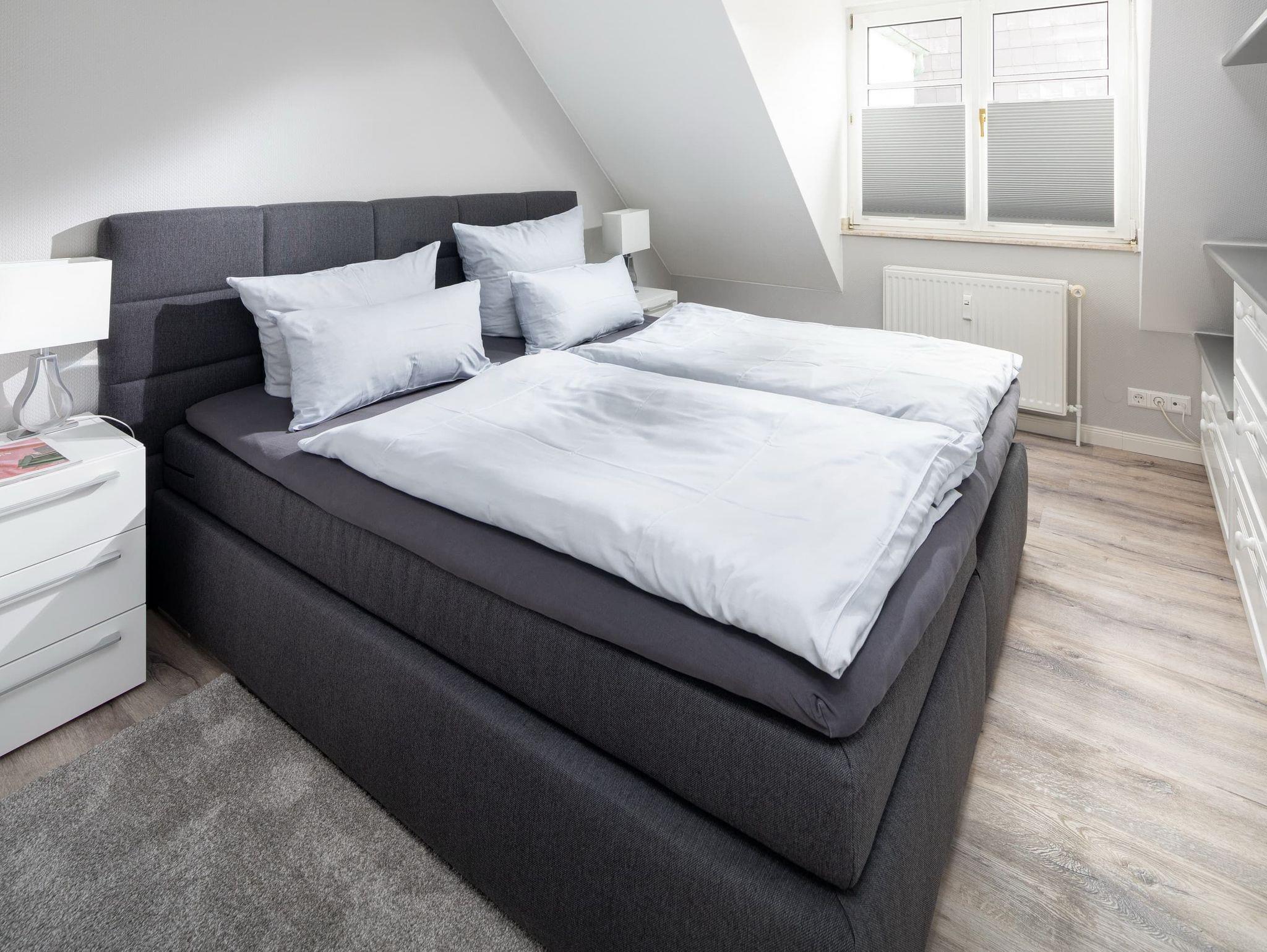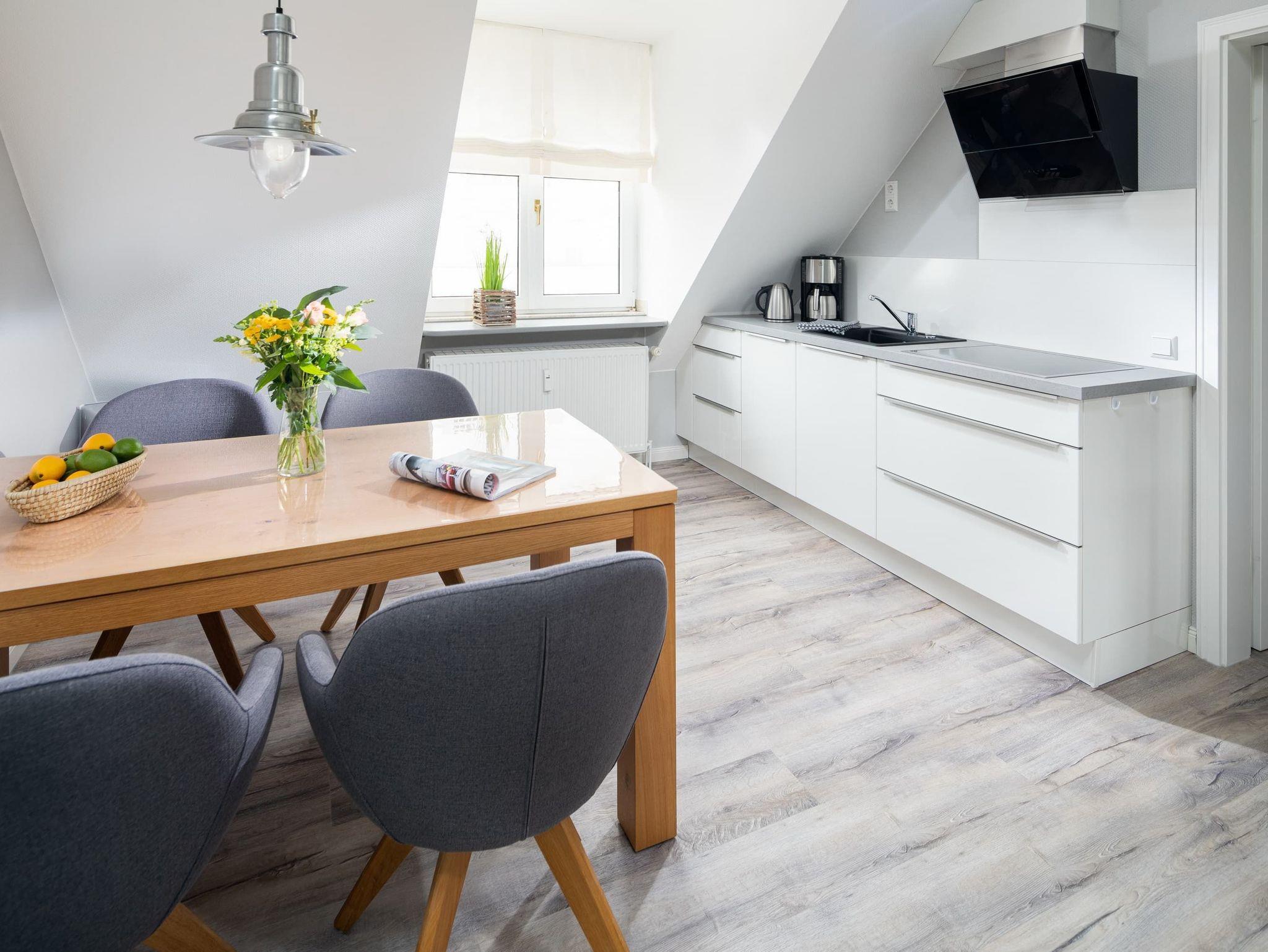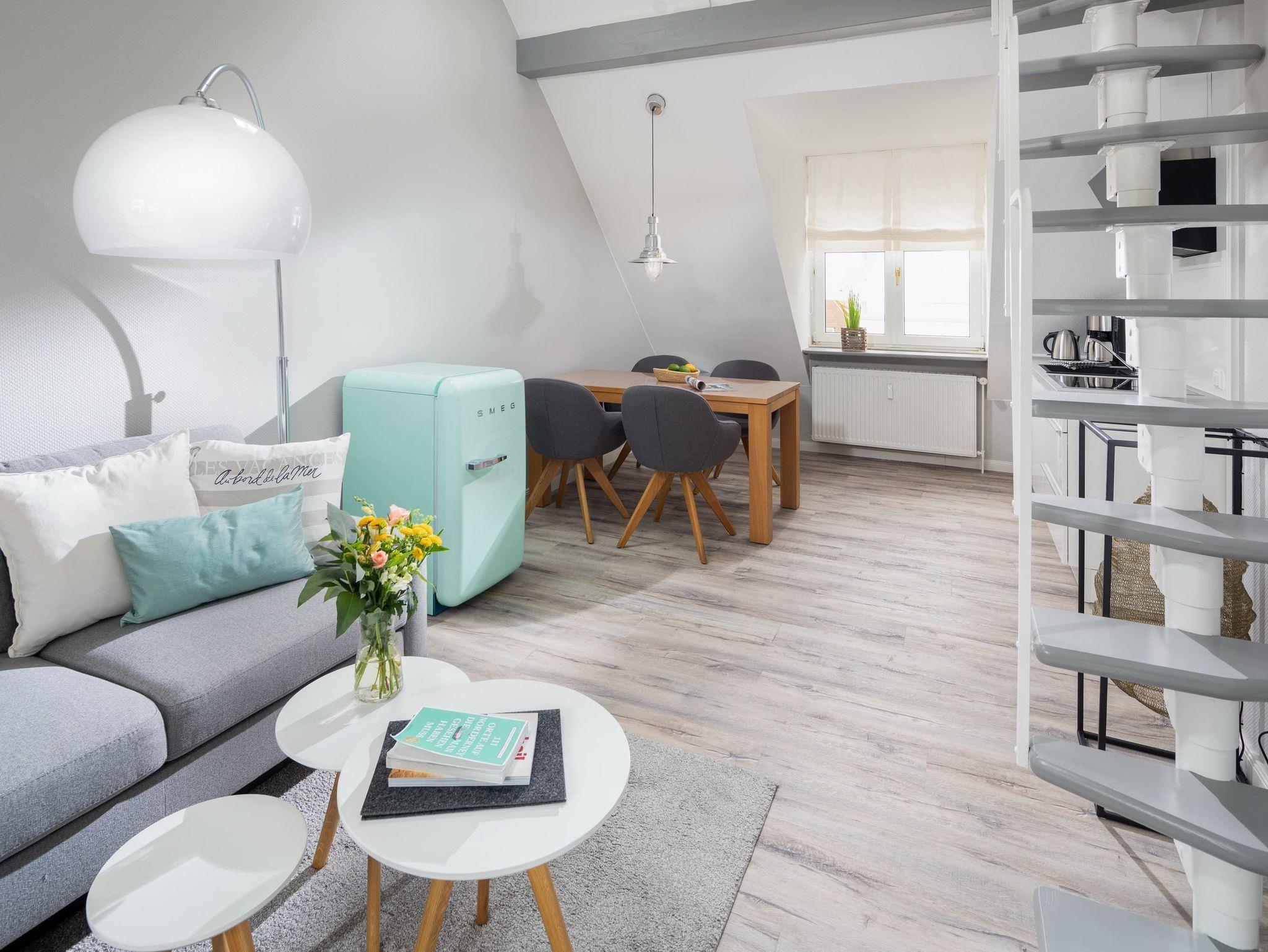 Die gemütliche Wohnung liegt in der Friedrichstraße, nur 50m von der Nordsee und der beliebten Milchbar entfernt und wurde Anfang 2020 saniert. Auf 42qm bietet sie Platz für bis zu 4 Personen. Im Wohnzimmer finden Sie neben der gemütlichen Couch auch einen Esstisch für 4 Personen und eine Küchenzeile. Über eine Platzspartreppe gelangen Sie ausserdem in das Highlight der Wohnung ? den gemütlichen Schlaf- oder Spielgiebel. Hier ist neben dem 1,40m breiten Bett Platz zum Entspannen oder Spielen. Das separate Schlafzimmer hat ein Doppelbett und reichlich Stauraum im Kleiderschrank. Auch dort finden Sie einen TV. Das Badezimmer ist weiß gefliest und hat eine Dusche. Perfekter Ausgangspunkt für einen Urlaub zu zweit oder eine kleine Familie. Die Wohnung ist beschränkt für die Nutzung von 3 Erwachsenen oder alternativ 2 Erwachsenen und 2 Kindern.