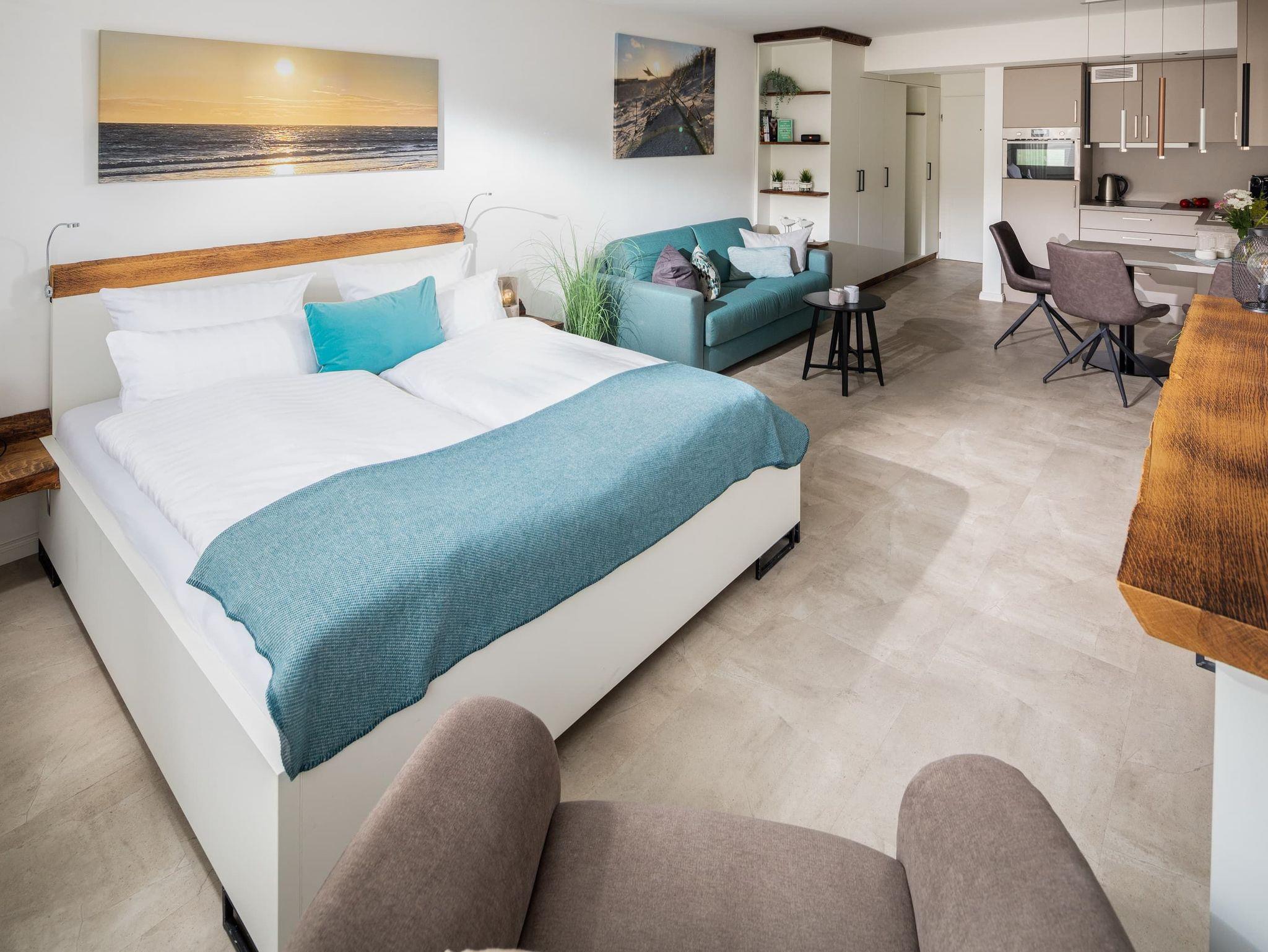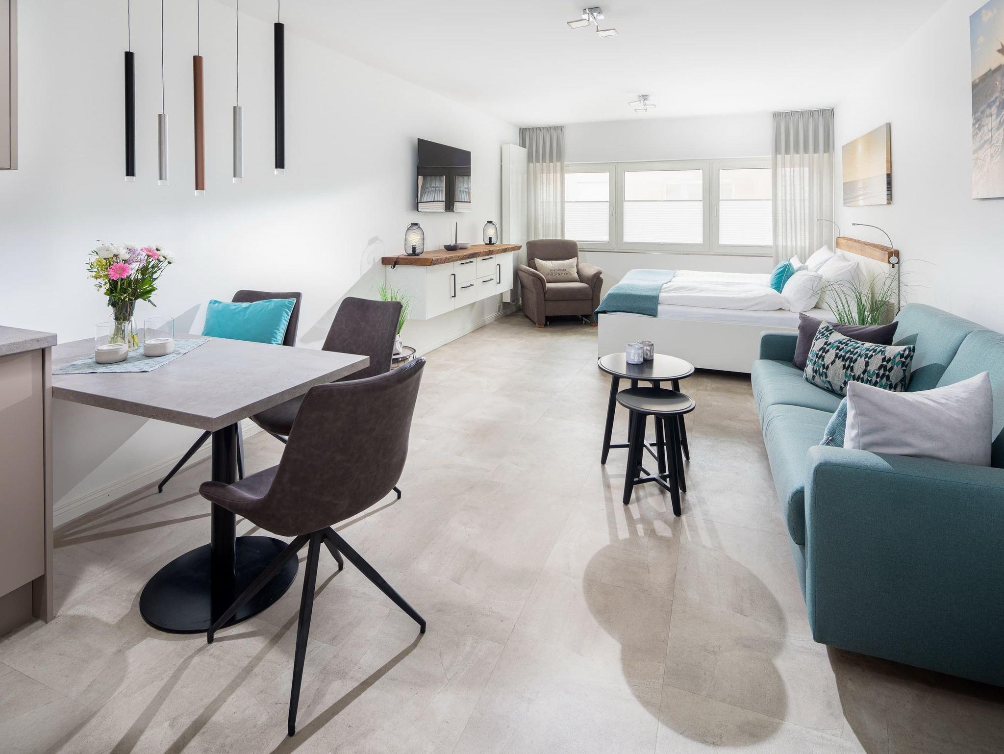 Die „Lüttje Ney“ heißt Sie schon beim Eintreten herzlich willkommen. Die 40 qm große Whg wurde 2020 hochwertig und liebevoll saniert. Sie bietet einen modernen und gemütlichen Wohn-und Schlafraum mit einem 1,80m großen Bett und zwei 155 x 220m großen Bettdecken und insgesamt 4 Kopfkissen zum Wohlfühlen. Ein gemütlicher Relaxsessel mit ausziehbarer Fußstütze und ein bequemes Sofa laden zum Lesen oder Fernsehen (Smart-TV) ein.