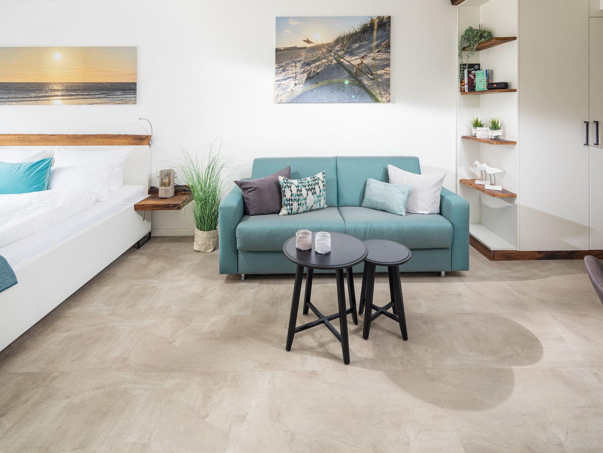 Die ?Lüttje Ney? heißt Sie schon beim Eintreten herzlich willkommen. Die 40 qm große Whg wurde 2020 hochwertig und liebevoll saniert. Sie bietet einen modernen und gemütlichen Wohn-und Schlafraum mit einem 1,80m großen Bett und zwei 155 x 220m großen Bettdecken und insgesamt 4 Kopfkissen zum Wohlfühlen. Ein gemütlicher Relaxsessel mit ausziehbarer Fußstütze und ein bequemes Sofa laden zum Lesen oder Fernsehen (Smart-TV) ein.