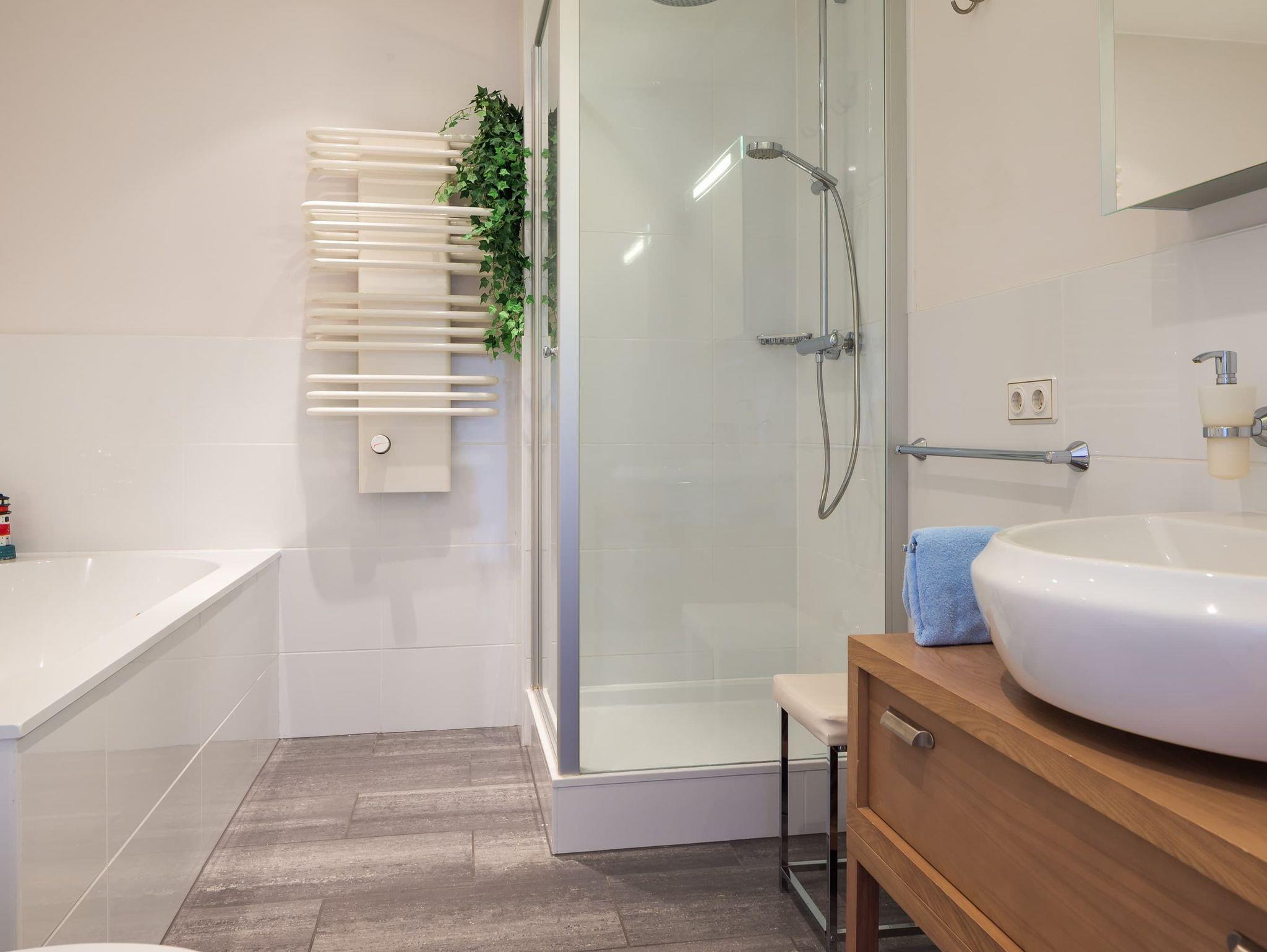 Die geräumige 85m² Maisonette Wohnung mit einer 12m² Terrasse im 1. OG, sowie einer 42m² Dach-Terrasse bietet großzügigen Platz für bis zu 4 Personen. Ein Schlafzimmer verfügt über ein Doppelbett und das zweite über ein komfortables 1,40 Kingsize Schrankbett.