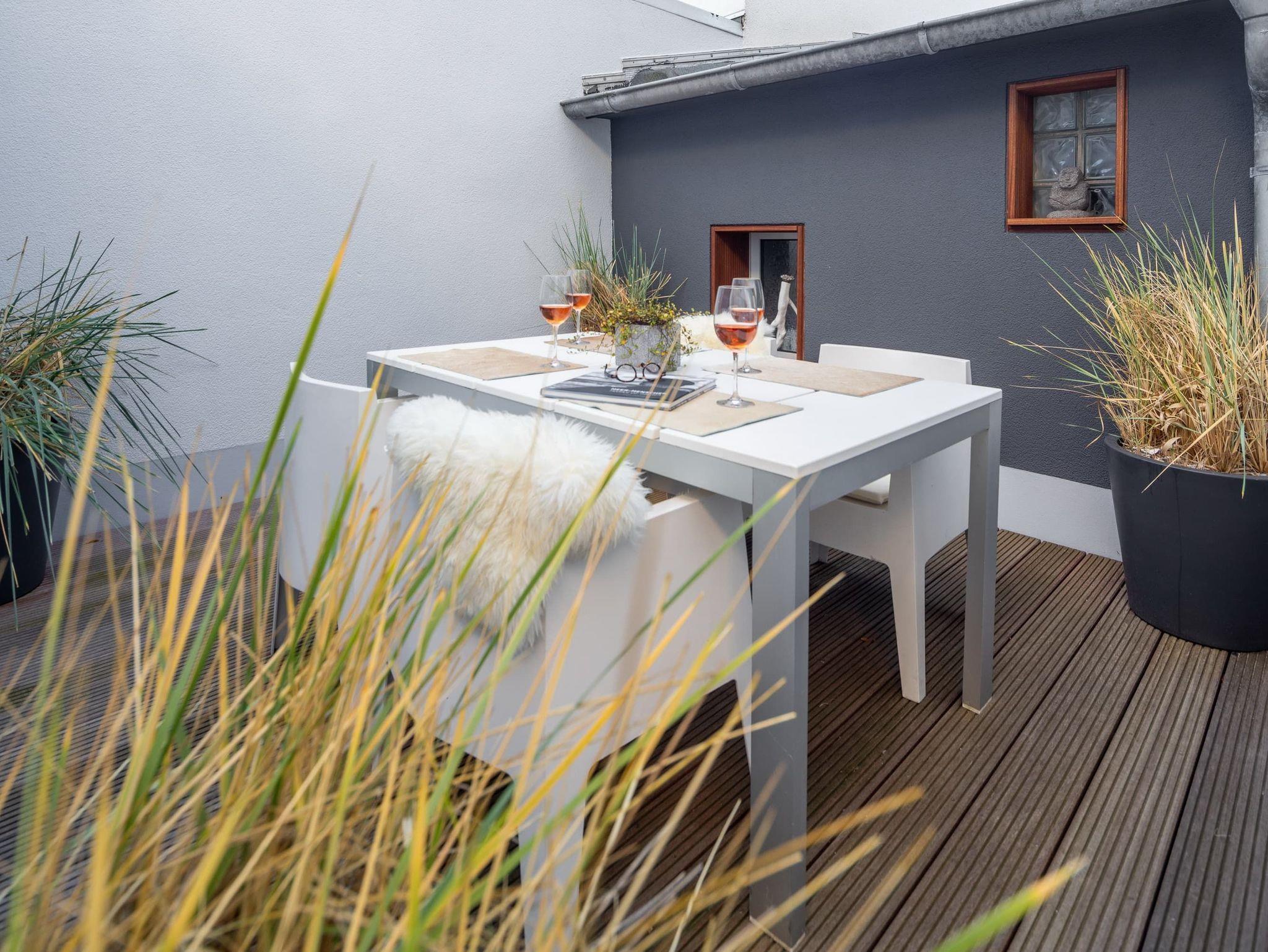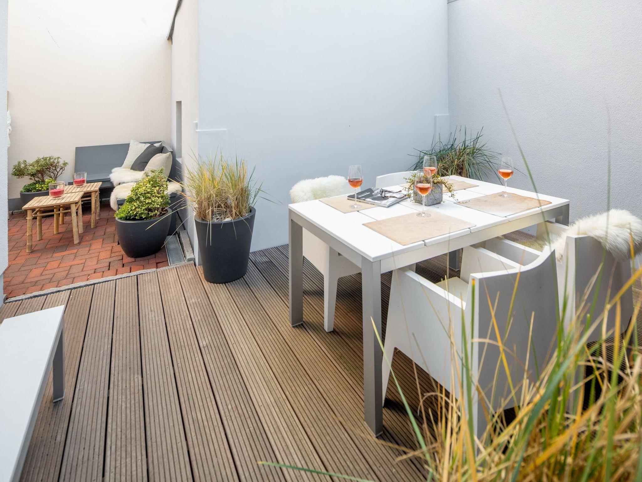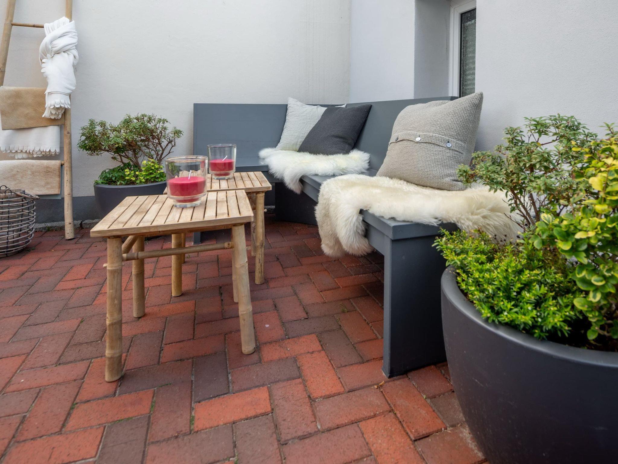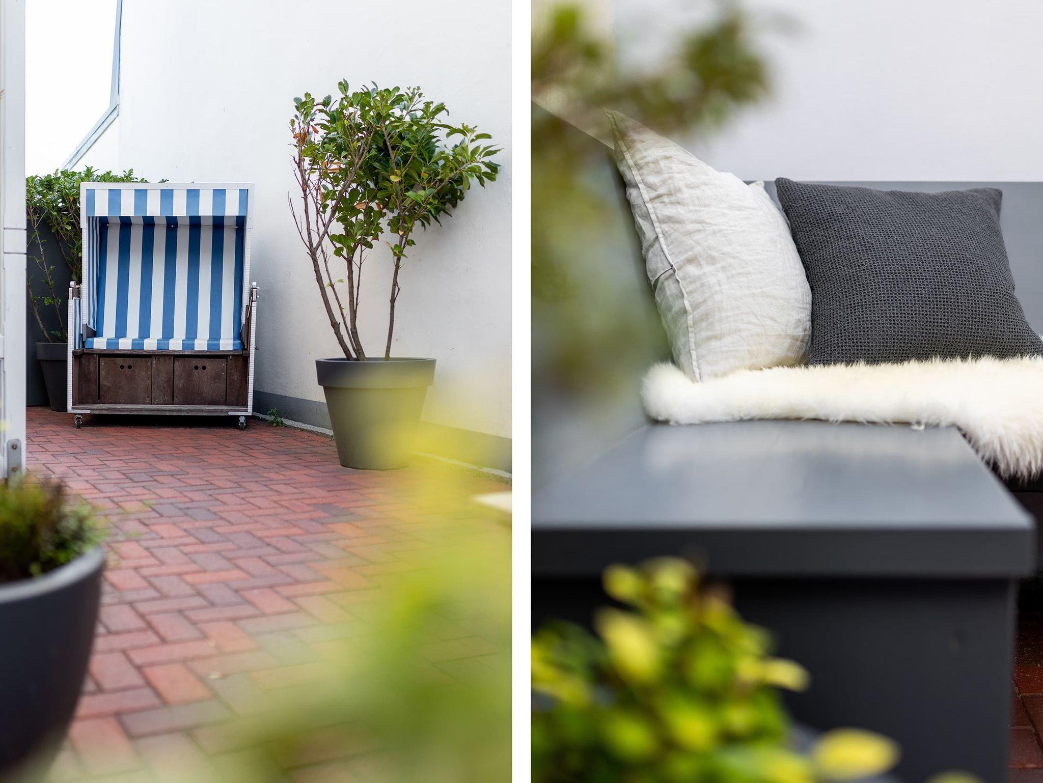 Im geräumigen und windgeschützten Innenhof kann man es sich gemeinsam am großen Esstisch gemütlich machen, auf der Bank etwas lesen oder im Strandkorb entspannen. Ein mit sehr viel Liebe eingerichtetes Traumhaus zum Wohlfühlen! Auch Ihre Hunde sind hier herzlich willkommen.
