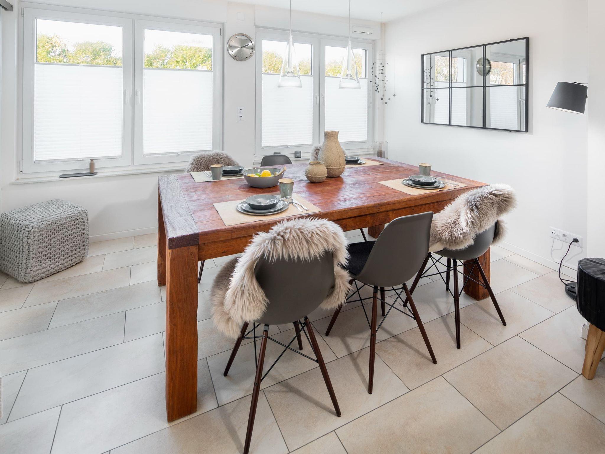 Das ?Seehaus 48? liegt nur wenige Minuten vom Nordstrand und dem Surfcafé entfernt. Es bietet auf 2 Ebenen Urlaubskomfort für eine Familie oder drei Pärchen. Im unteren Bereich findet sich neben dem geräumigen Wohnzimmer mit großem Essbereich die hochwertige Einbauküche. Diese ist u.a. mit Geschirrspüler und diversen Kleingeräten (3x Kaffeemaschine, Toaster, Wasserkocher, Eierkocher, Smoothiemixer, Waffeleisen,?) perfekt für kochaffine Gäste ausgestattet. Im Abstellraum lassen sich bequem die nötige Vorräte verstauen.