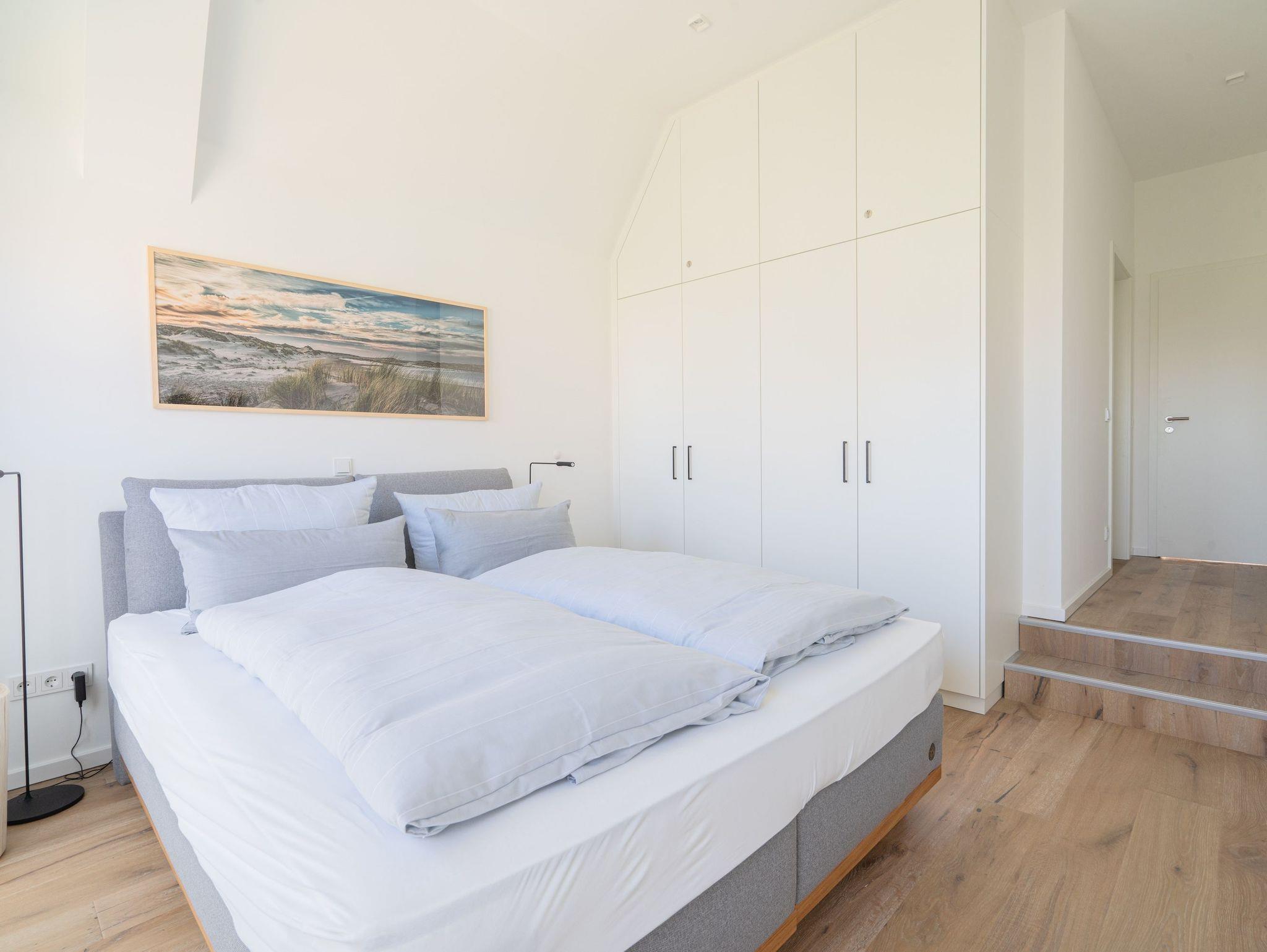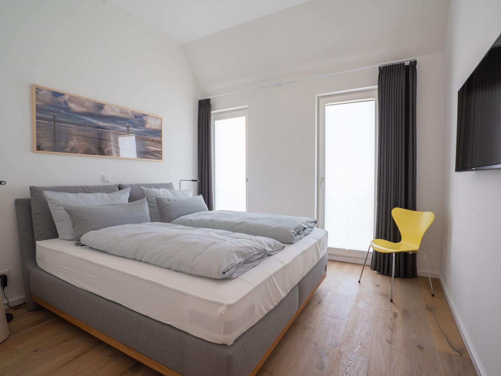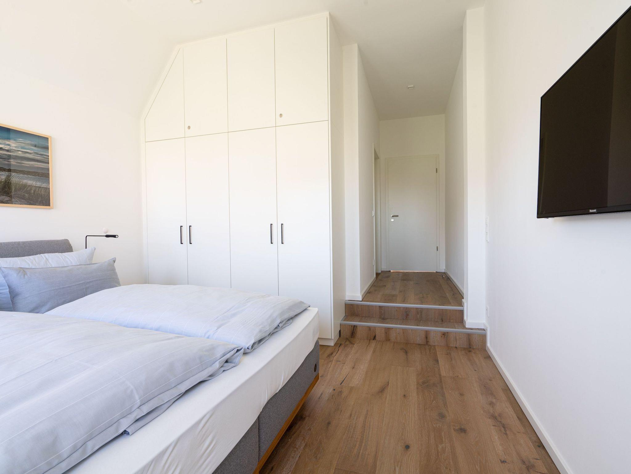 Die Wohnung verfügt über zwei Schlafräume.Beide bieten neben einem 1,80m breiten Boxspringbett ausreichend Stauraum und einen Fernseher und haben von dort Zugang zum jeweiligen Bad.