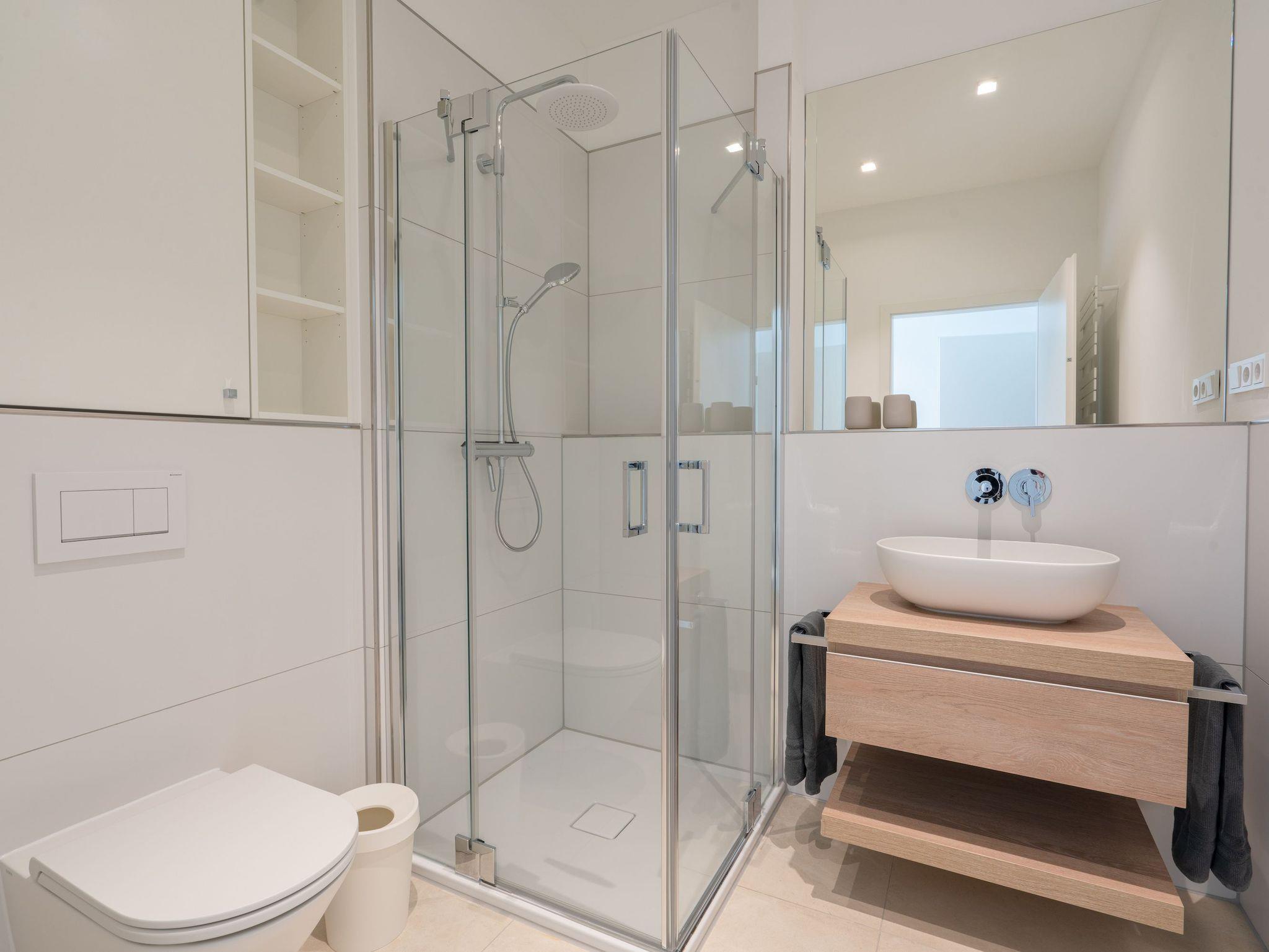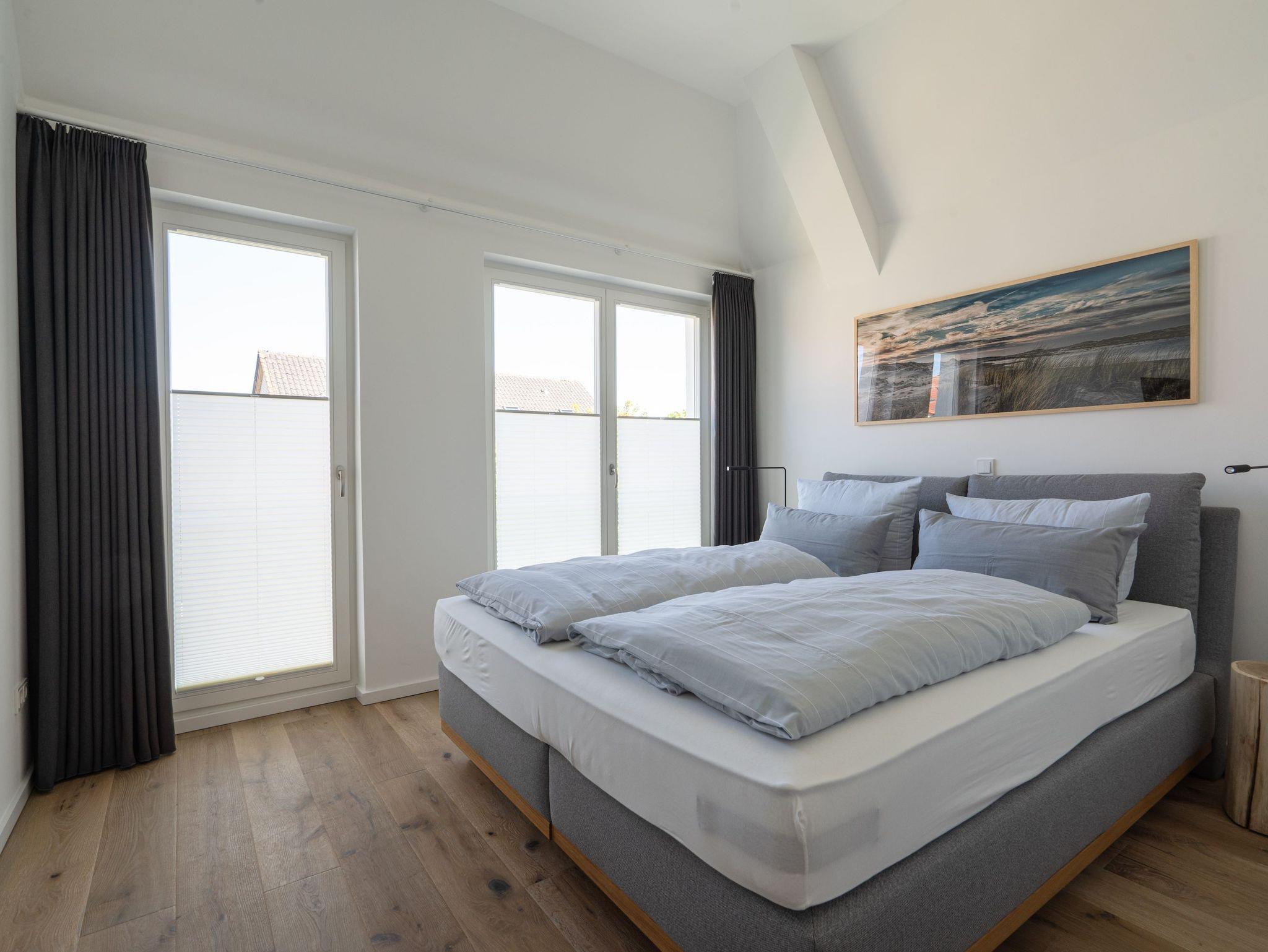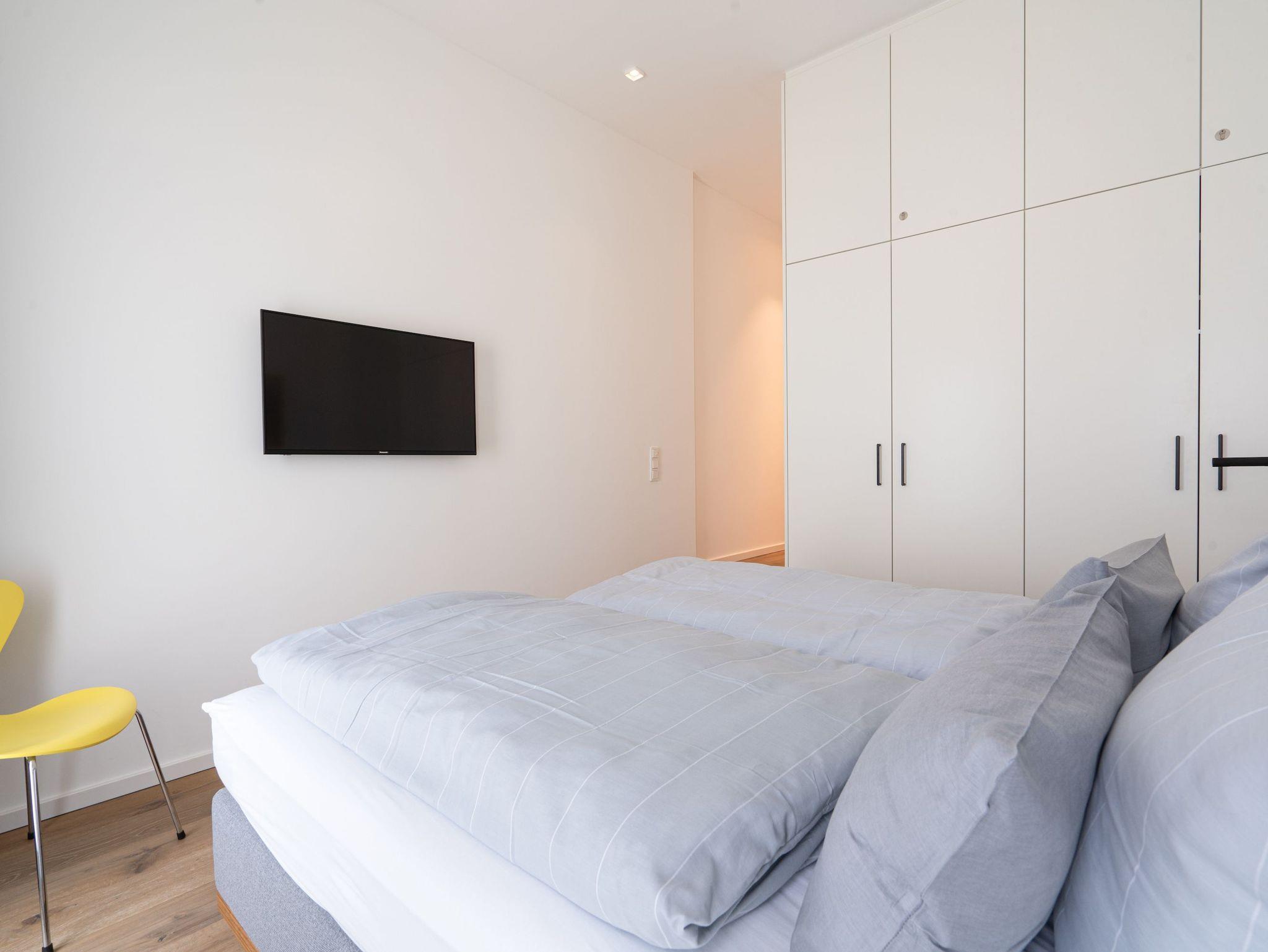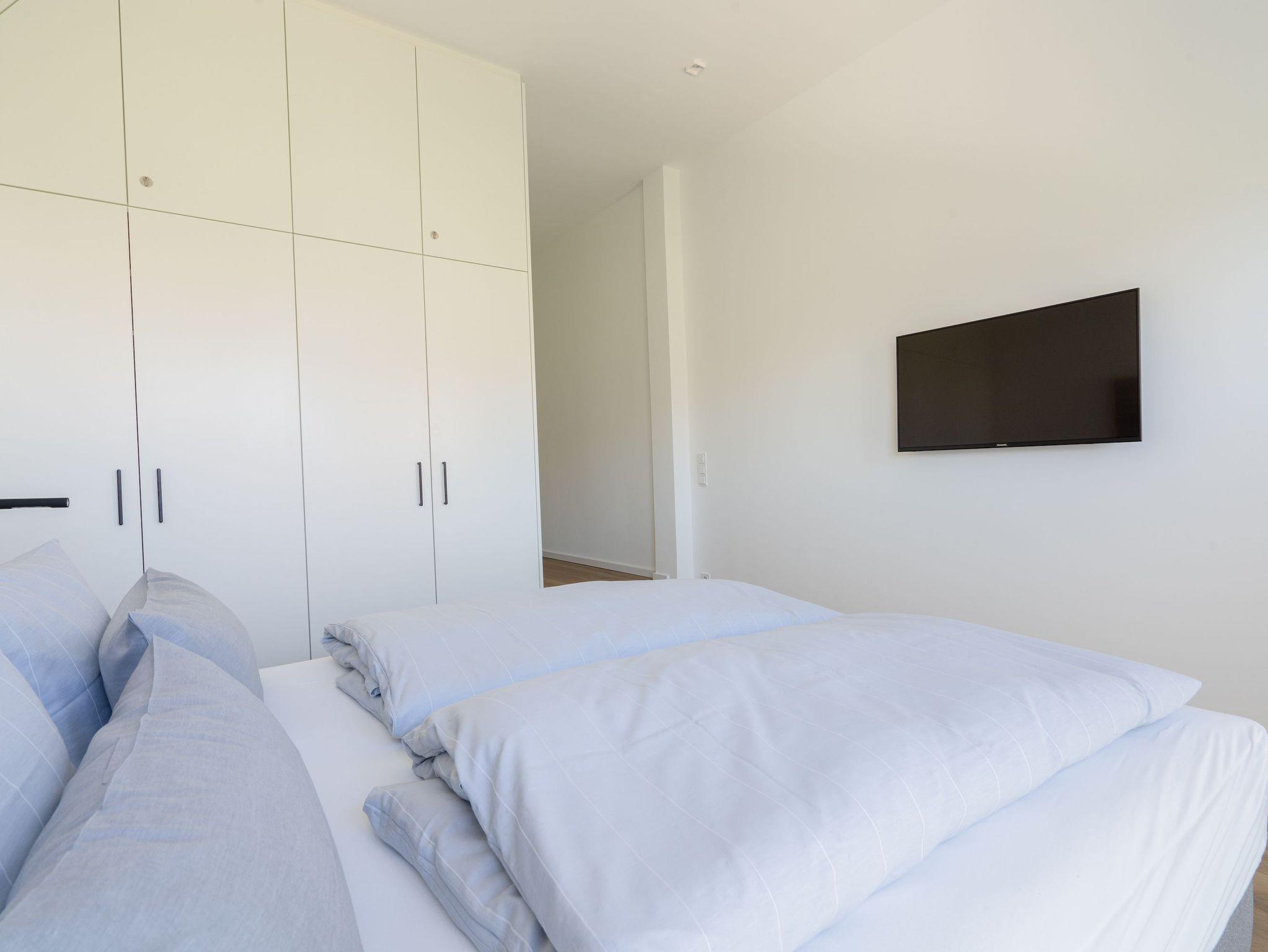Die Wohnung verfügt über zwei Schlafräume.Beide bieten neben einem 1,80m breiten Boxspringbett ausreichend Stauraum und einen Fernseher und haben von dort Zugang zum jeweiligen Bad.