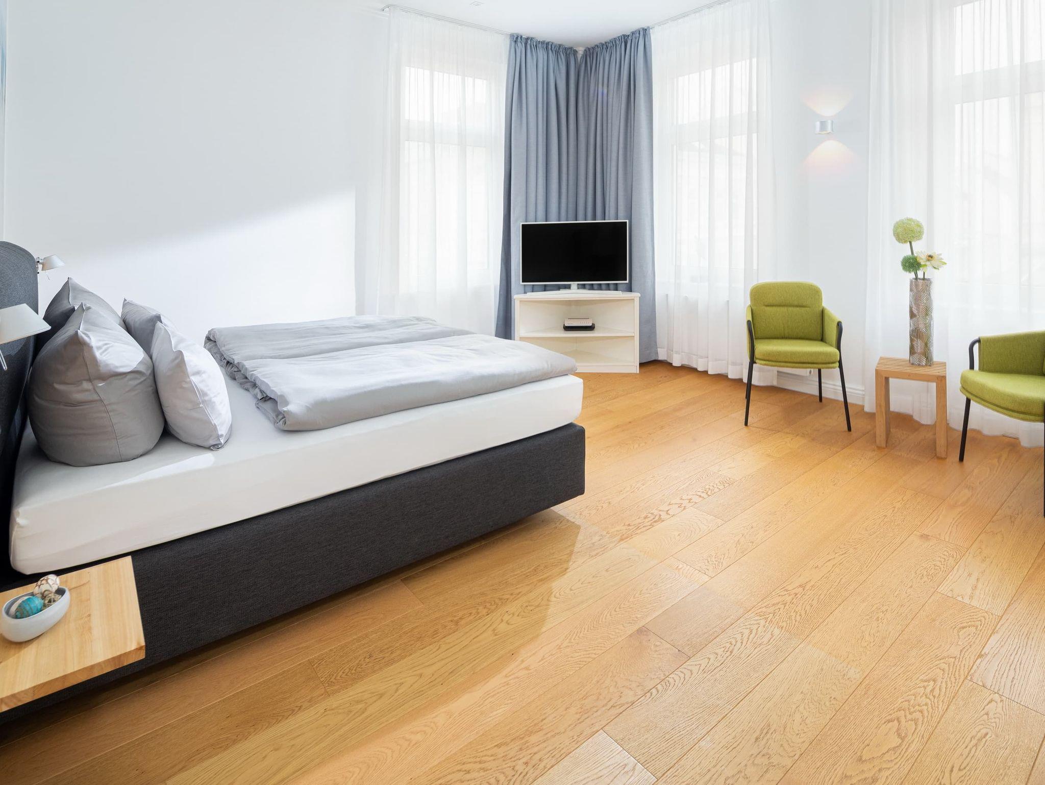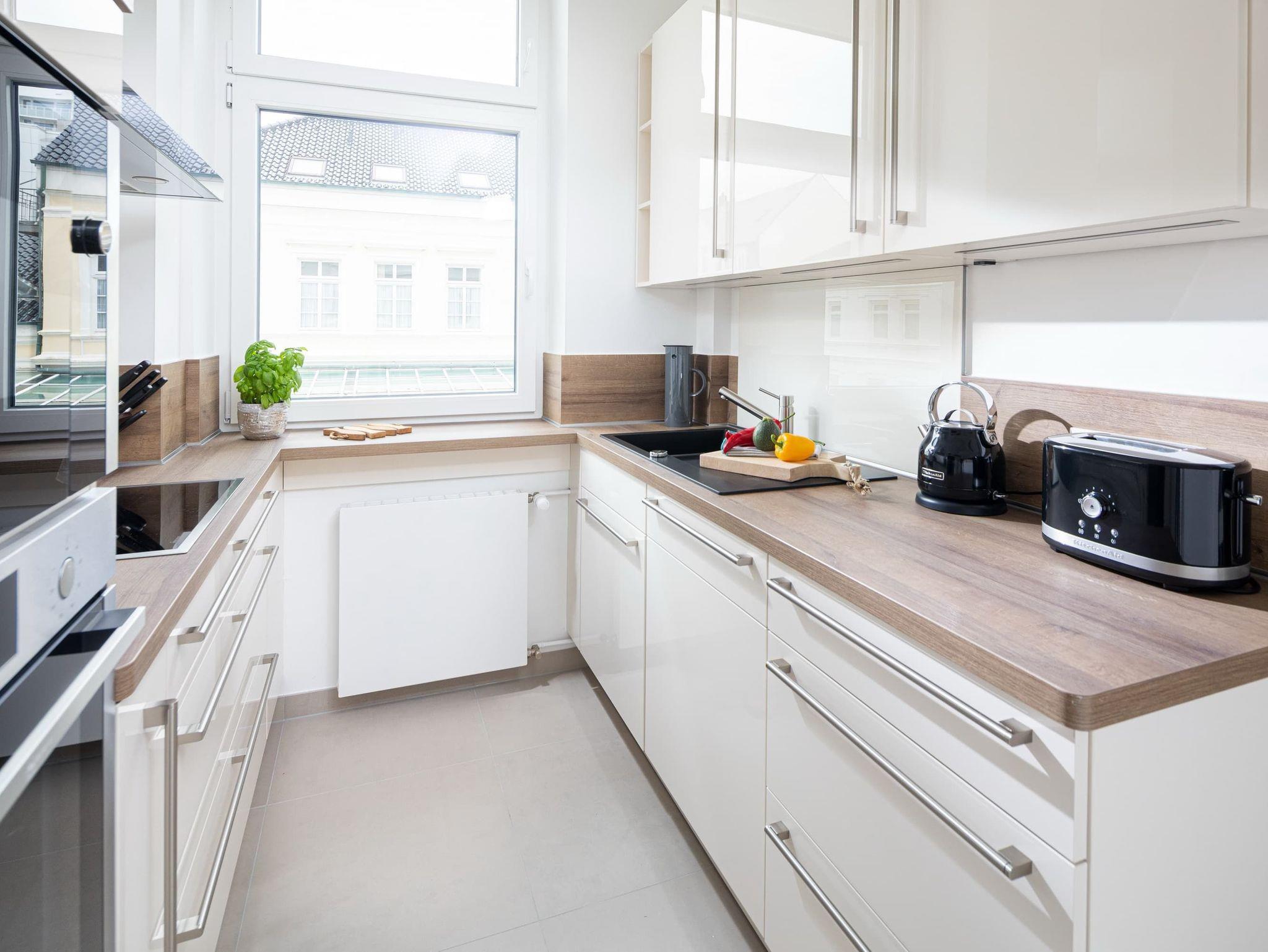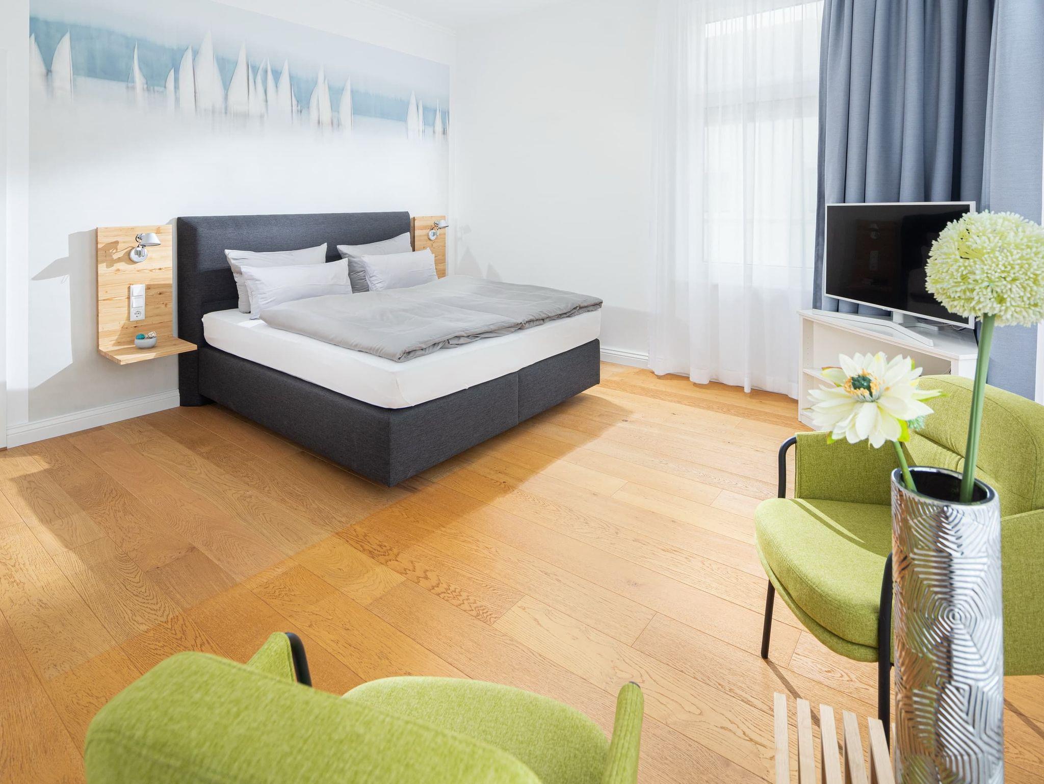 Es besticht durch seine hochwertige und gradlinige Ausstattung. Durch den Eingangsbereich gelangen Sie in das großzügige Wohnzimmer mit Eckcouch, Esstisch für bis zu 6 Personen und angrenzender Küche (separater Raum). Beide Schlafzimmer sind mit hochwertigen Boxspringbetten ausgestattet, haben reichlich Stauraum und sind durch die großen Altbaufenster wunderbar hell. Eines der beiden Badezimmer liegt en Suite eines Schlafzimmers, das andere ist vom Flur aus zu begehen. Die Einrichtung ist modern, funktional, durchdacht und luxuriös. Auf der Kaiserwiese steht Ihnen ein privater Strandkorb zur Verfügung (Zeitraum: April bis Oktober).